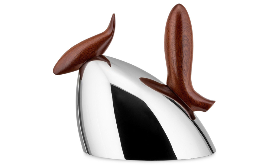 The Pito kettle is offered with a mirror polished steel body, mahogany handle and cap with melodic whistle.