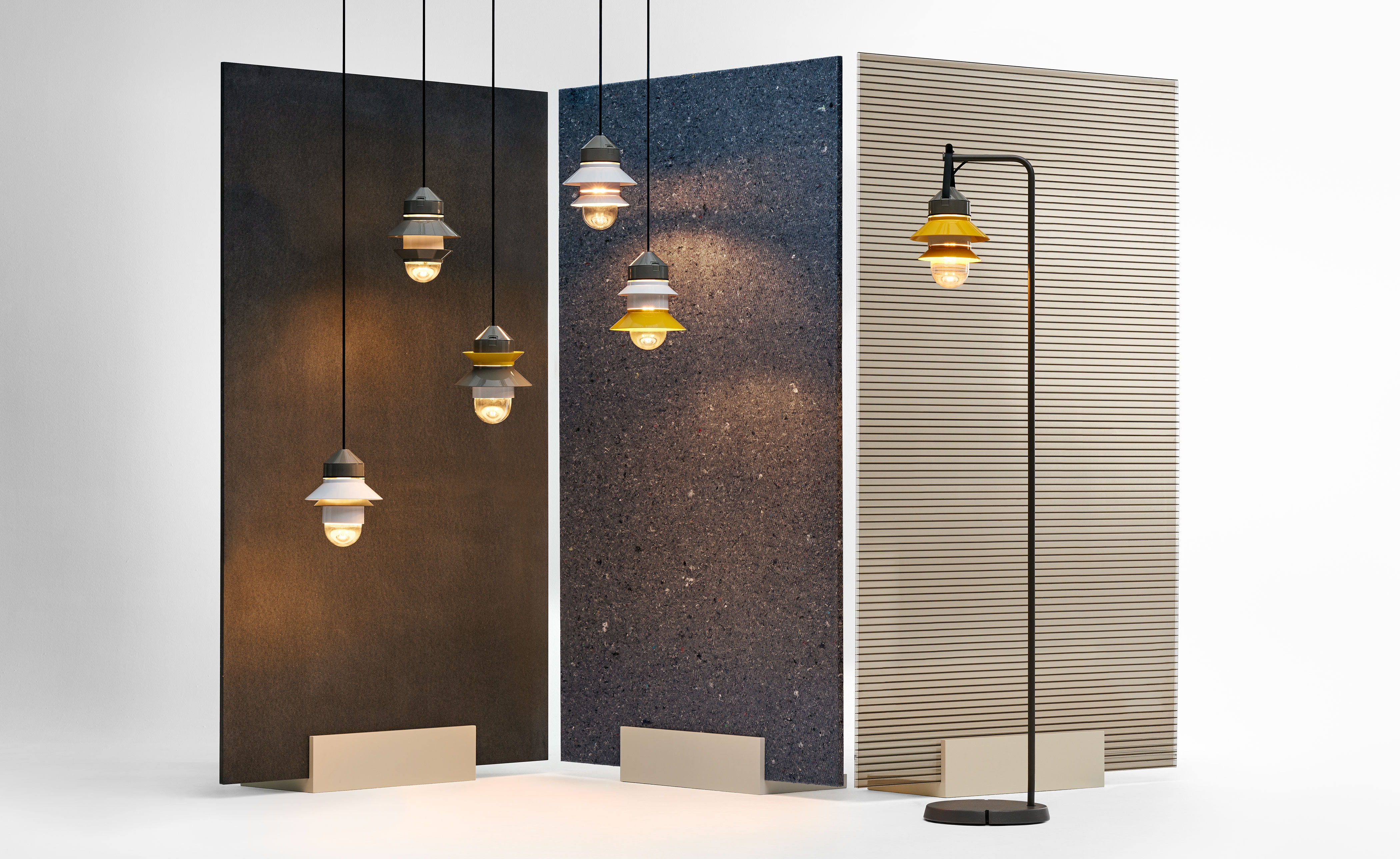 Inspired by the lanterns found on fishing boats, this collection of indoor/outdoor customizable lamps allows you to create multiple compositions. Users can choose how many shades to place on the diffuser, along with their order, position and direction. This interplay of combinations yields a rich array of direct or reflected light.