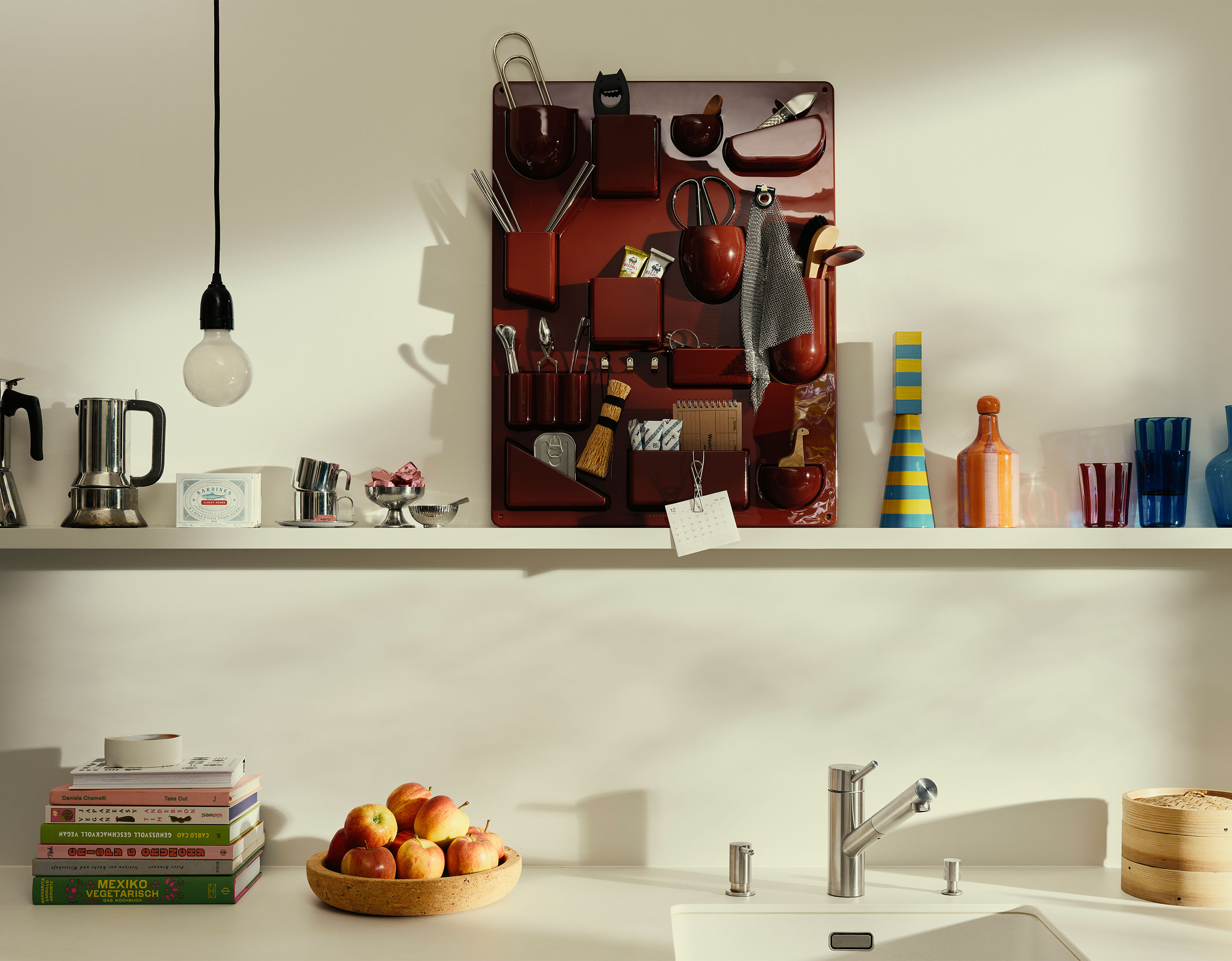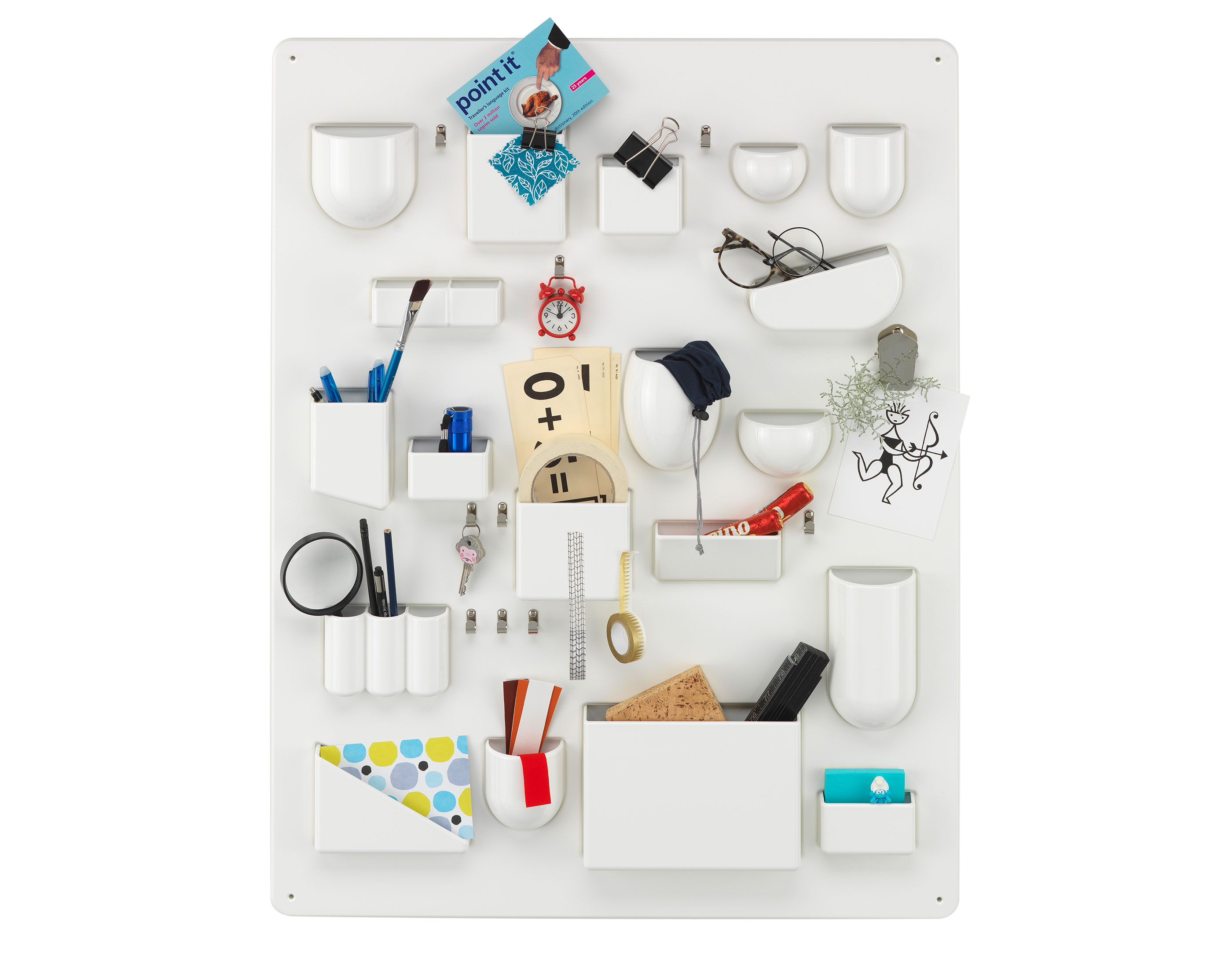 With containers of different shapes and sizes, metal hooks and clips, Uten.Silo brings order to offices, kitchens, workshops, bathrooms and children's rooms. Uten.Silo is available in the original size from 1969 - Uten.Silo I - as well as the smaller 1970 edition - Uten.Silo II.