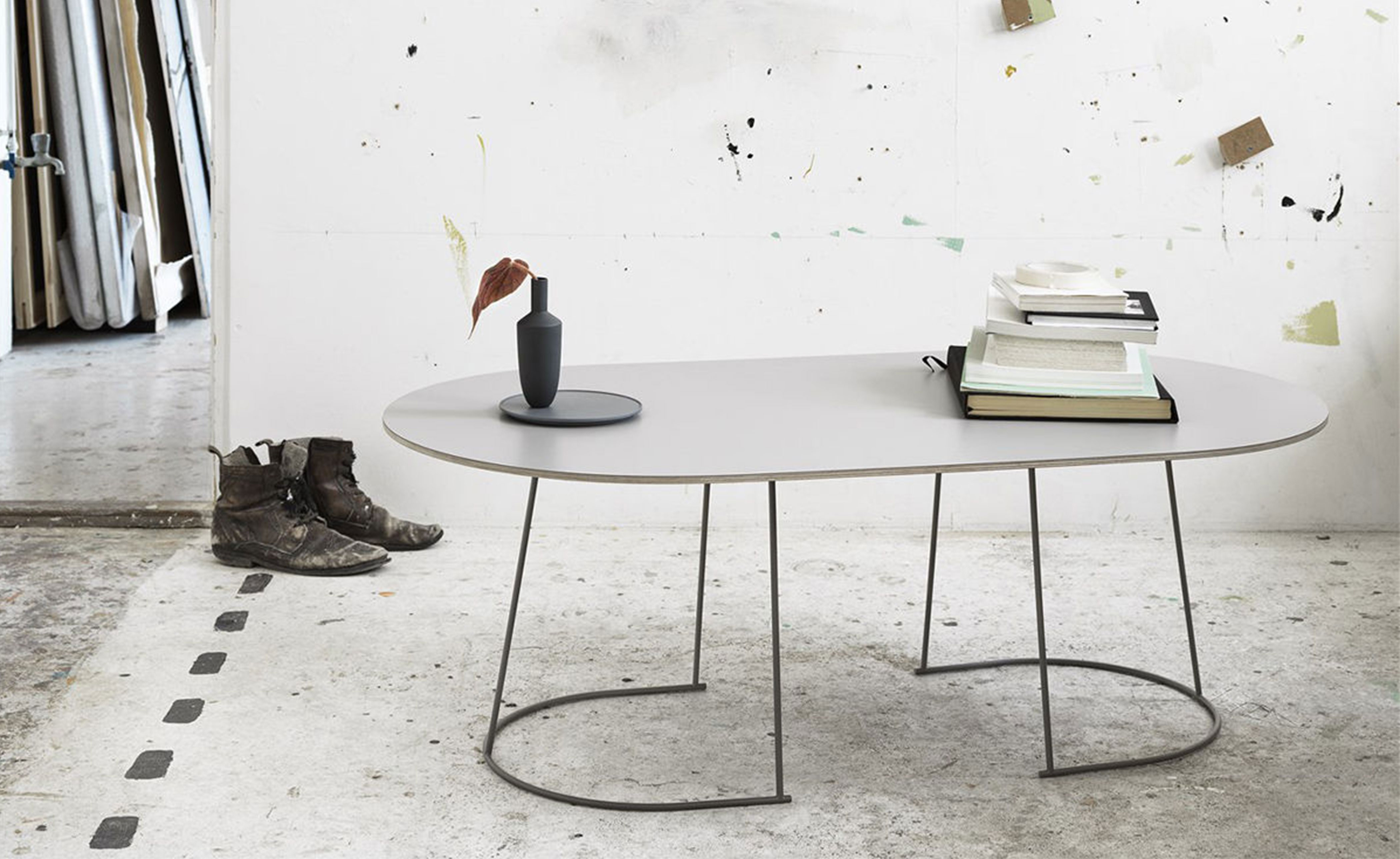 The thin welded frame of the Airy Table series creates a geometric and sophisticated silhouette that is further refined by a light, slim tabletop. There are four table sizes in the series, all suitable for a range of functions, from side table to coffee table. The Airy Table series has a playful yet quiet personality, making it an easy addition to any space.