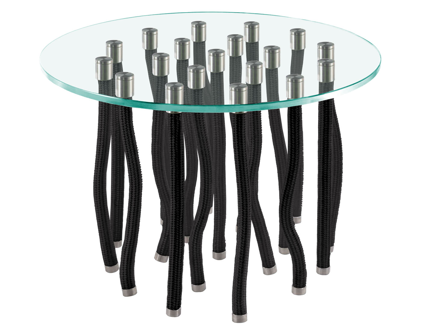 Hardened transparent glass, stainless steel, polypropylene rope