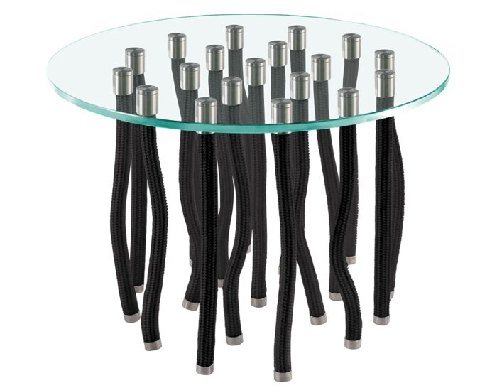 At first glance, the Org table by Fabio Novembre seems an unlikely paradox: the top appears to rest atop elements that hang from above, like tendrils. The internal solidity is hidden from view, thanks to the careful placement of flexible polypropylene rope legs amidst rigid legs equipped with a steel core and rope exterior.