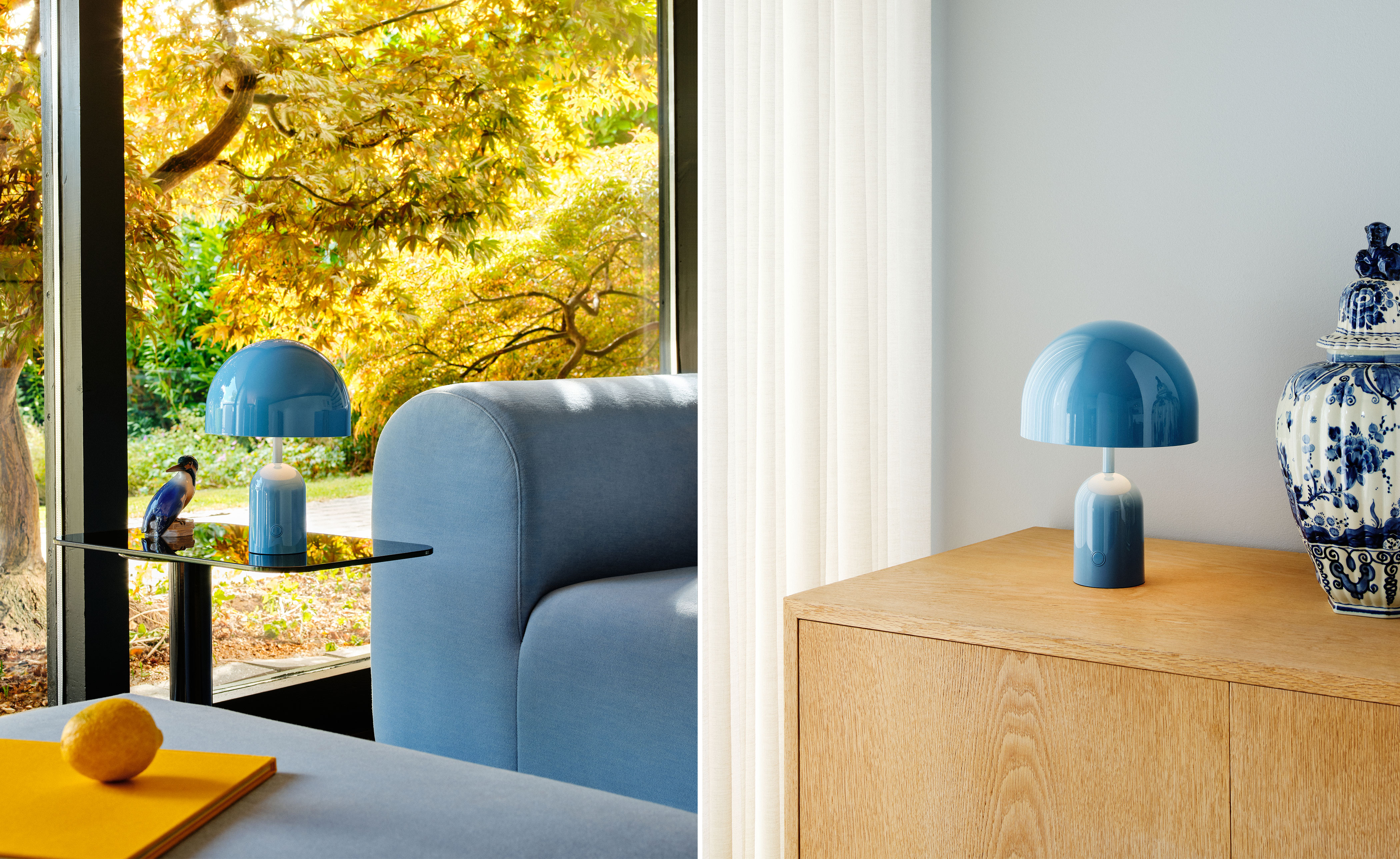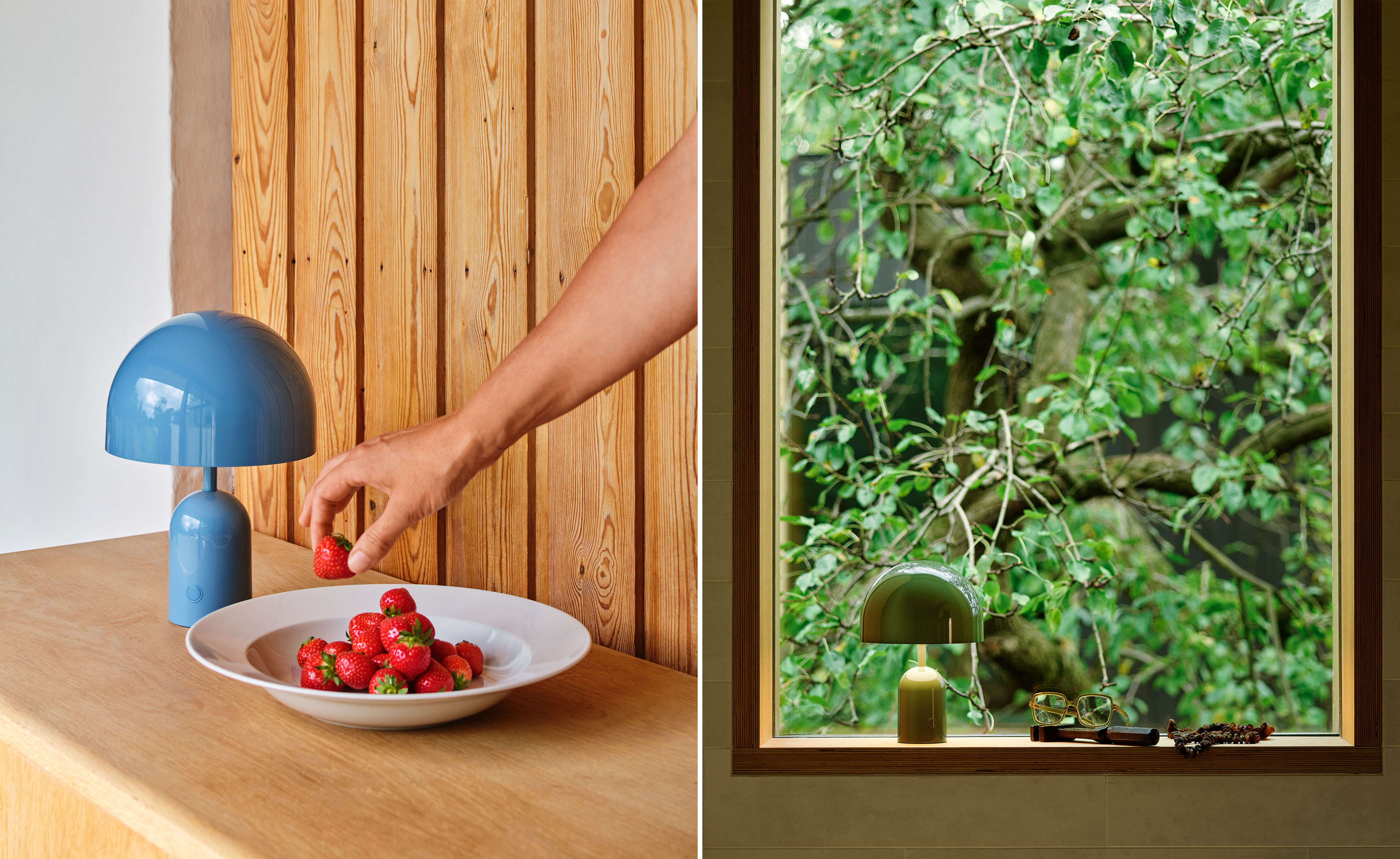 Taking its name from a classic dome shape, Bell is an exercise in reductionism. The hyper-polished surface allows Bell to take on the tone and characteristics of its surroundings while a concealed diffuser produces its soft lighting. Bell Portable LED offers up to 9 hours of battery life.