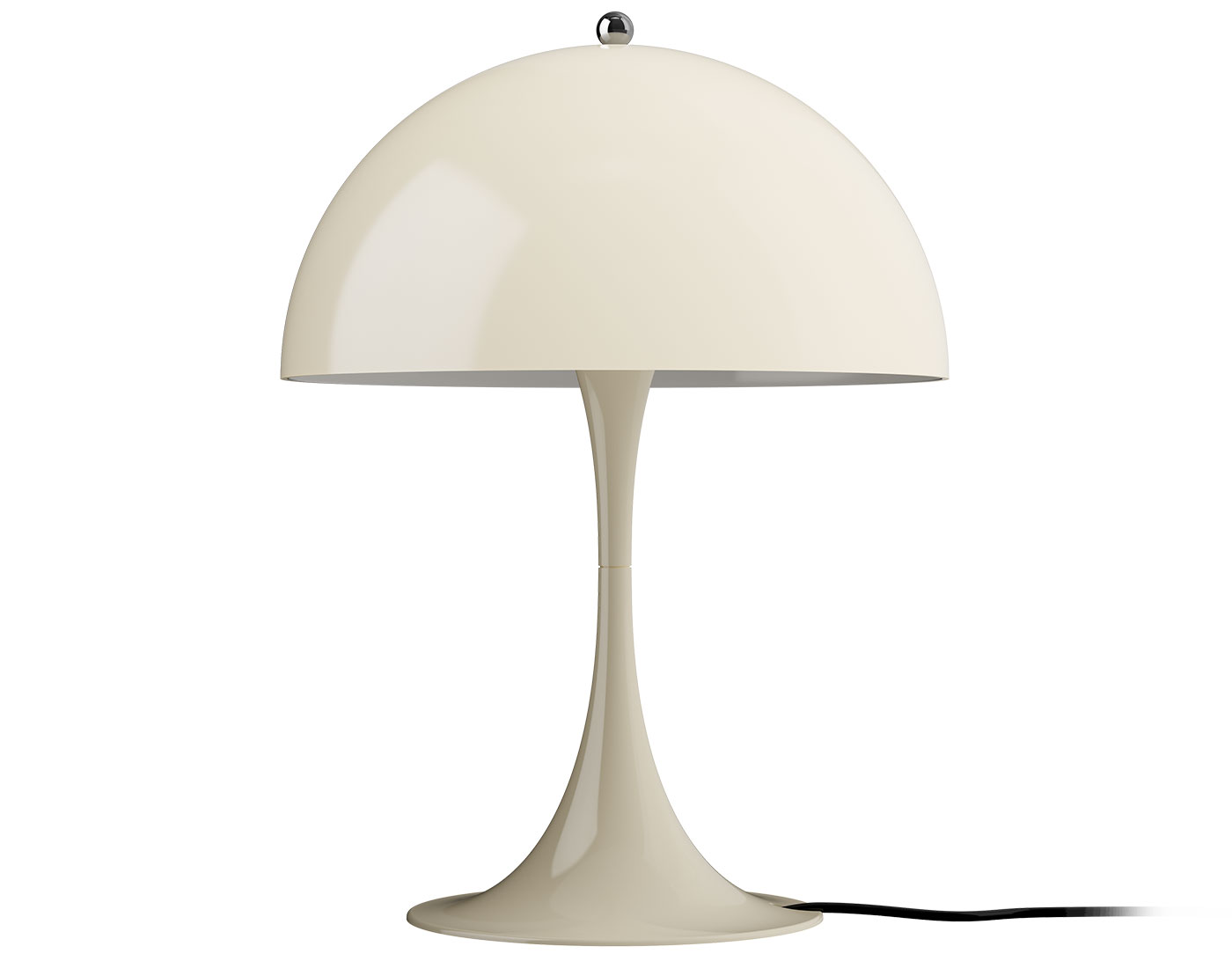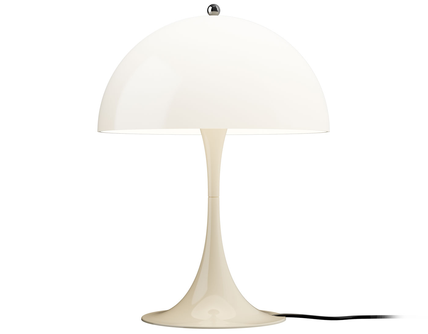 The Panthella 320 Table Lamp emits a soft and comfortable light. The hemispherical acrylic (opal shade) provides a diffused light distribution. The material used ensures the majority of light is spread diffusely in the room from the surface of the shade. On/off in-line switch on cord.