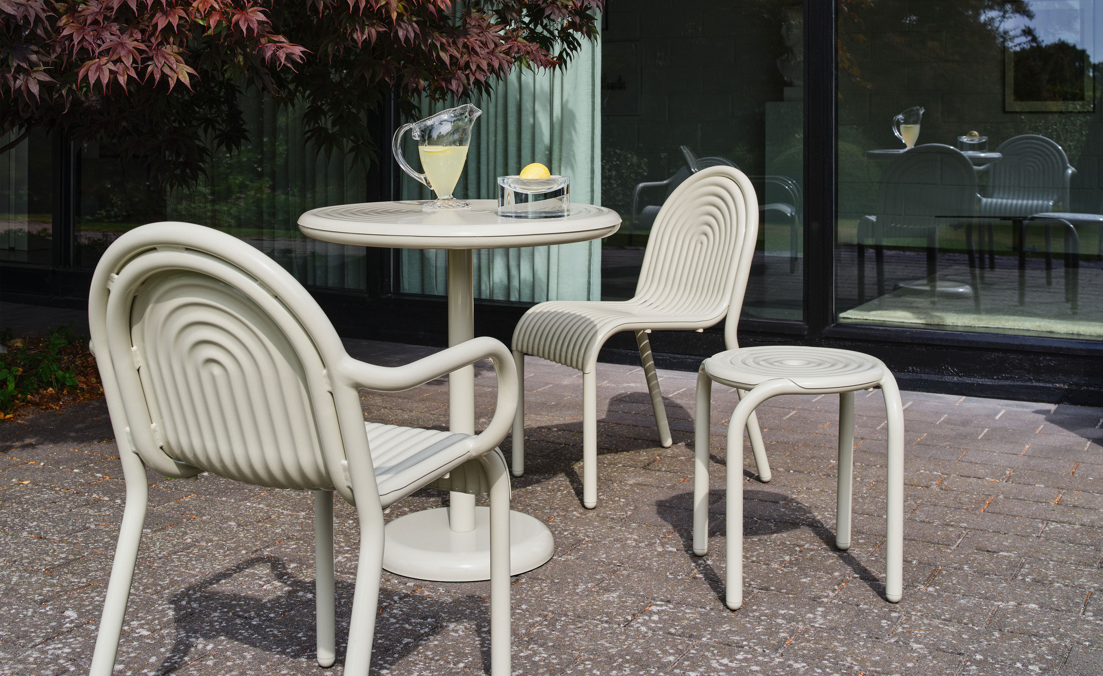 Discover the Groove Dining Side Chair, part of Tom Dixon's first outdoor collection. Featuring distinctive art deco-style raised ridges, this chair is crafted from premium aluminum using advanced manufacturing techniques for exceptional durability. Its high-quality, powder-coated finish is solvent- and VOC-free, making it ideal for outdoor use. Developed from over a decade of research and inspired by the 2021 HYDRO aluminum chair.