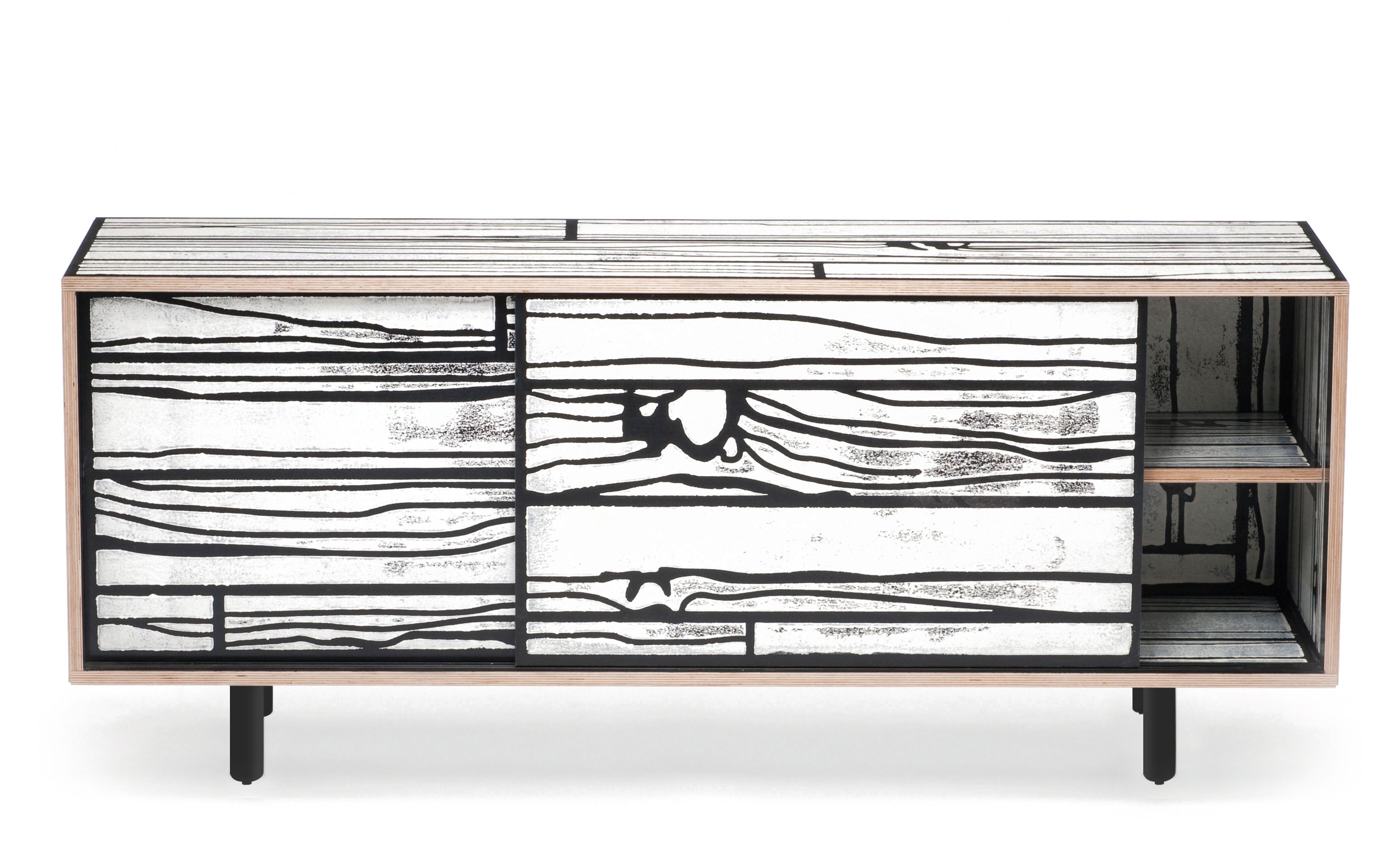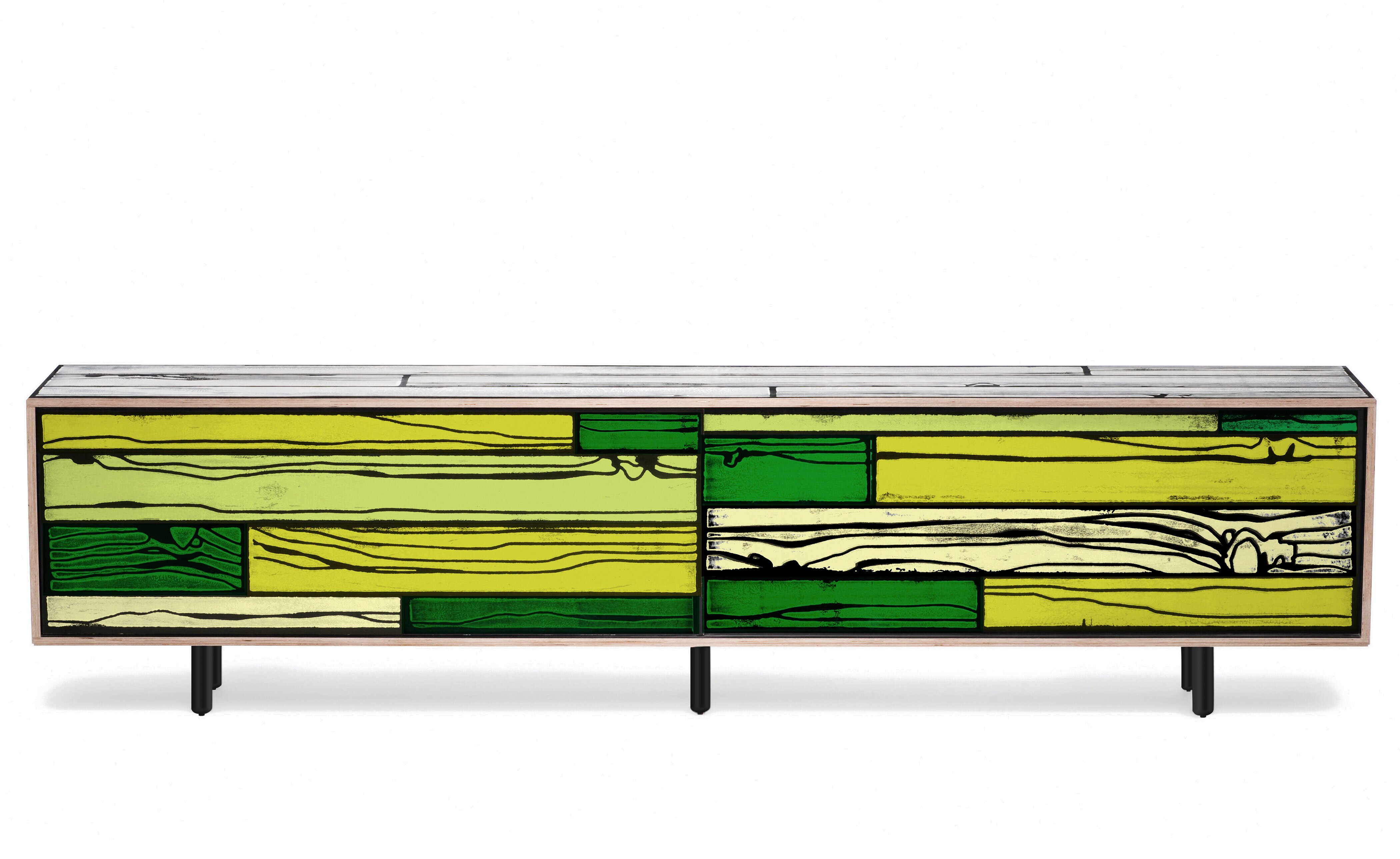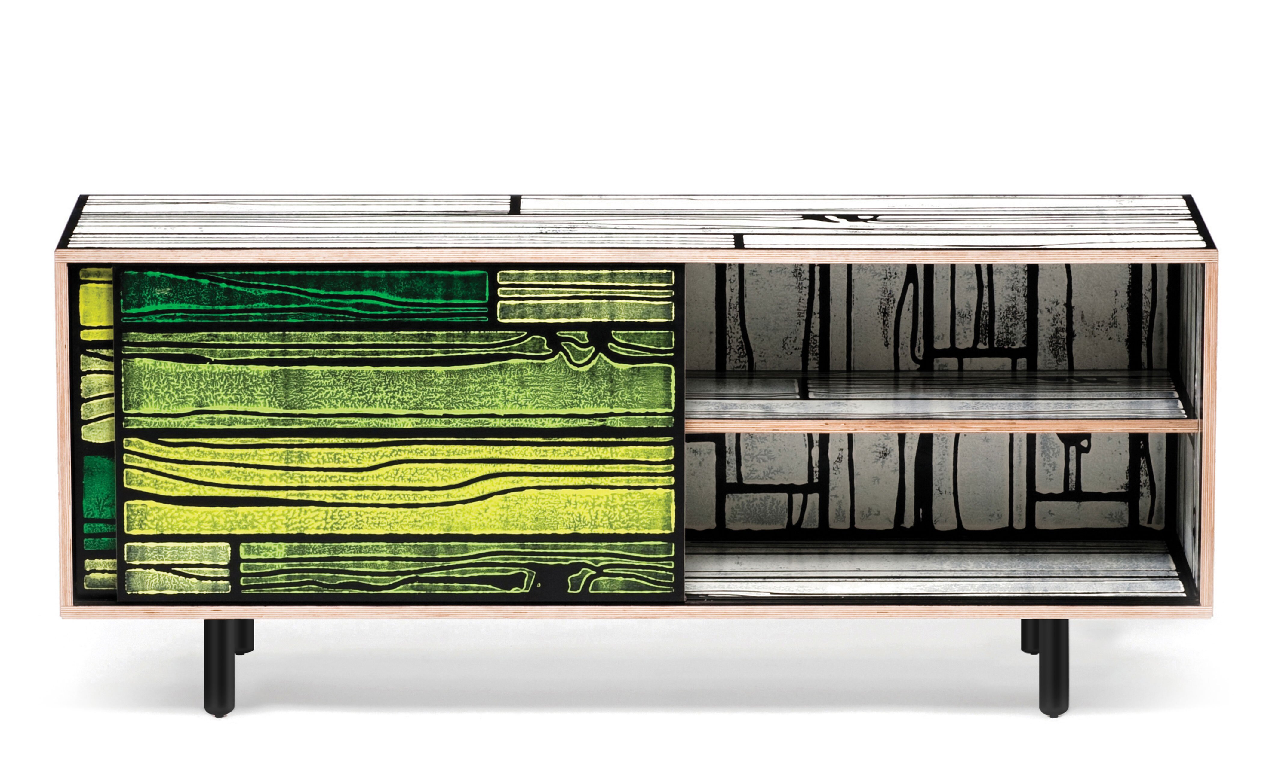 Richard Woods' colorful, wood-grain block prints have become an icon of contemporary design thanks to this enduring collaboration with Sebastian Wrong. Add a touch of character to any space with a WrongWoods Console, features sliding doors and an interior shelf. Available in two widths.