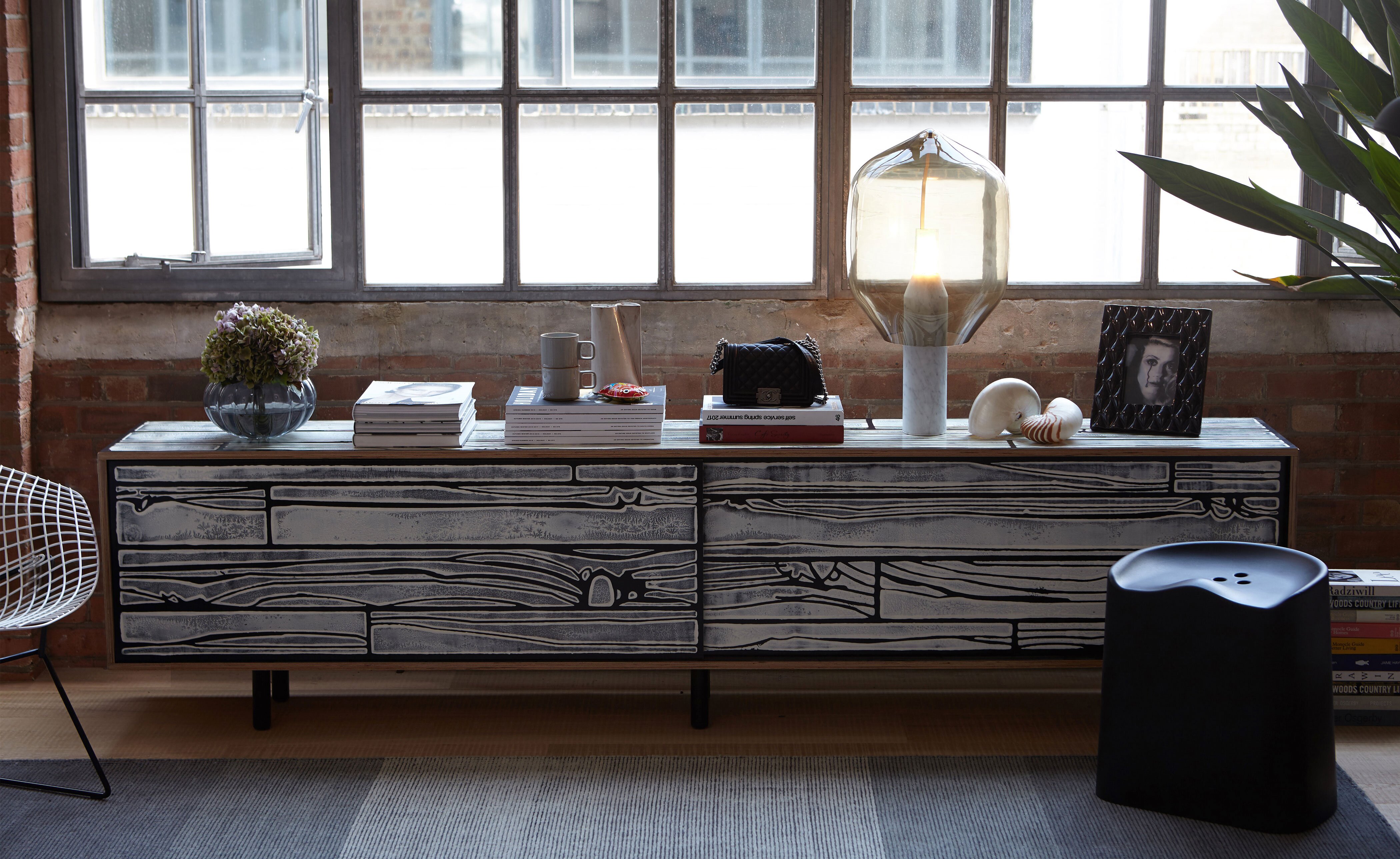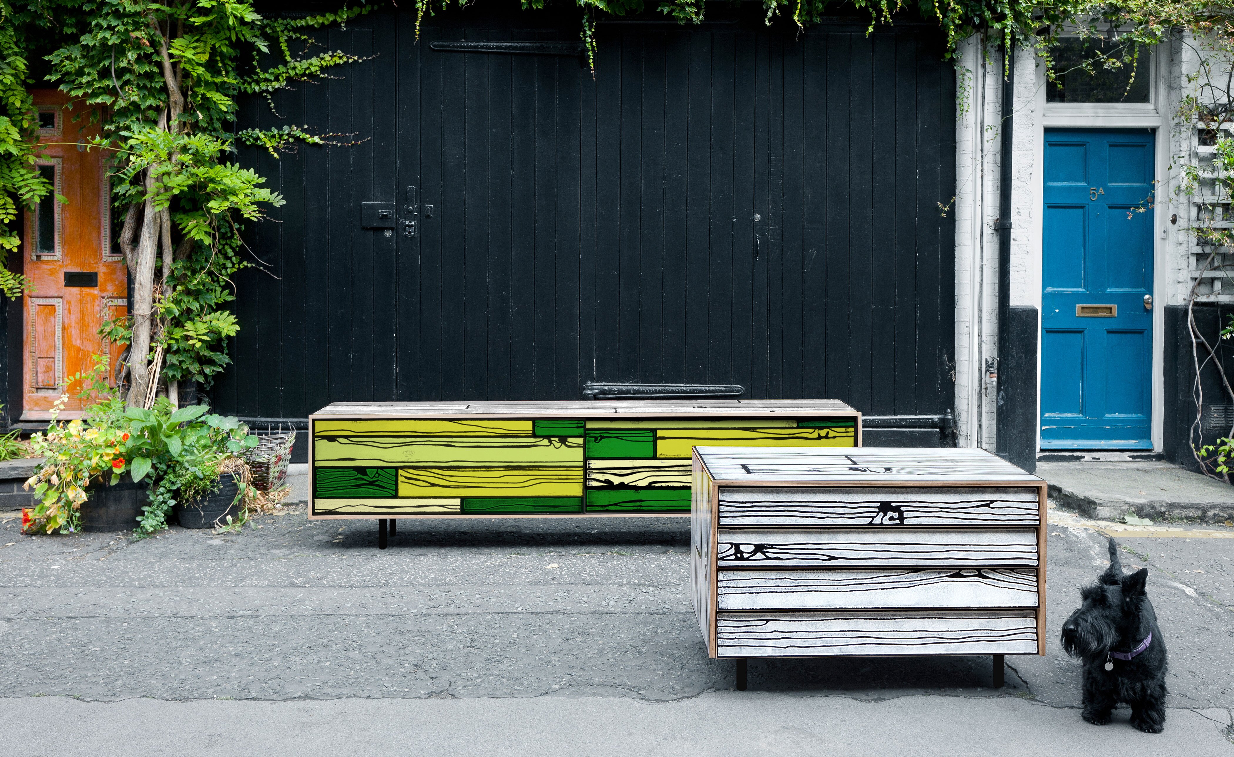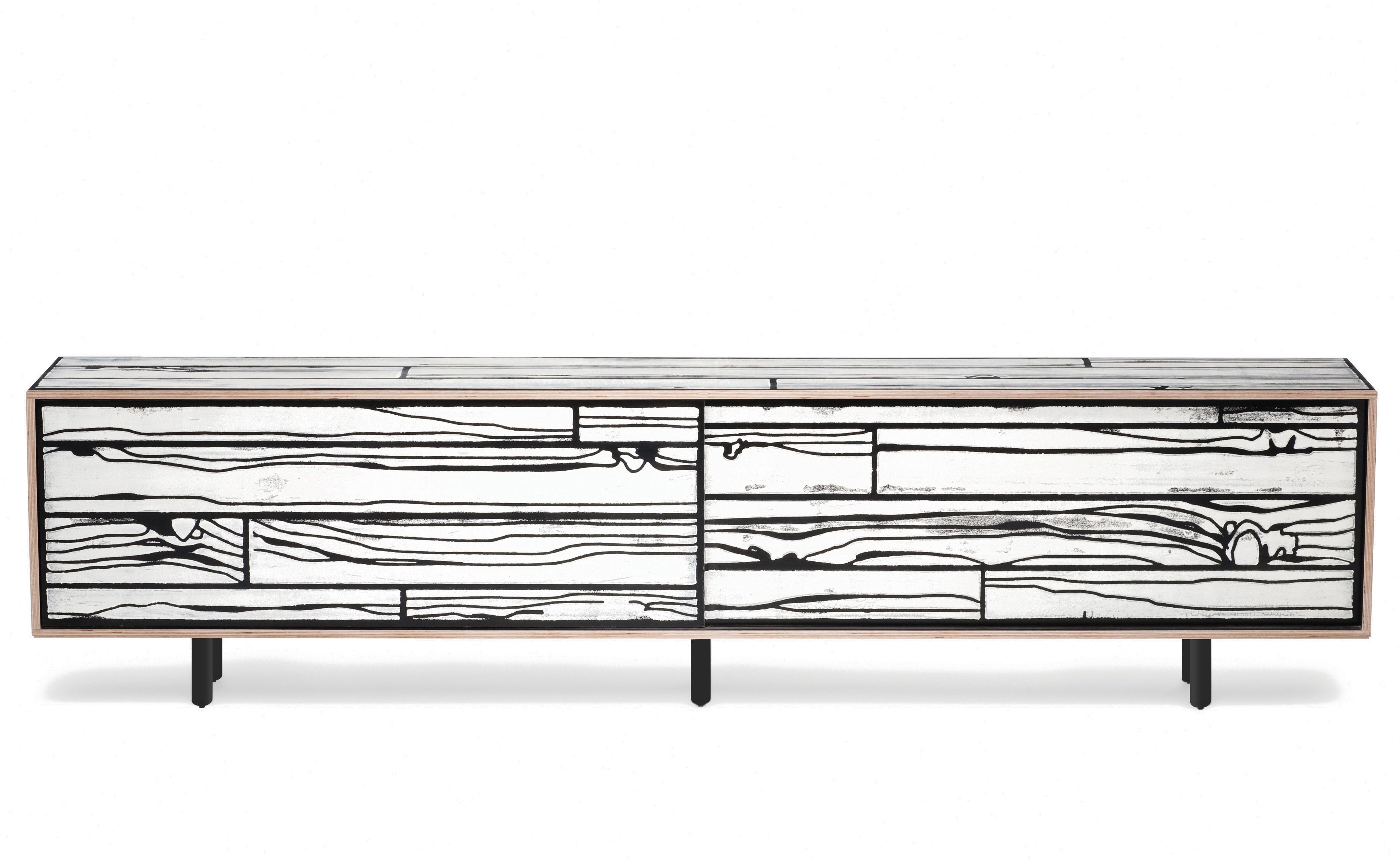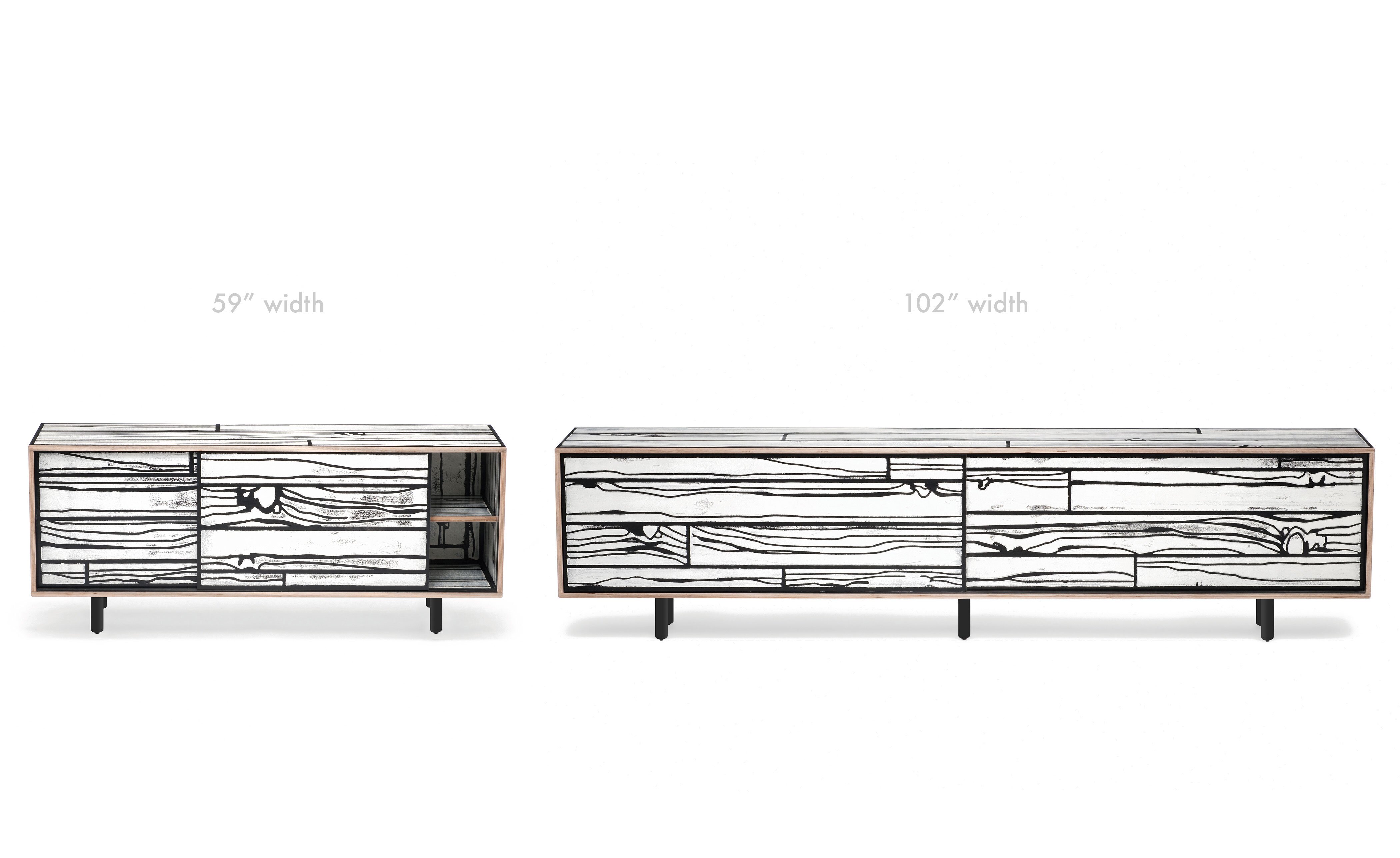 Richard Woods' colorful, wood-grain block prints have become an icon of contemporary design thanks to this enduring collaboration with Sebastian Wrong. Add a touch of character to any space with a WrongWoods Console, features sliding doors and an interior shelf. Available in two widths.