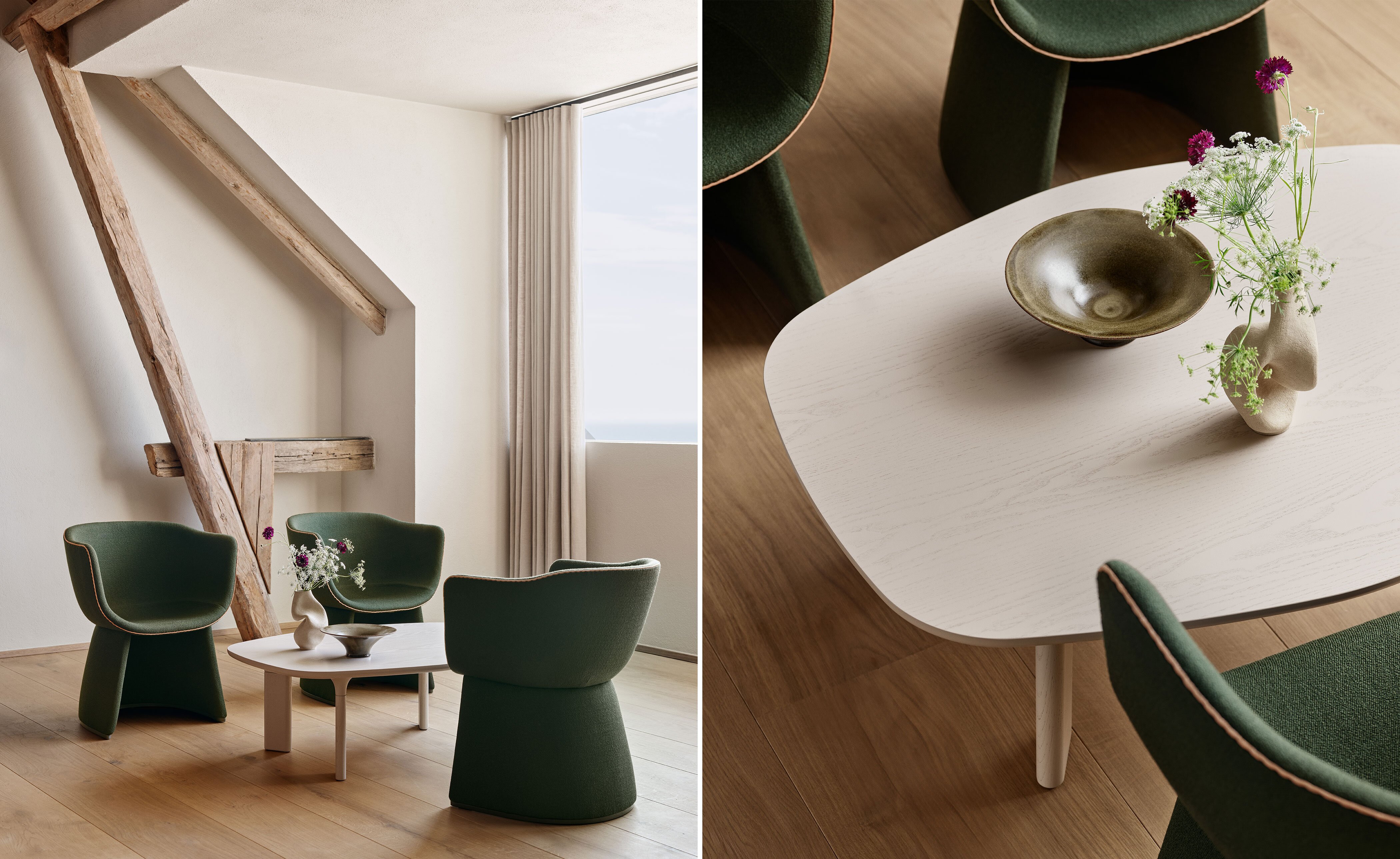 Analog is celebrating the authentic way of connecting with people around a table by bringing us closer. The table promotes a return to the genuine togetherness that is a stark contrast to the digital life we face with demands of constant online presence. Analog is not a square, not a circle, not an oval - it is a new form that takes the best from the three classic shapes and brings them together in a new, organic form. There is no hierarchy, just a beautiful platform for conversations which is a perfect match for modern relationships among family members, friends and colleagues.