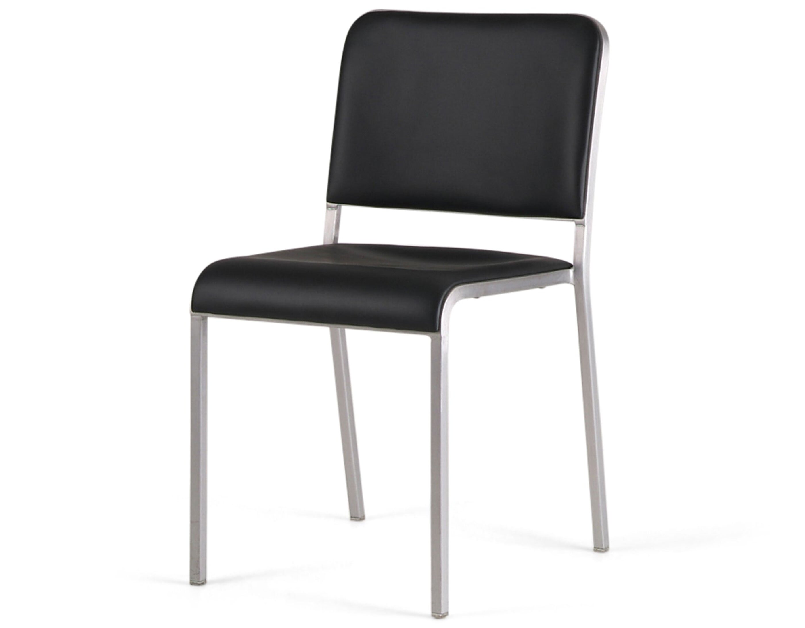 These requirements gave way to the new 20-06 chair. A sleek new chair featuring an ultra-slim, all-aluminum frame, tempered for strength and hand made at the historic Hanover Pennsylvania factory using Emeco's proprietary "77 step process". The ergonomically shaped aluminum seat and back are hand welded, resulting in a minimal, seamless appearance. 20-06 is super strong, yet uses 15% less aluminum than the original Navy chair. Of that metal, 80% is recycled aluminum, qualifying it as an environmentally sound product. The lightweight chair will stack 12 high. Suitable for outdoor use.