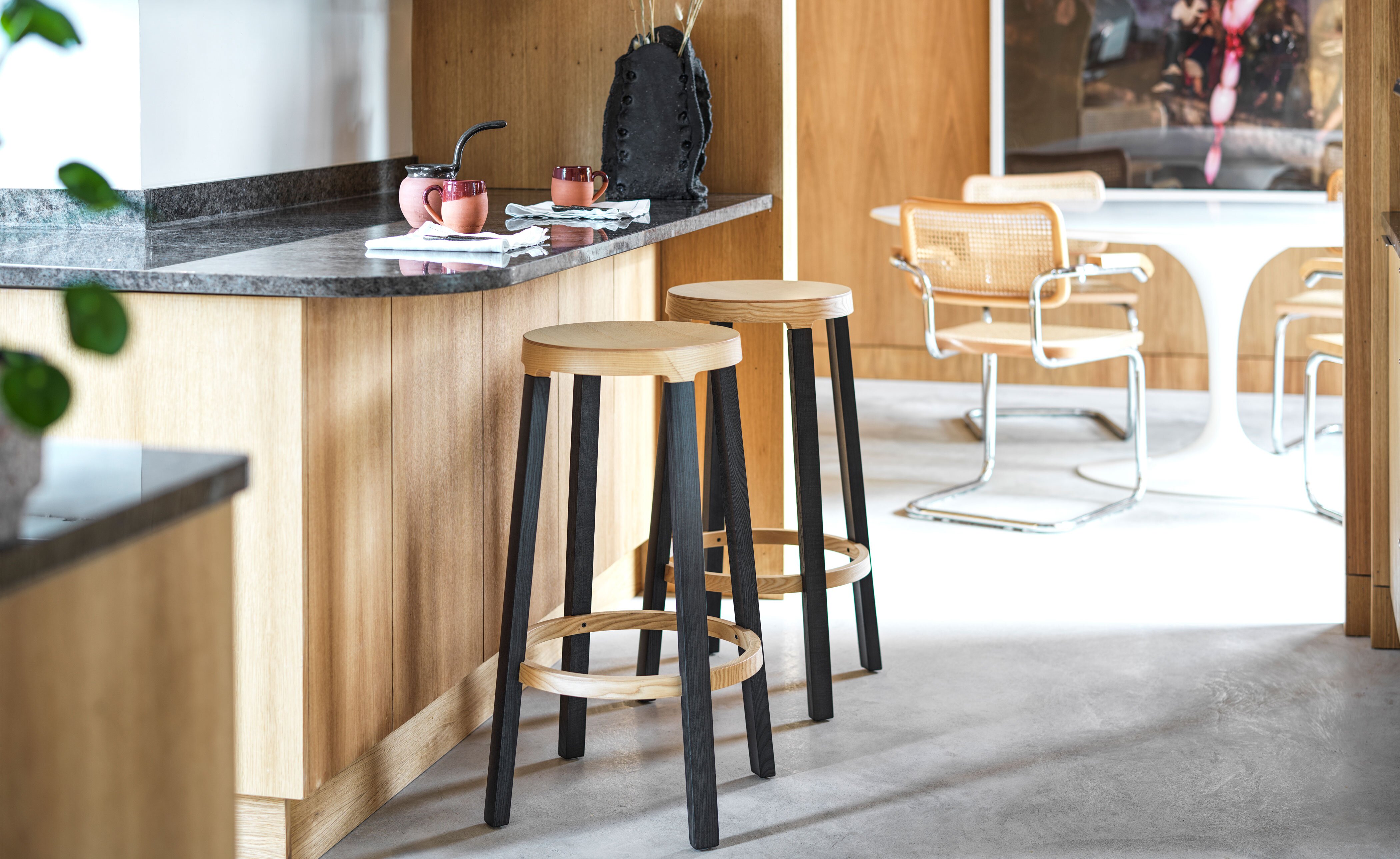 Adding color to a traditionally staid form, the Step stool is made from solid ash using a high-tech manufacturing process to create a modern design for kitchens, bars and studios.
