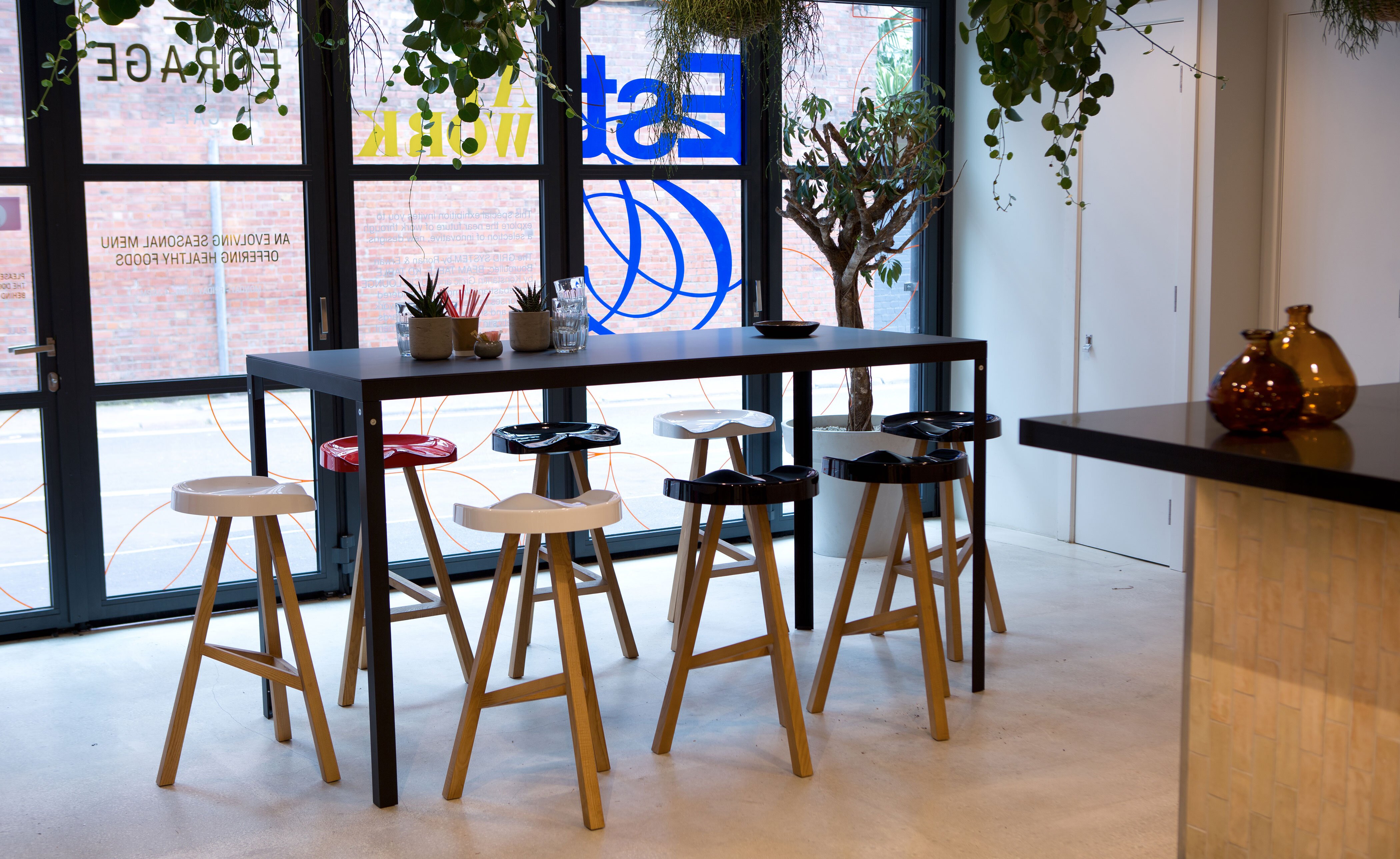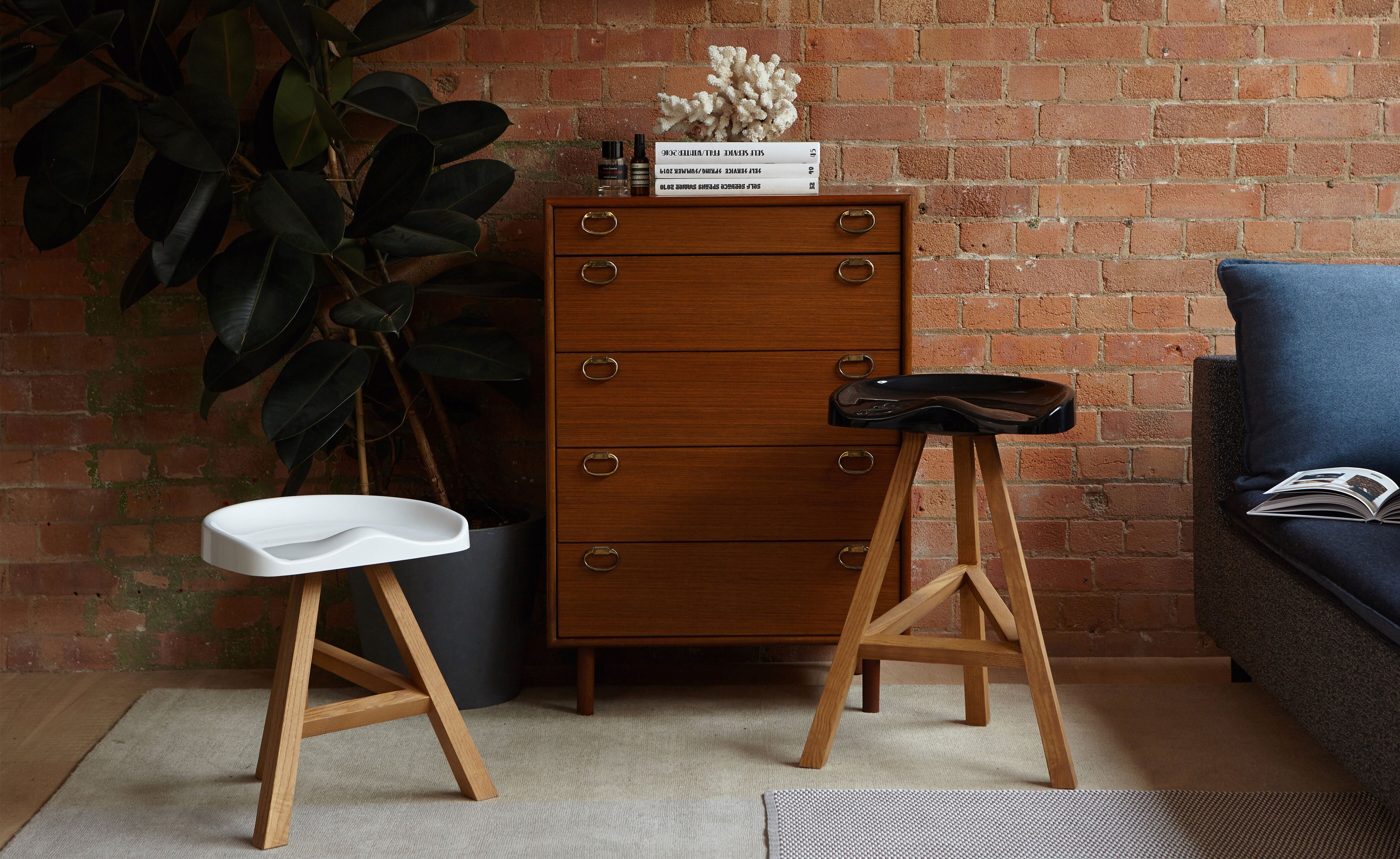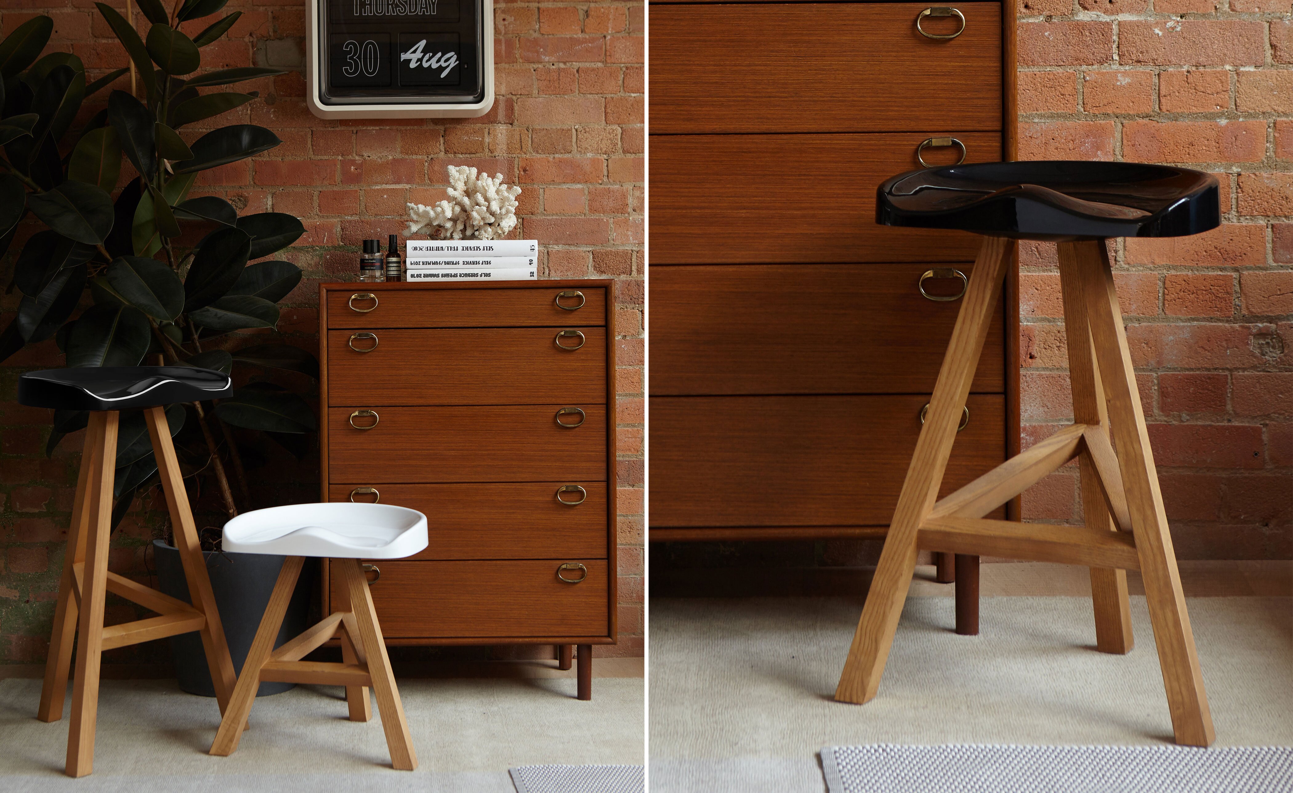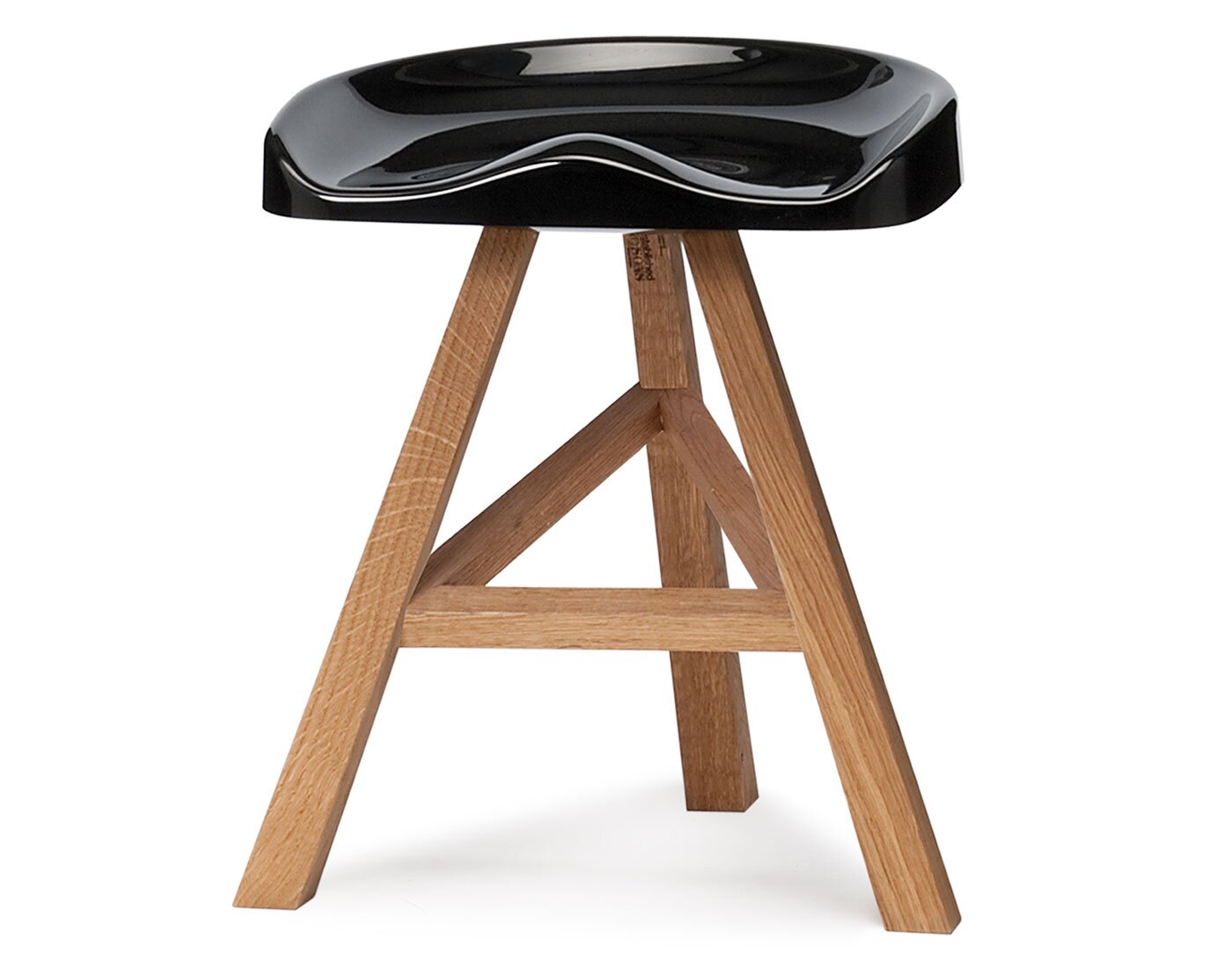 A mix of modernity and nostalgia, the Heidi is a fun stool that takes its inspiration from the classic tractor seat and the rustic, three-legged, timber milking stool.
