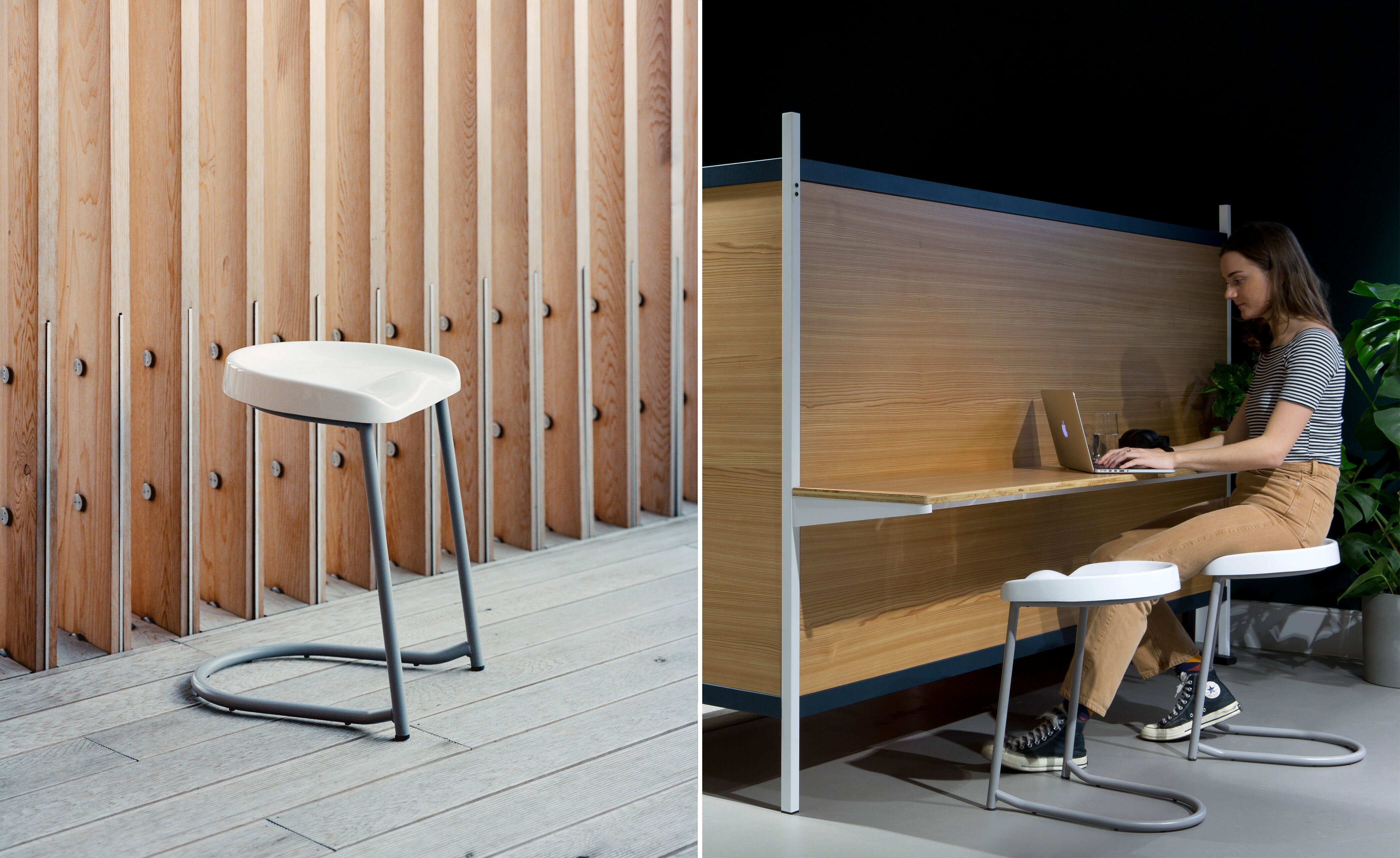 When developing the stool, Wrong focused on comfort and functionality creating a cantilever base that flexes slightly with movement so that it feels very natural to sit on - a responsive movement not common in most stools which tend to be stiff.