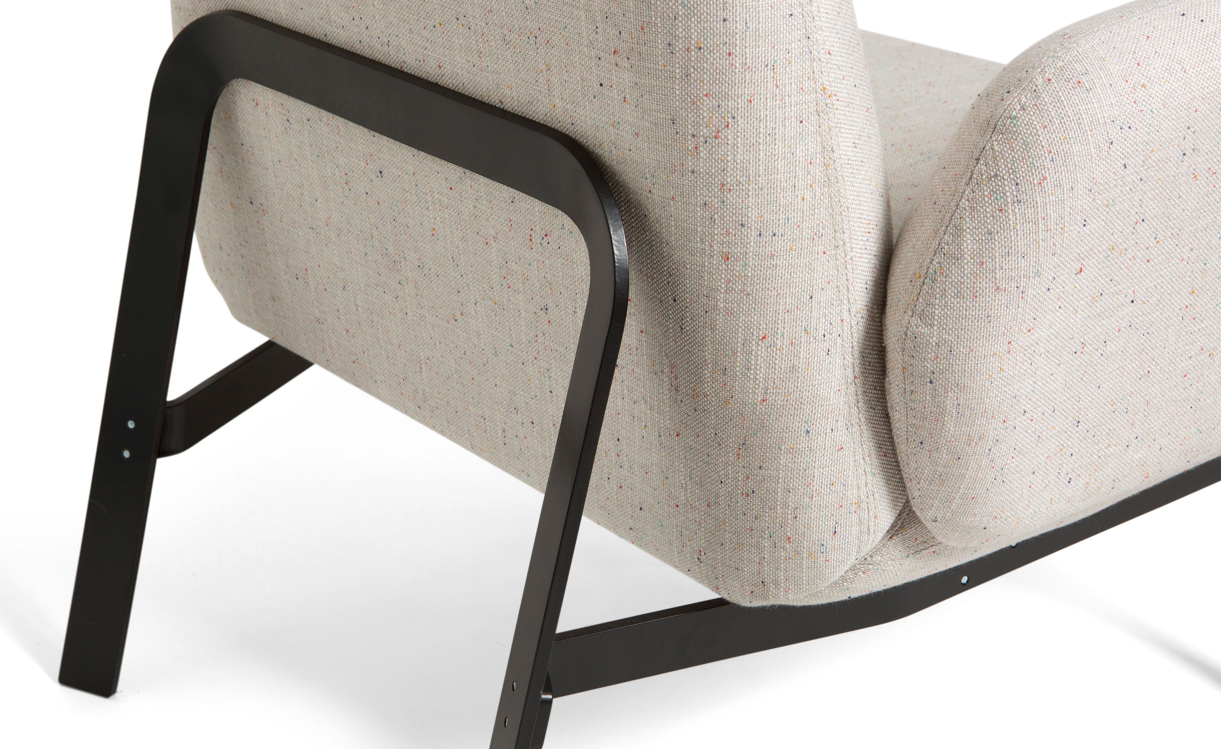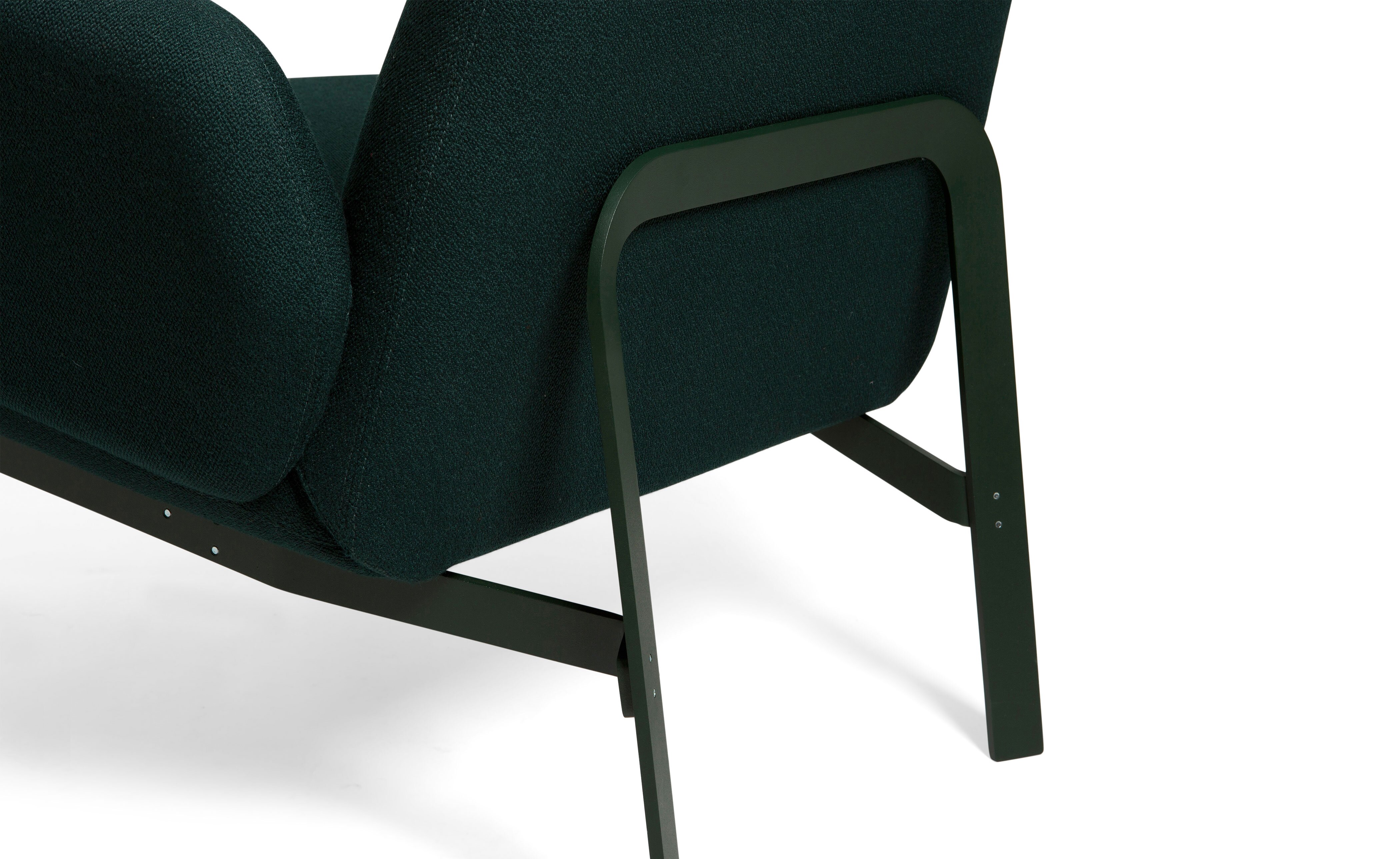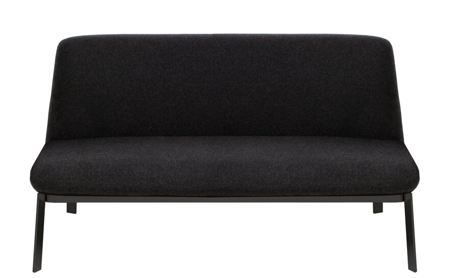 This compact loveseat is available with or without arms and sits on a contrasting metal frame, combining comfort with a clean, architectural profile. Ideal for reception areas, boutiques, or guest bedrooms, it's designed to divide large spaces into more intimate zones. Upholstered in durable fabrics, the Easy range is always smart, always presentable. Easy comes standard with a black powder-coated base, customizable in RAL colors for larger projects for a fee.