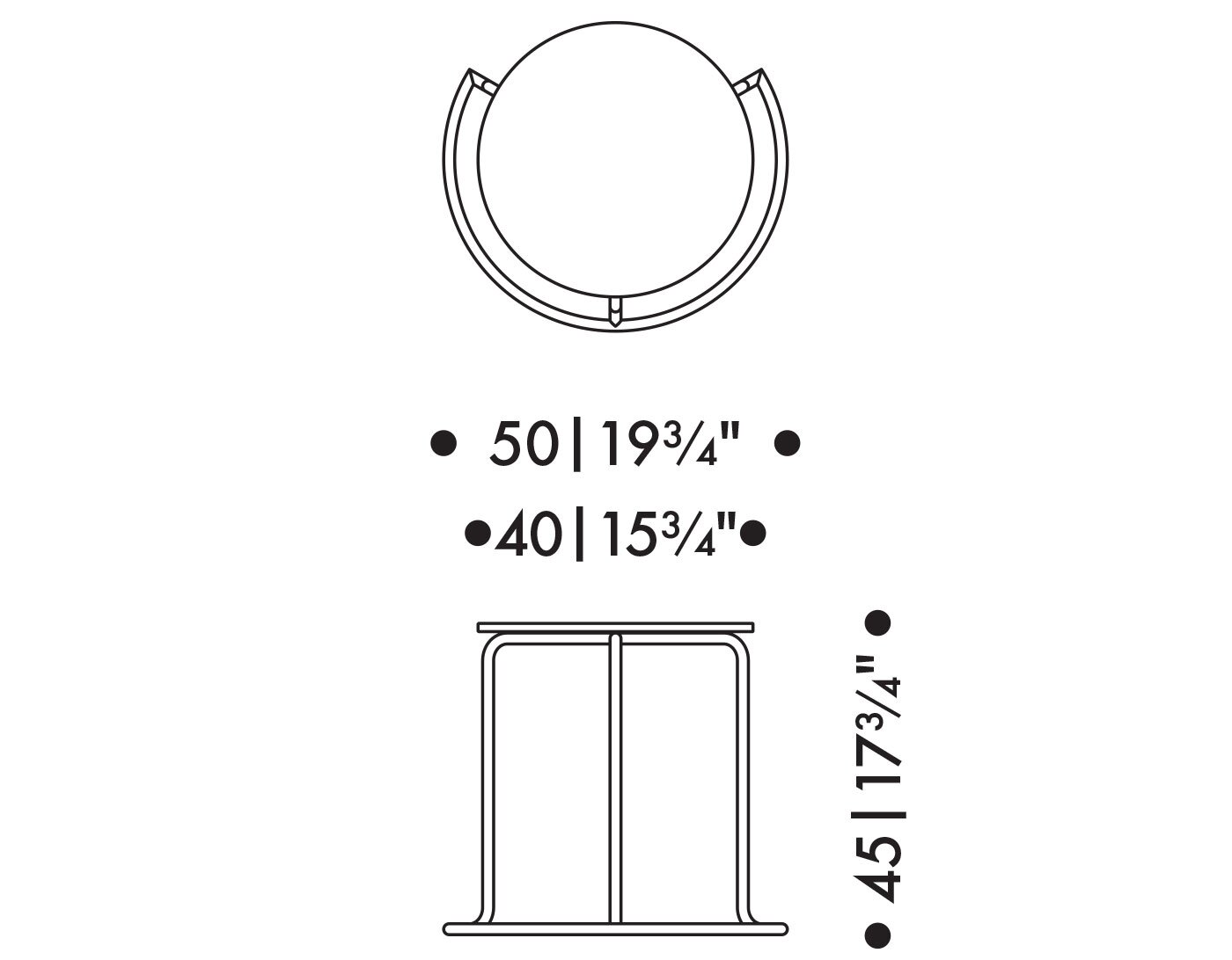 Composed of a tubular steel frame and a birch plywood top, Side Table 606 can be pulled tight to armchairs, sofas, and beds thanks to its three-quarter-moon base. Lightweight and versatile, it is at home in a wide range of settings. Designed by Aino Aalto during the period the Aaltos were working on the Paimio Sanatorium project in Finland, this side table was originally used as a stool for changing shoes.