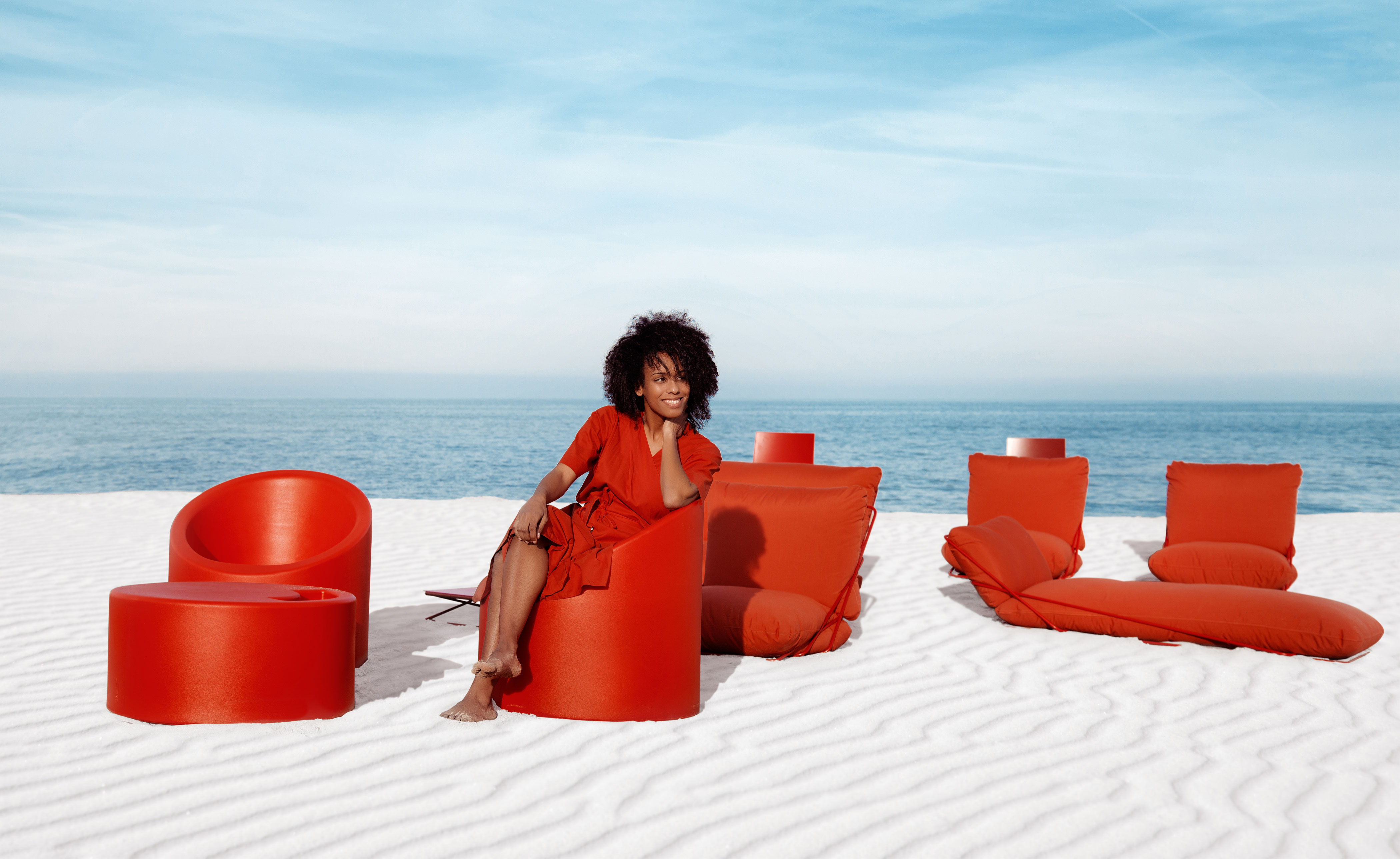 In particular, the oval shapes of a lipstick are perfectly identifiable in the back of the chair in the Lipstick collection, which has a matching side table with similar cylindrical features. However, the shape of this cult object in the world of cosmetics has been transferred to the design of this outdoor armchair with great ease, insinuating its inspiration without it being too obvious.
