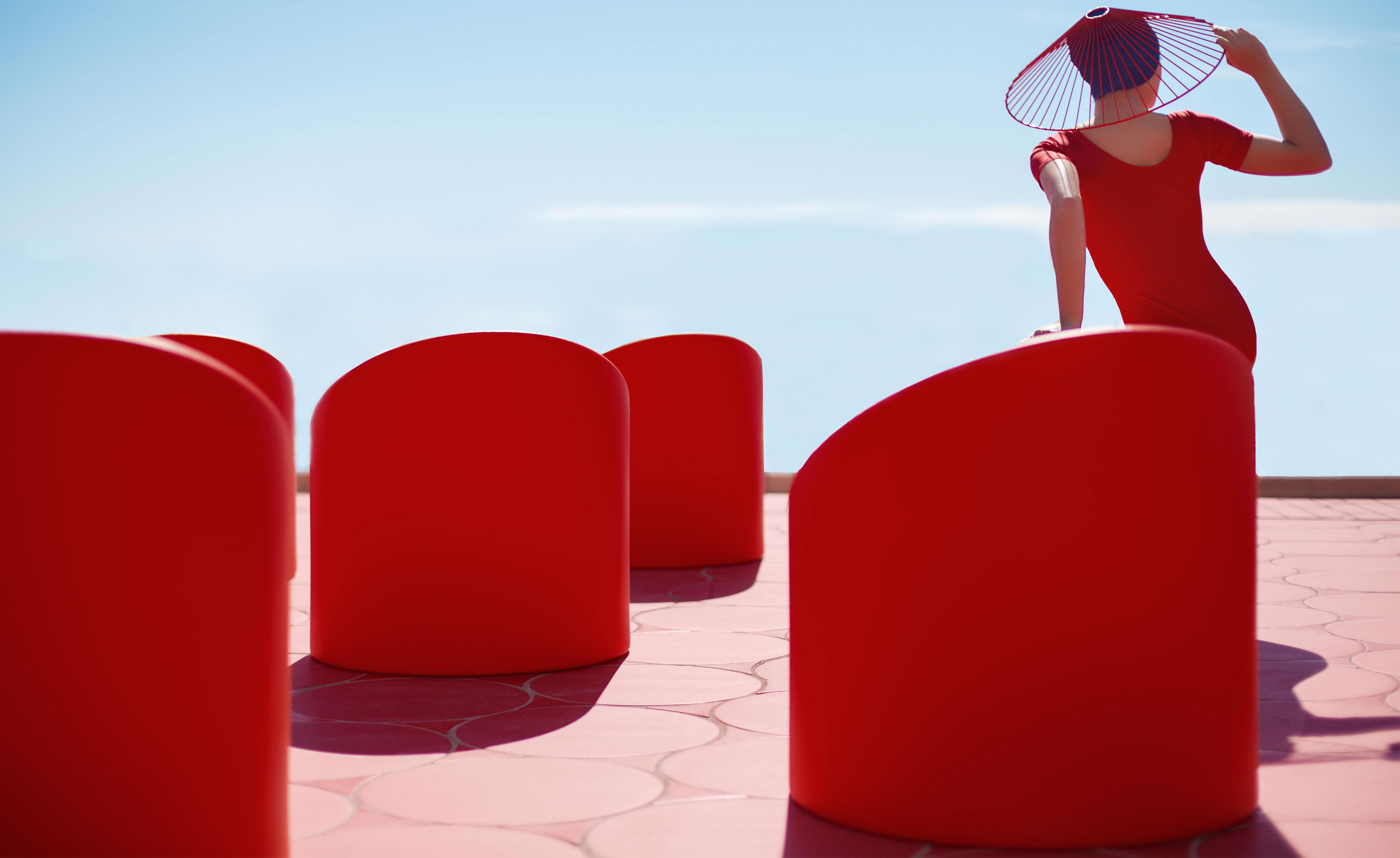 With its pop look and spirit, Lipstick is a collection with a very fun, cheerful personality. Its design is inspired by an everyday object: lipstick. This outdoor armchair and coffee table set has a very striking appearance that is ideal for creating a laid-back, bold atmosphere in your outdoor space, with high doses of style.