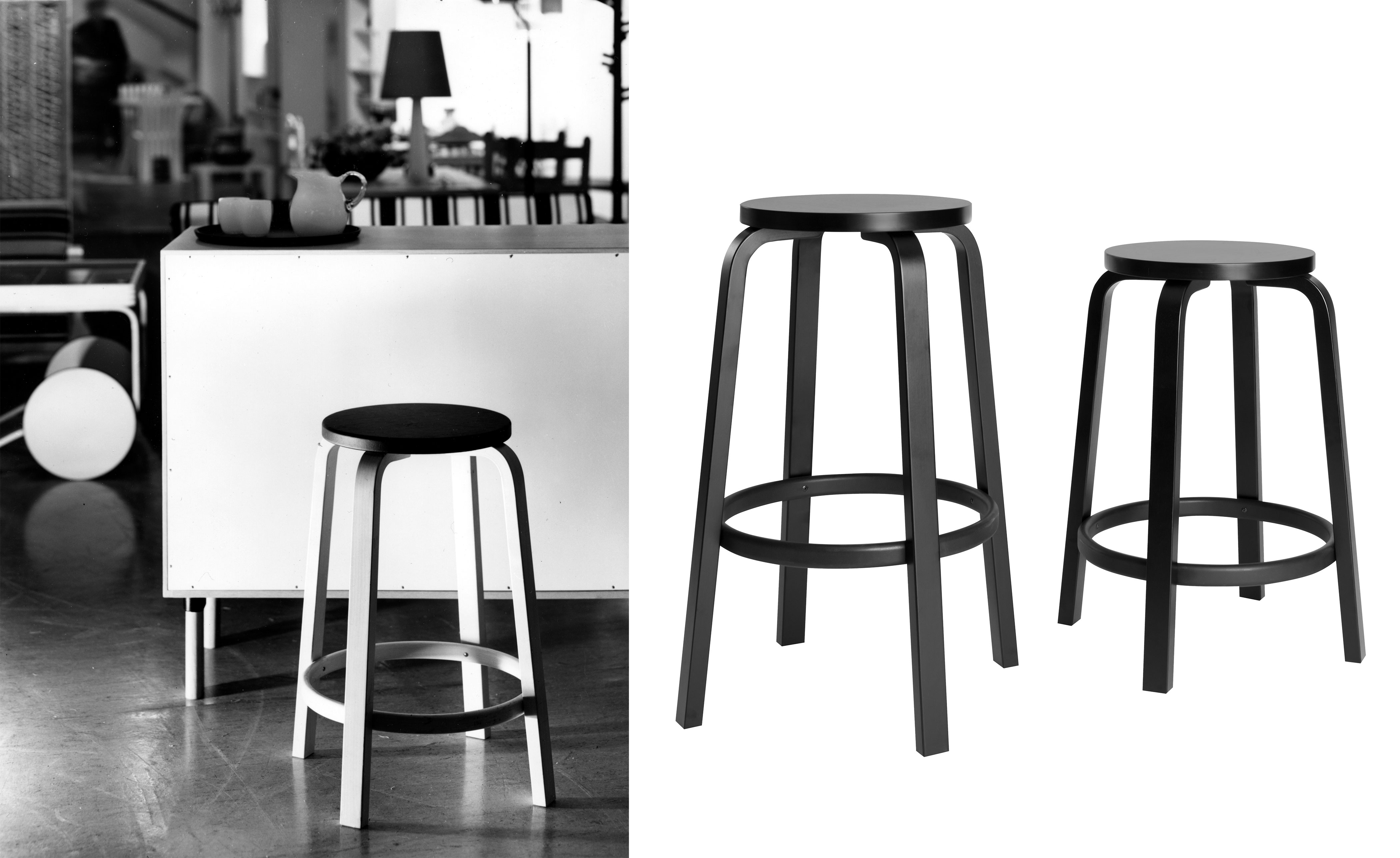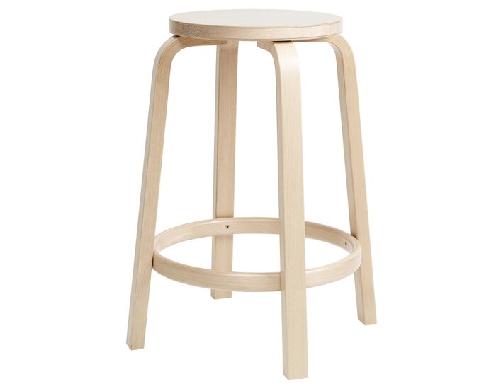 The popular Bar Stool 64 is eternally contemporary, in its element in kitchens, cafes, bars, and at countertops. Symmetrical and non-directional, Bar Stool 64 is always positioned the right way. Well-proportioned and featuring a sturdy birch foot ring, Bar Stool 64 is created according to Aalto's original system of standard components. Available in a wide variety of colors and finishes.