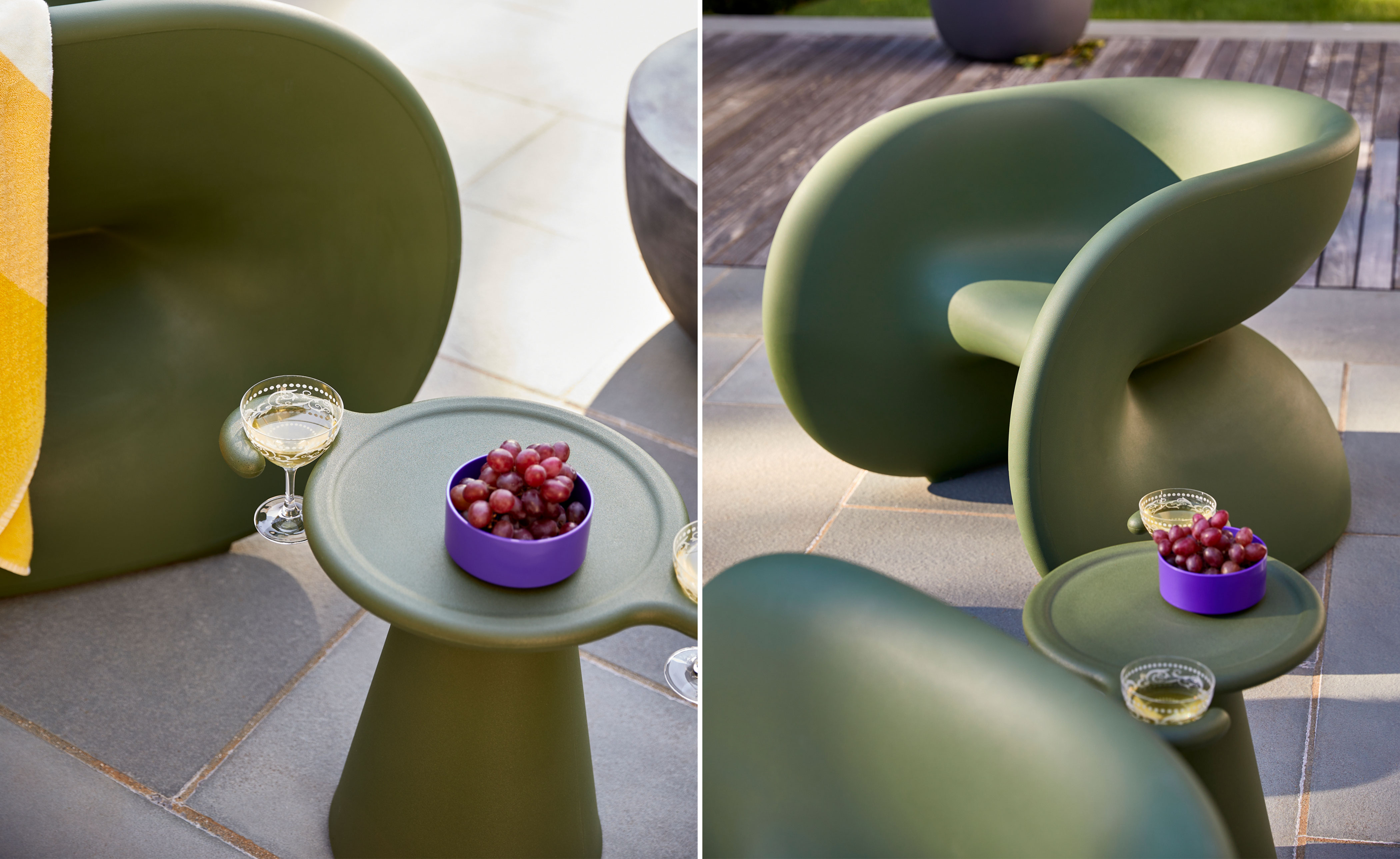 The JUMBO duo are unabashed foodies and creatures of comfort who designed the Fortune Chair with nostalgia in mind. When Monling immigrated from Taiwan to the United States at the age of thirteen she enjoyed her very first fortune cookie. To this day she remains smitten with the cellophane-wrapped crispy wafer, its iconic pinched-circle shape and the surprise message hidden inside. This comfort food became the inspiration for the joyfully abstract Fortune Chair.