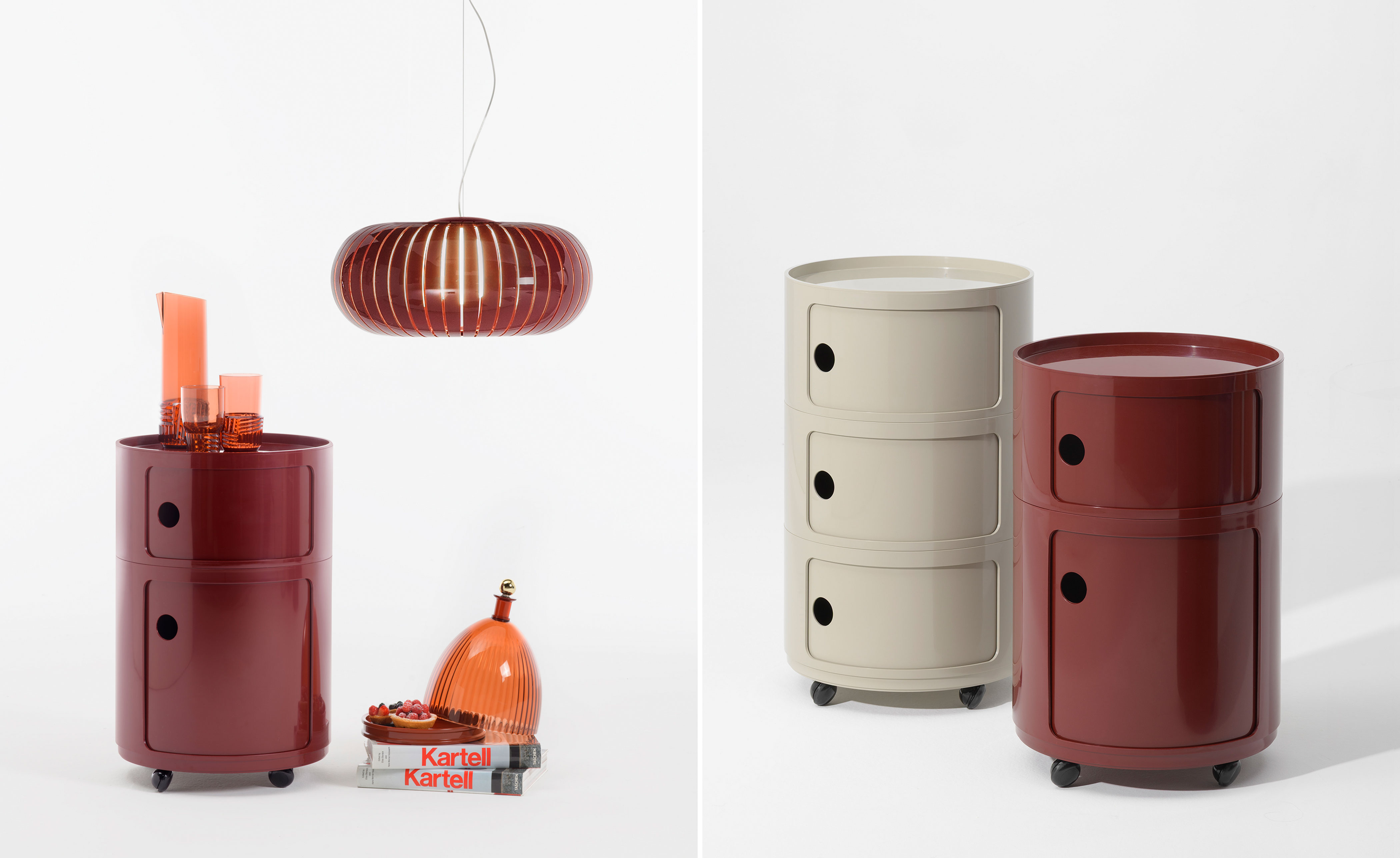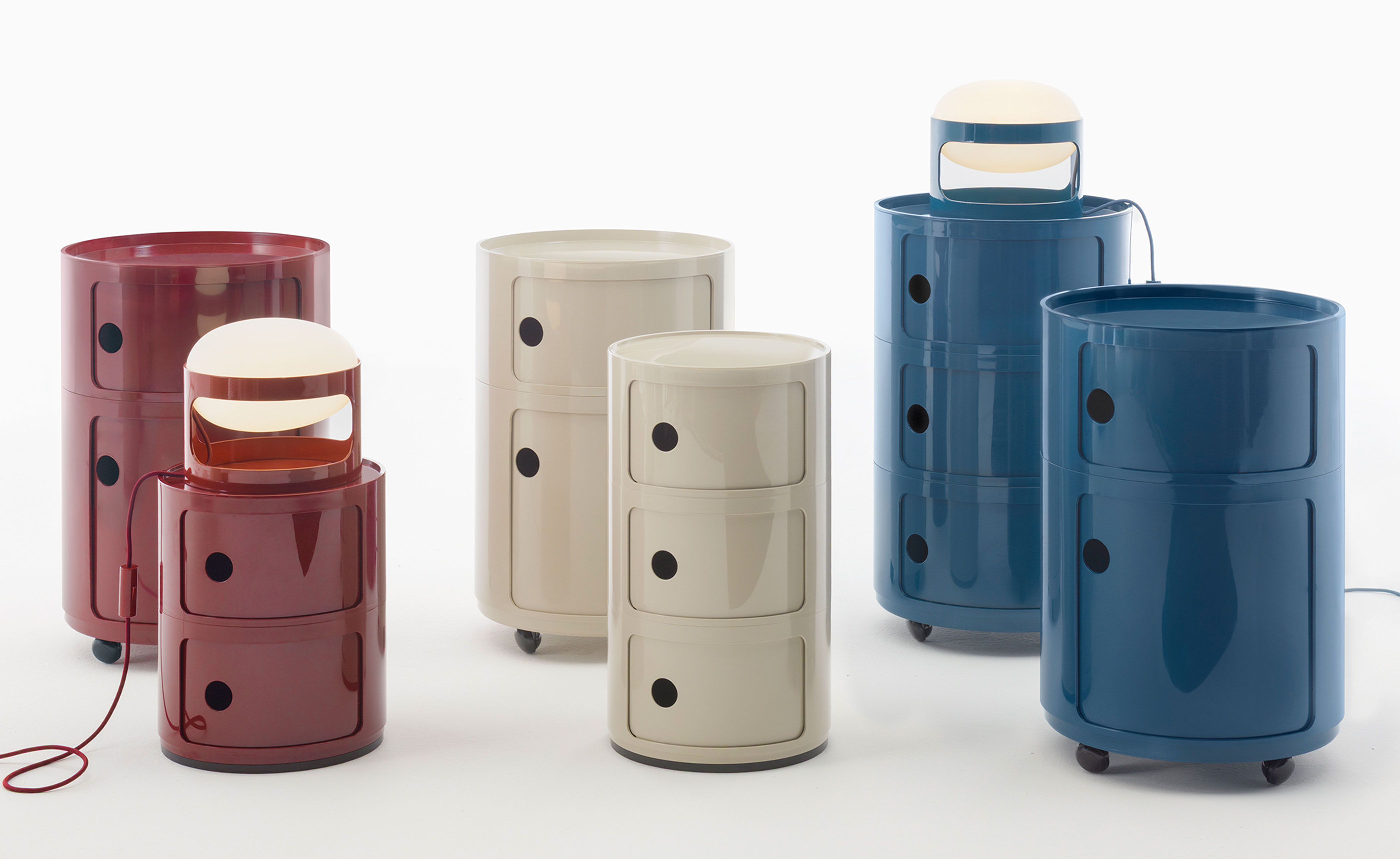 Available in configurations of 2 or 3 indivisible elements, this version of Componibili is the latest technical evolution of a classic from the Kartell catalogue. Componibili Big New Colors are offered in fixed modules, meaning the entire structure is a single, non-disassemblable unit; therefore, they cannot be separated or reassembled in different configurations. It is possible to fit wheels on Componibili Big New Colors, allowing you to move them easily according to your needs. Wheels are not included and must be purchased separately as an optional accessory.