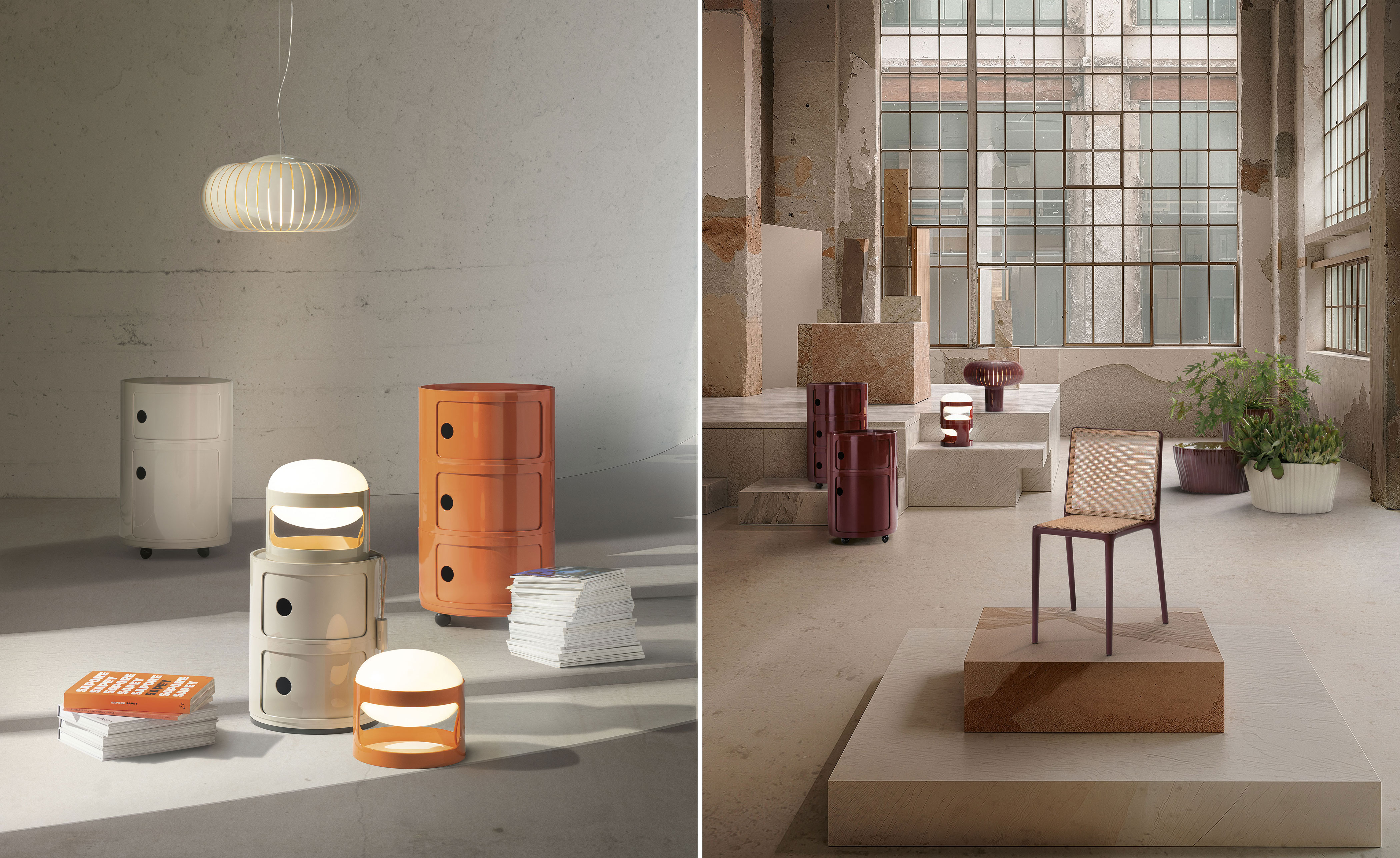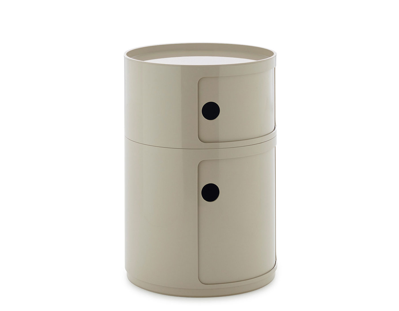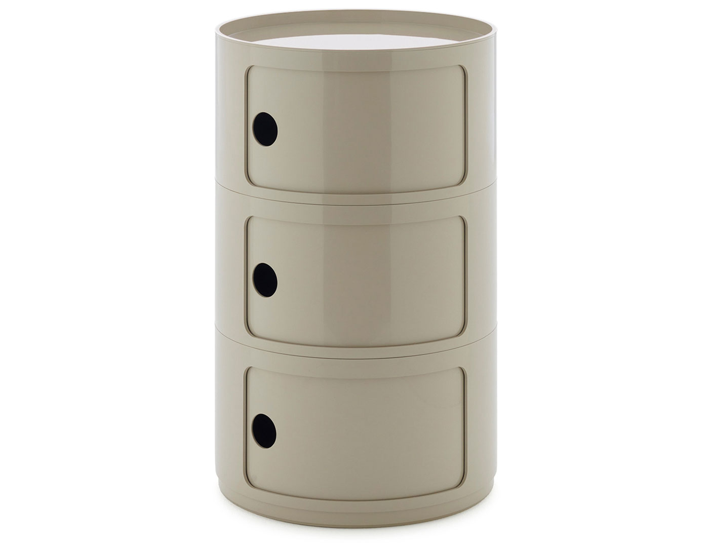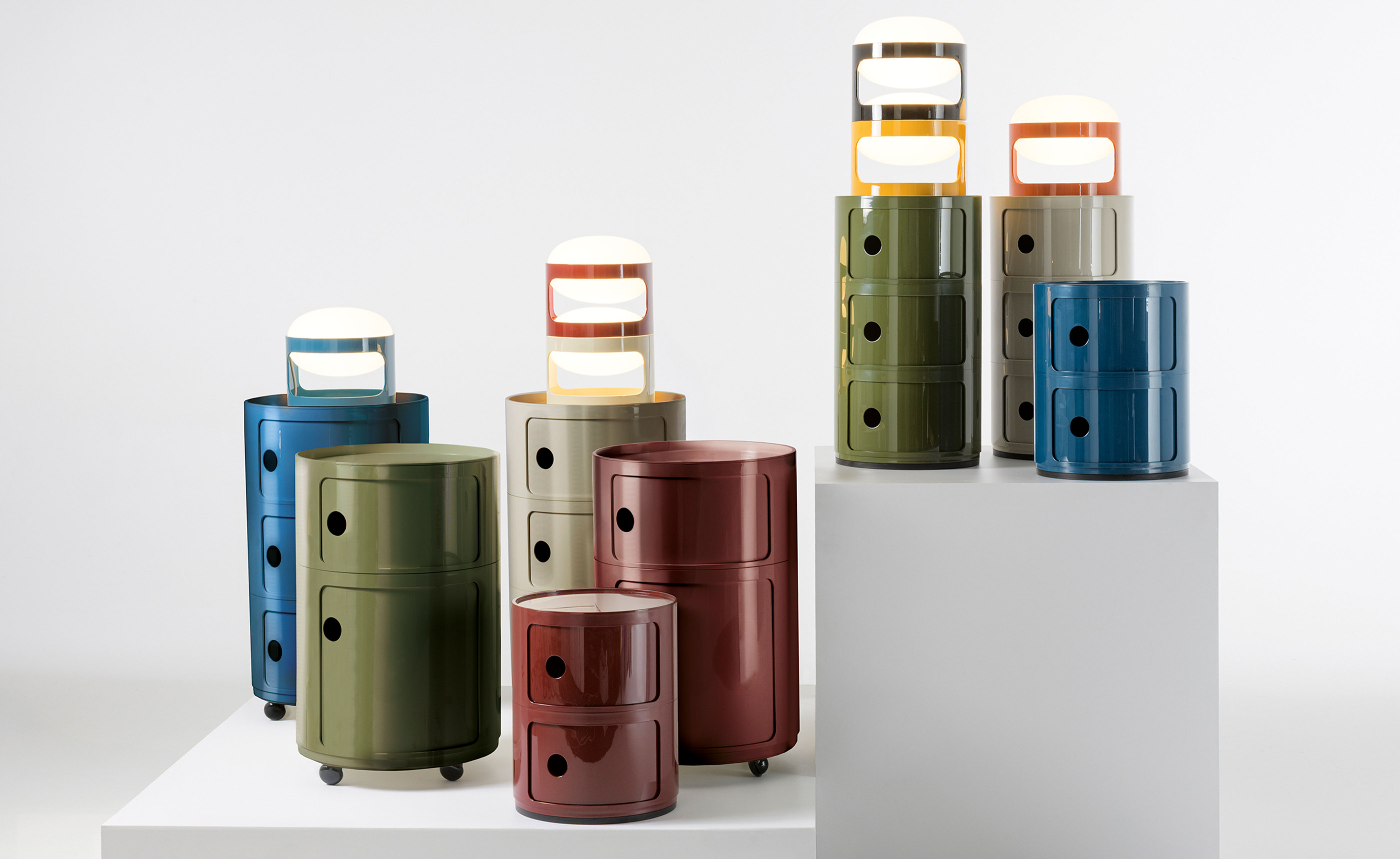 The 16.5" round version of Anna Castelli Ferrieri's Componibili now comes in an all-new look thanks to a new industrial print that enhances both quality and appearance. There are more colors to choose from too, with the addition of nuances already available for the 12.6" size complemented by original new shades that blend contemporary taste with elegant references to the past.