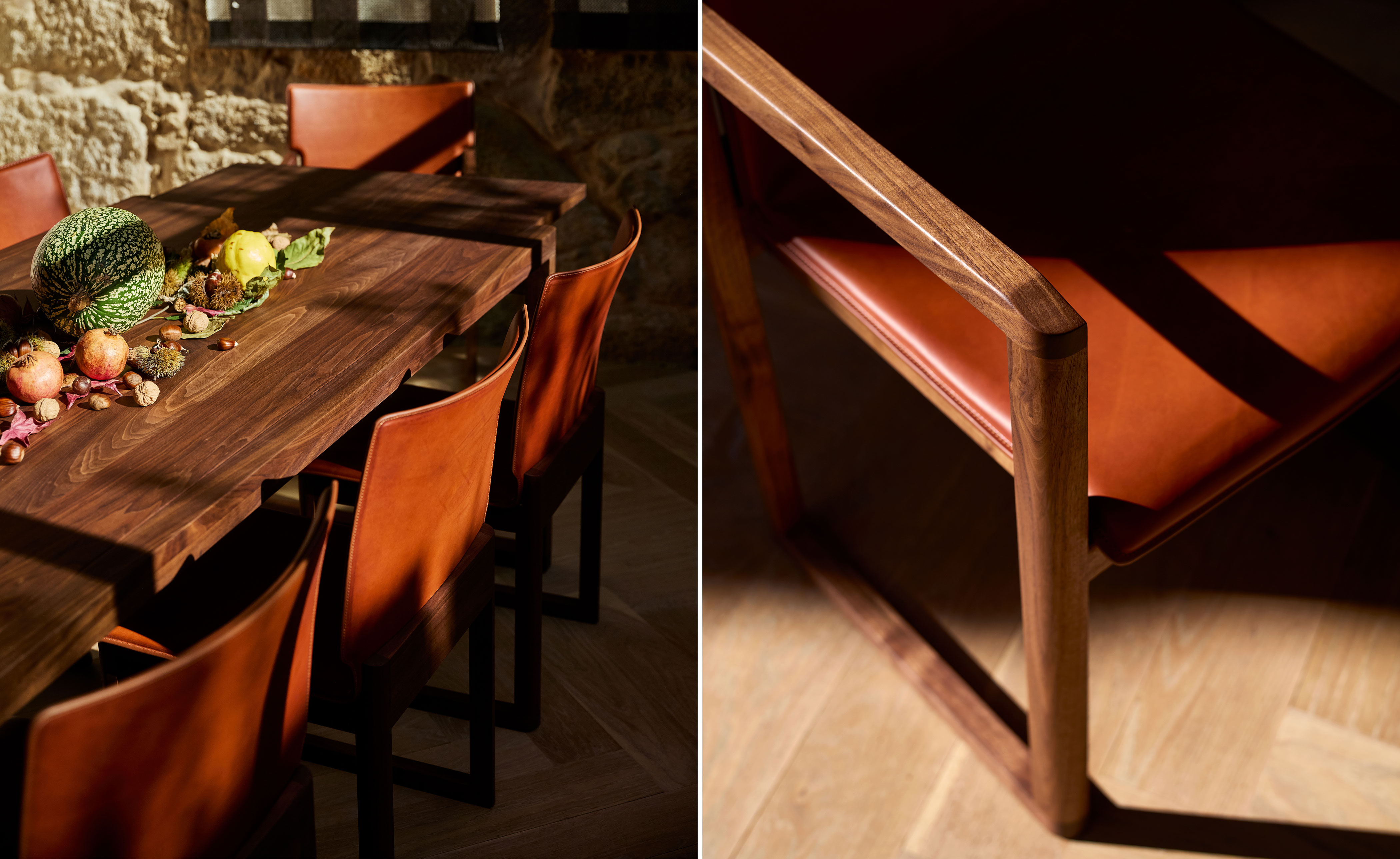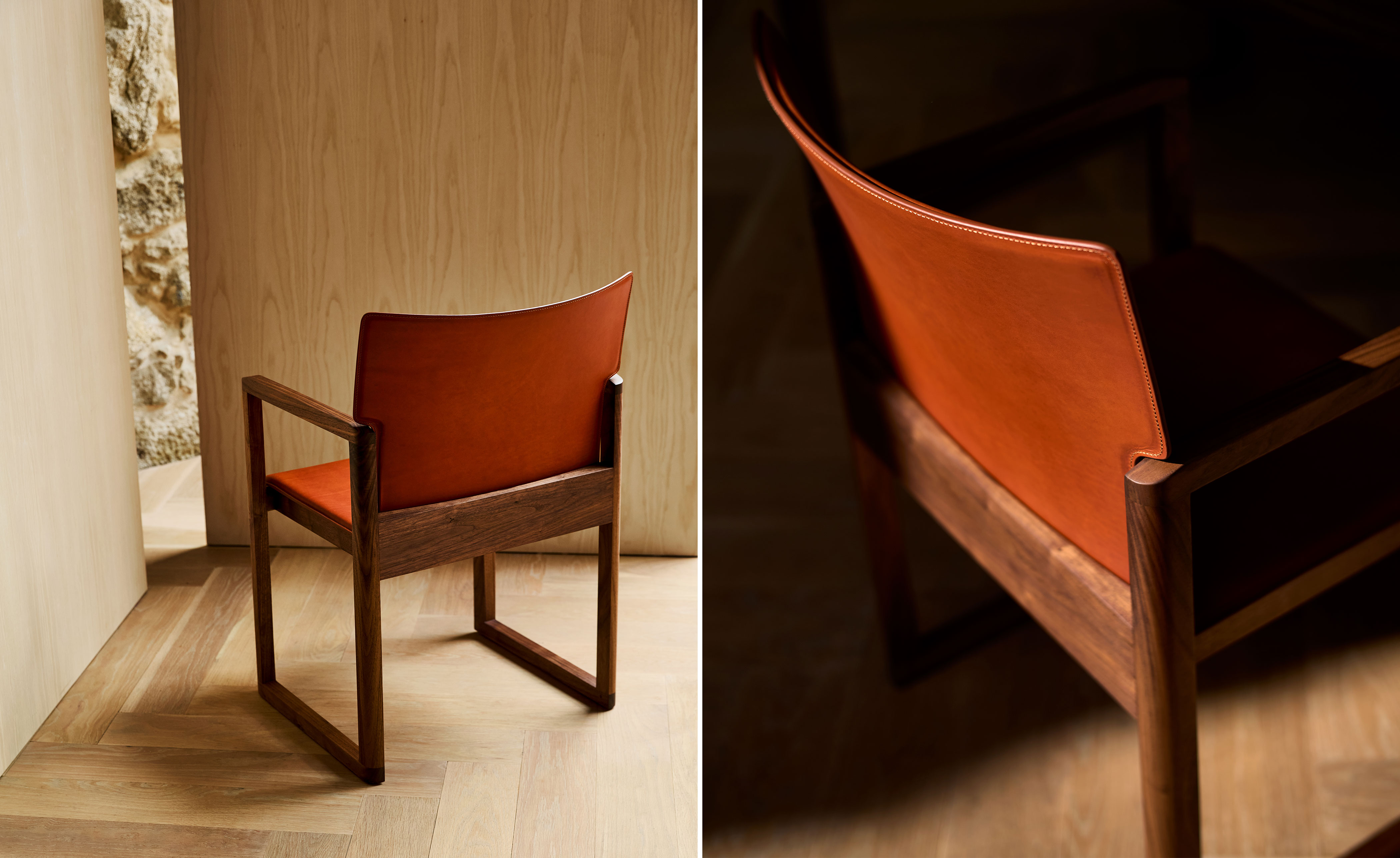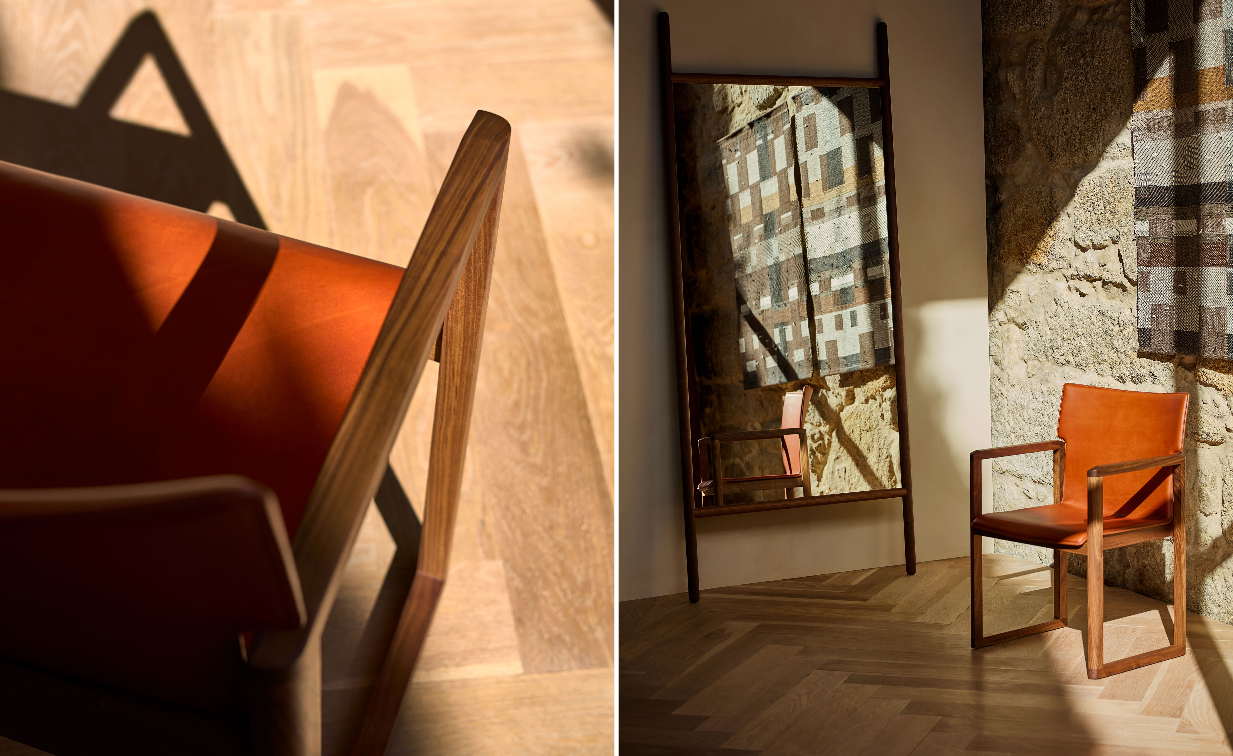 Available in black walnut, white oak, or ash in a range of finishes and saddle leather in a choice of colors. Crafted at the solar-powered De La Espada factory in Portugal. Designed by a creative partner and rigorously engineered with the support of our in-house product development team and expert craftspeople. Durability, comfort and aesthetics combine for a product that lasts a lifetime.