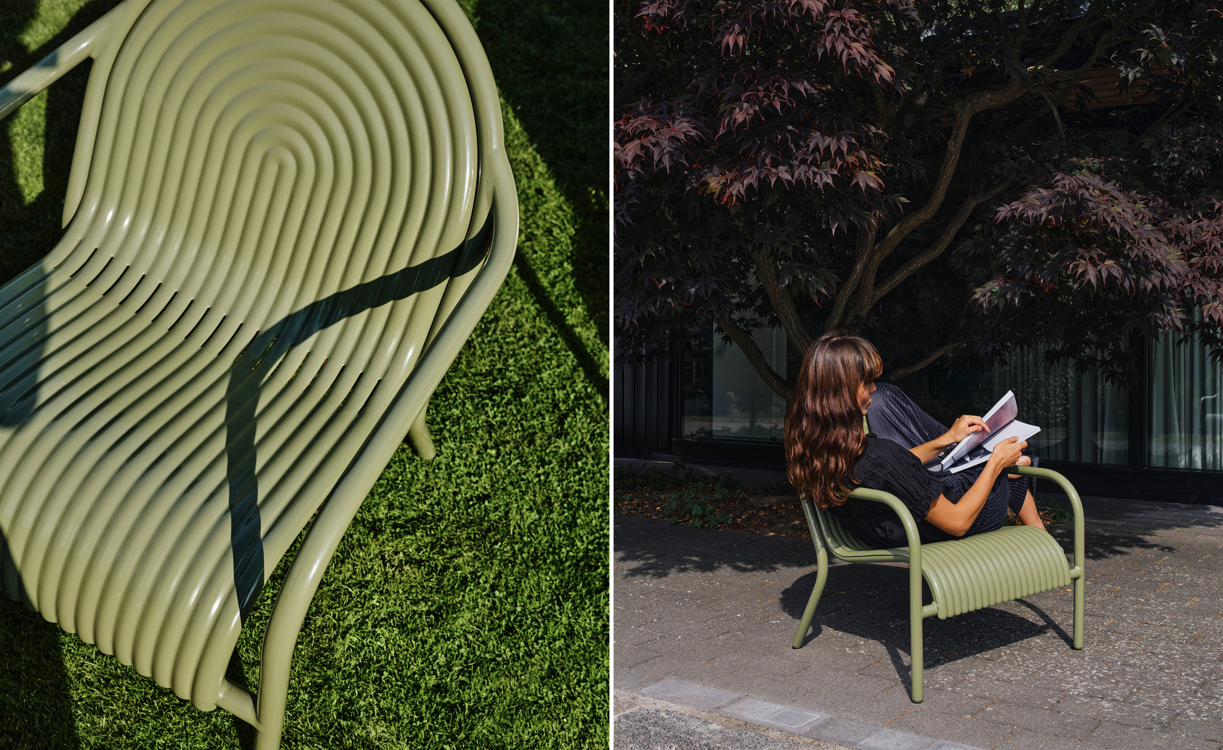 Introducing the Groove Lounge Chair, the latest addition to the Groove outdoor collection. Featuring distinctive art deco-style raised ridges and the ability to stack, this chair is crafted from premium aluminum using advanced manufacturing techniques for exceptional durability. Its high-quality powder-coated finish is solvent and VOC-free, making it ideal for all season, all weather outdoor use. Developed from over a decade of research and inspired by the 2021 HYDRO aluminum chair.