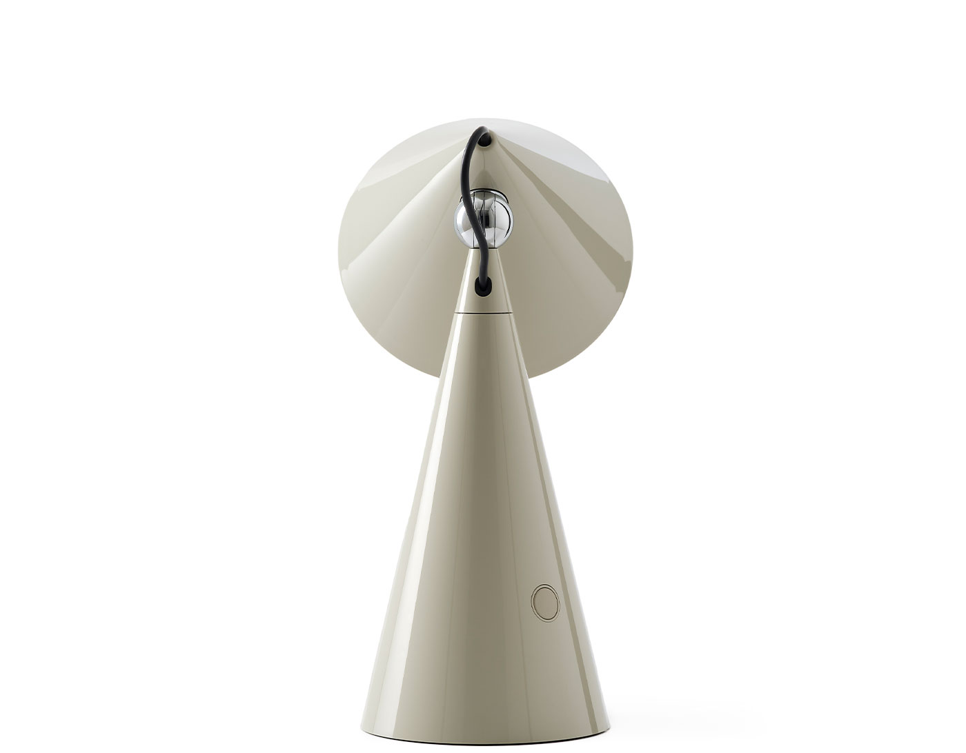 It features a 3-step touch-dimmable LED ring that toggles between 2700K and 3000K, powered by a rechargeable battery with a 6 to 9 hour lifespan. Practical functionality meets minimal design.