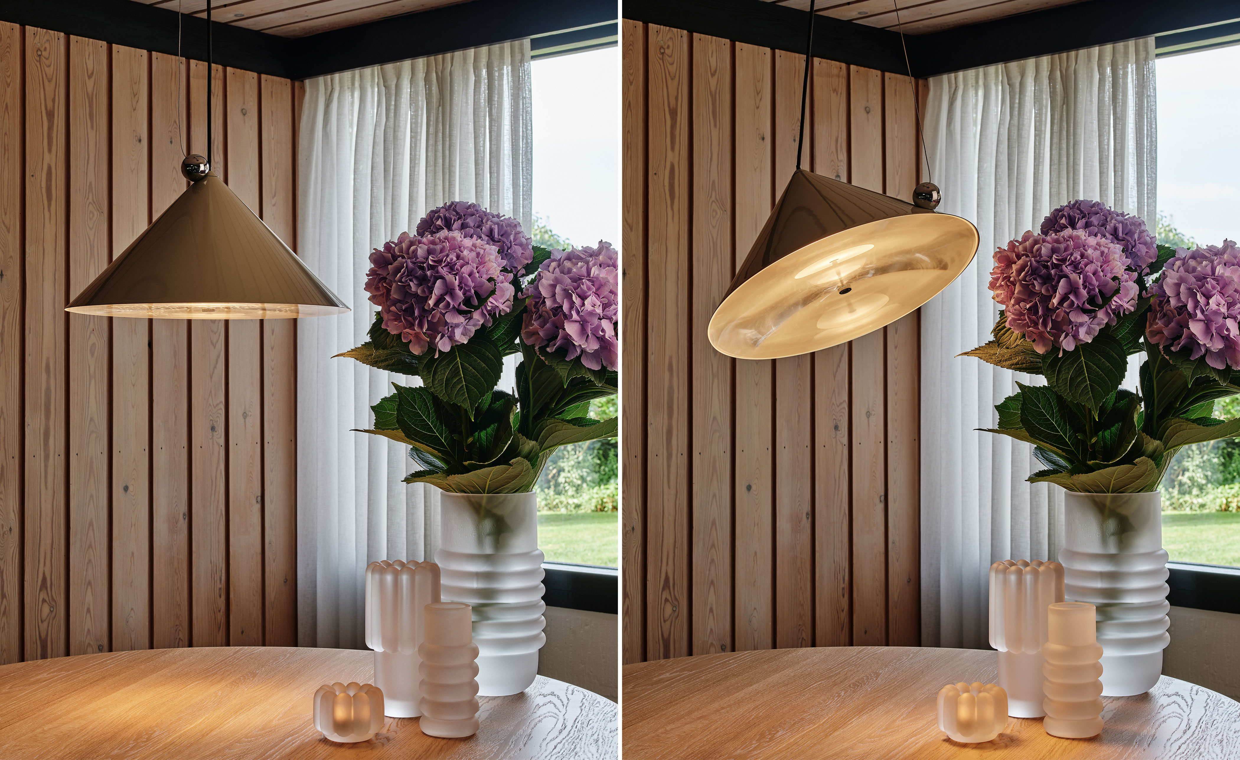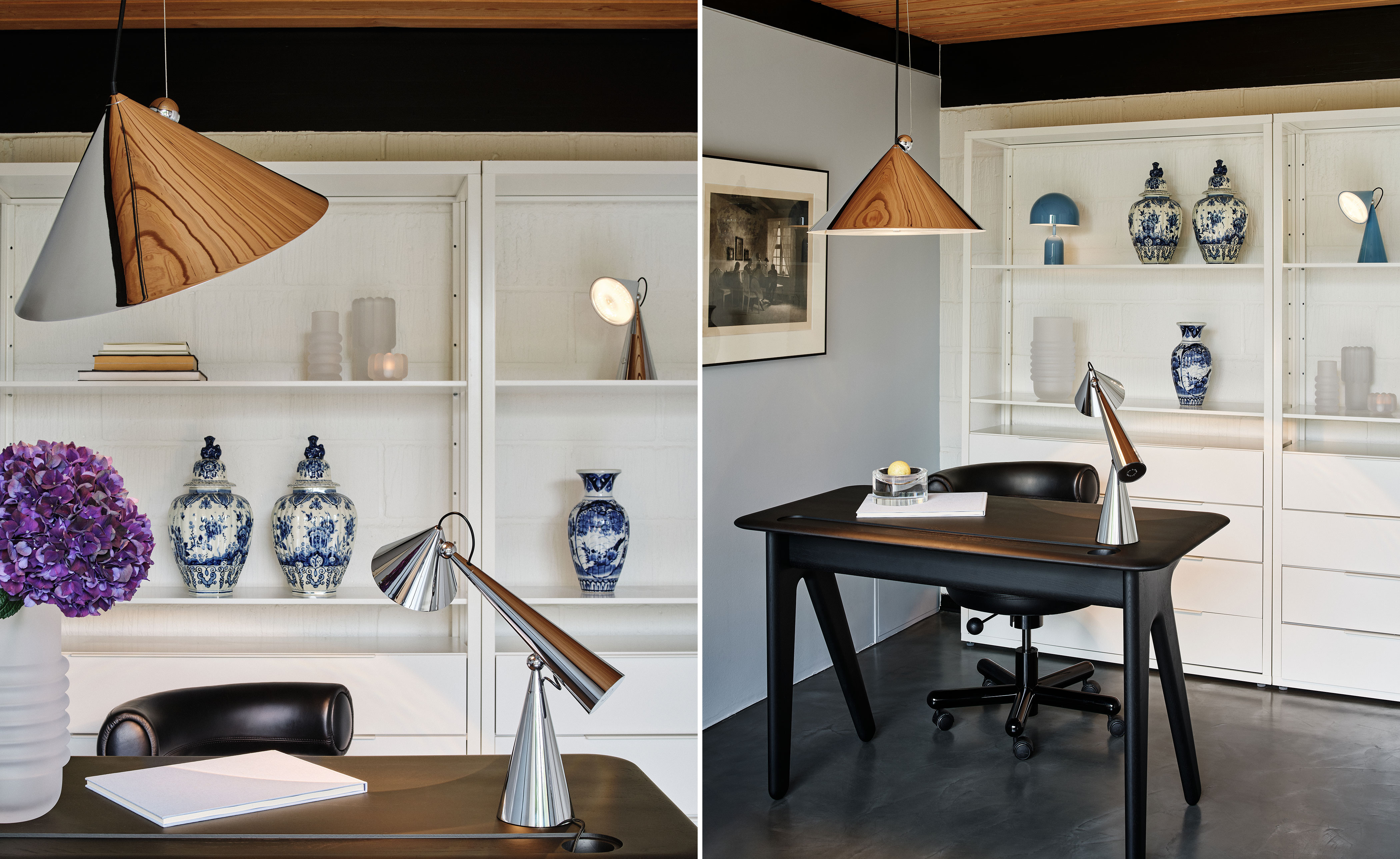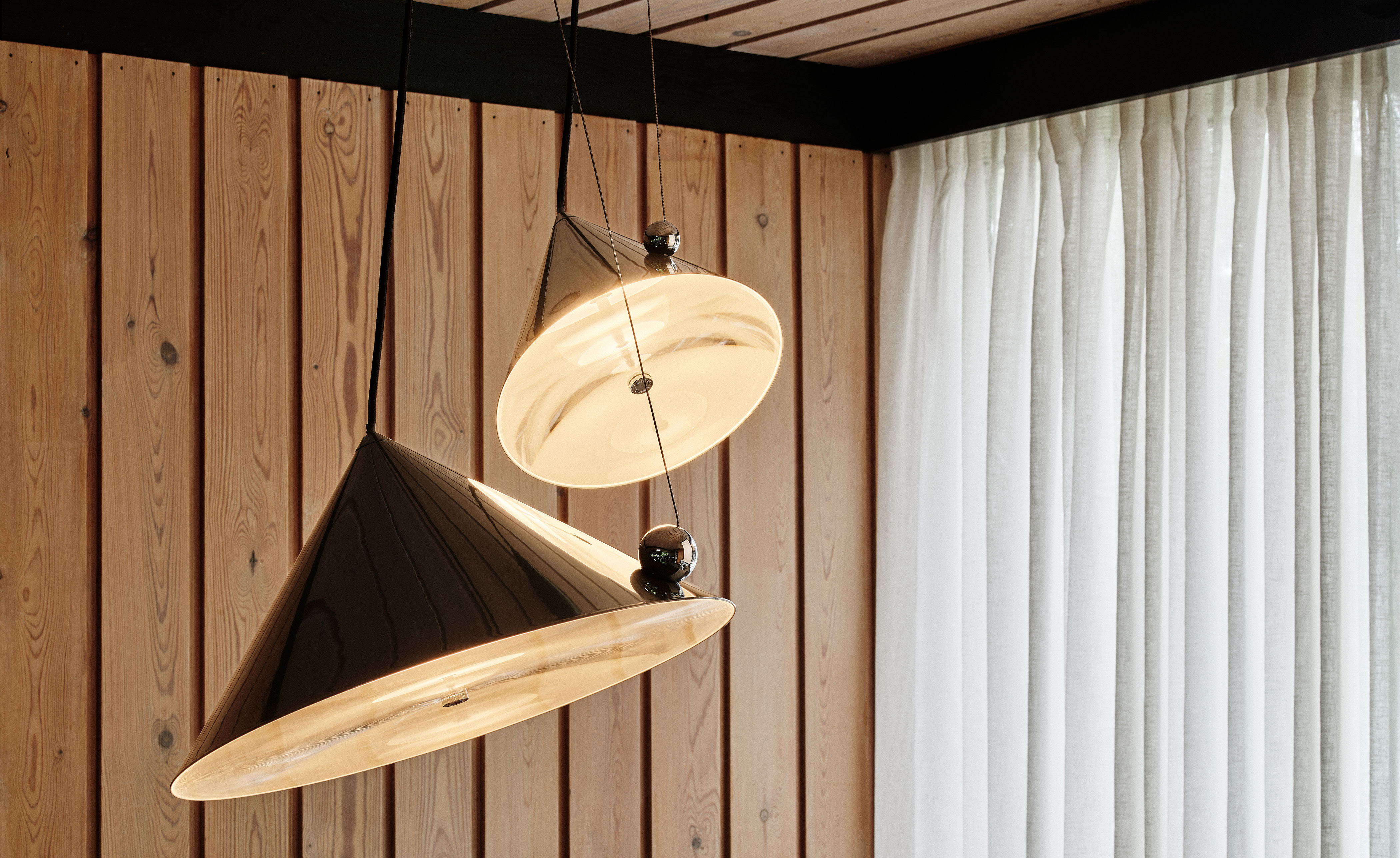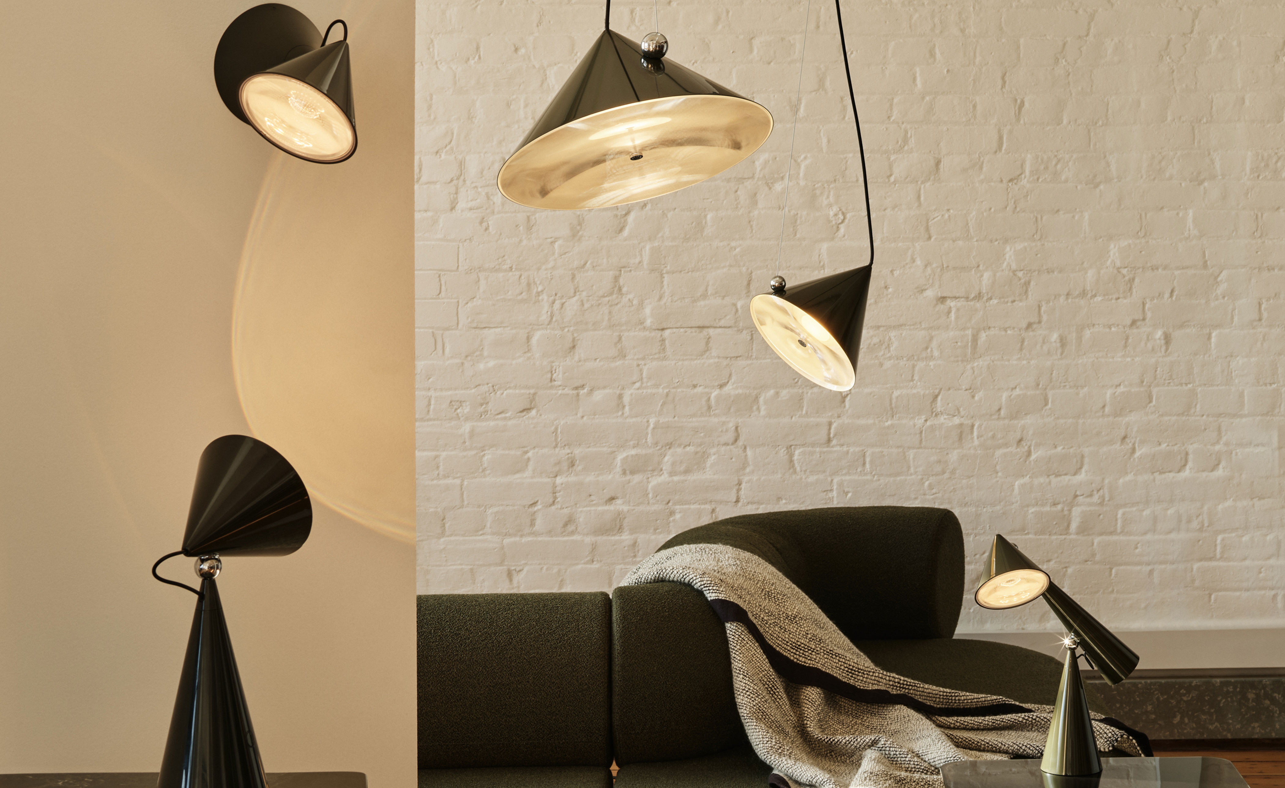 Inspired by the balance of conical forms and the principles of optical physics, it features a Fresnel lens to provide directional light. The POSE Pendant include a highly polished magnetic sphere and custom chrome ball joint, which enables precise directional adjustment for downlighting, backlighting or accent lighting. Available in two sizes, POSE is crafted from steel and comes with a 2700k LED replaceable light source.