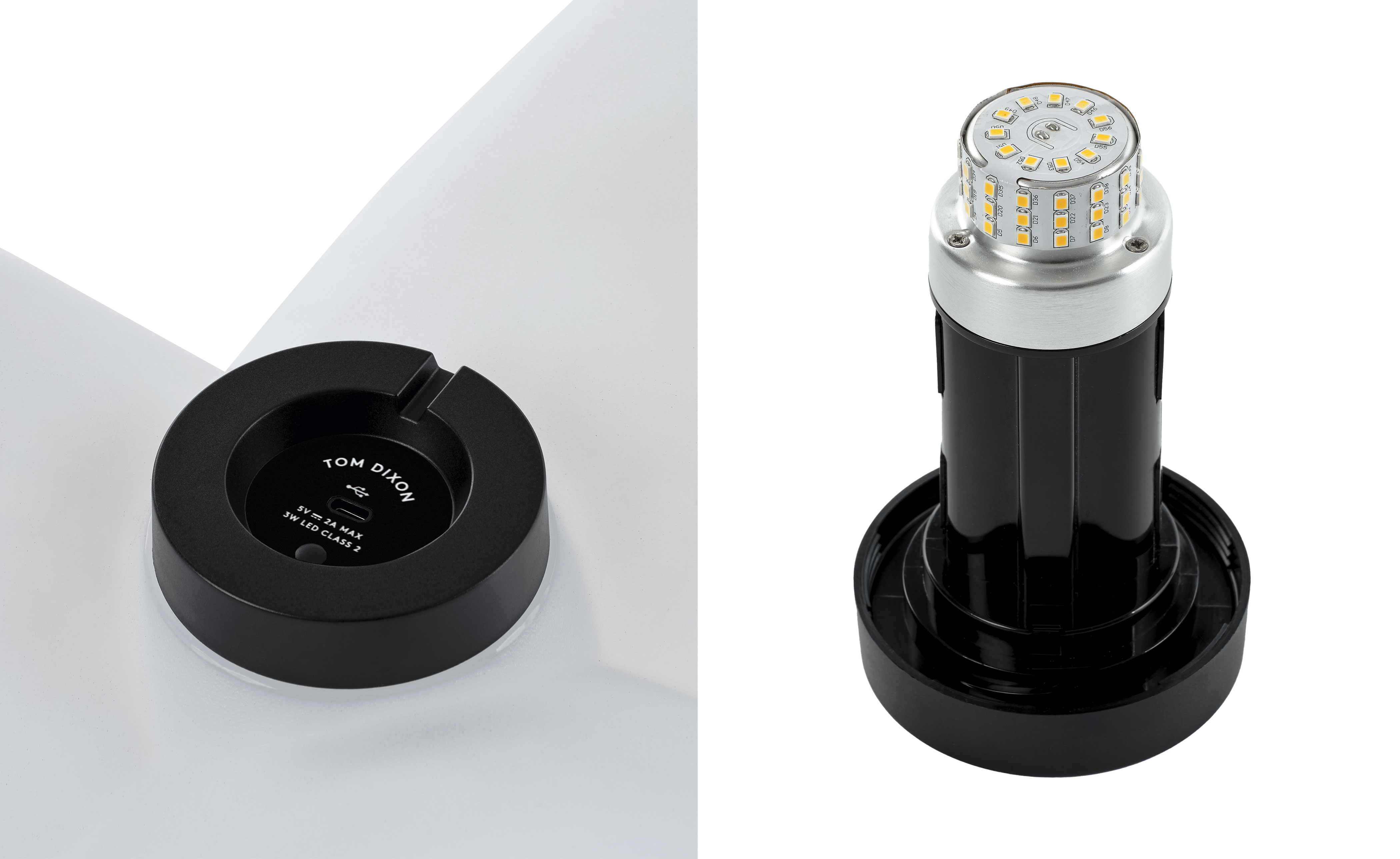 The matte white shade creates a soft, diffused glow from an integrated and replaceable 5W LED, delivering warm 2700K light. A dimmer allows smooth, continuous brightness control, while a remote can pair and control up to three lights. Rechargeable via USB-C, JACK provides up to 8 hours of light. Fully IP65 rated, it's built for outdoor use and long-term durability, with replaceable components to reduce waste.