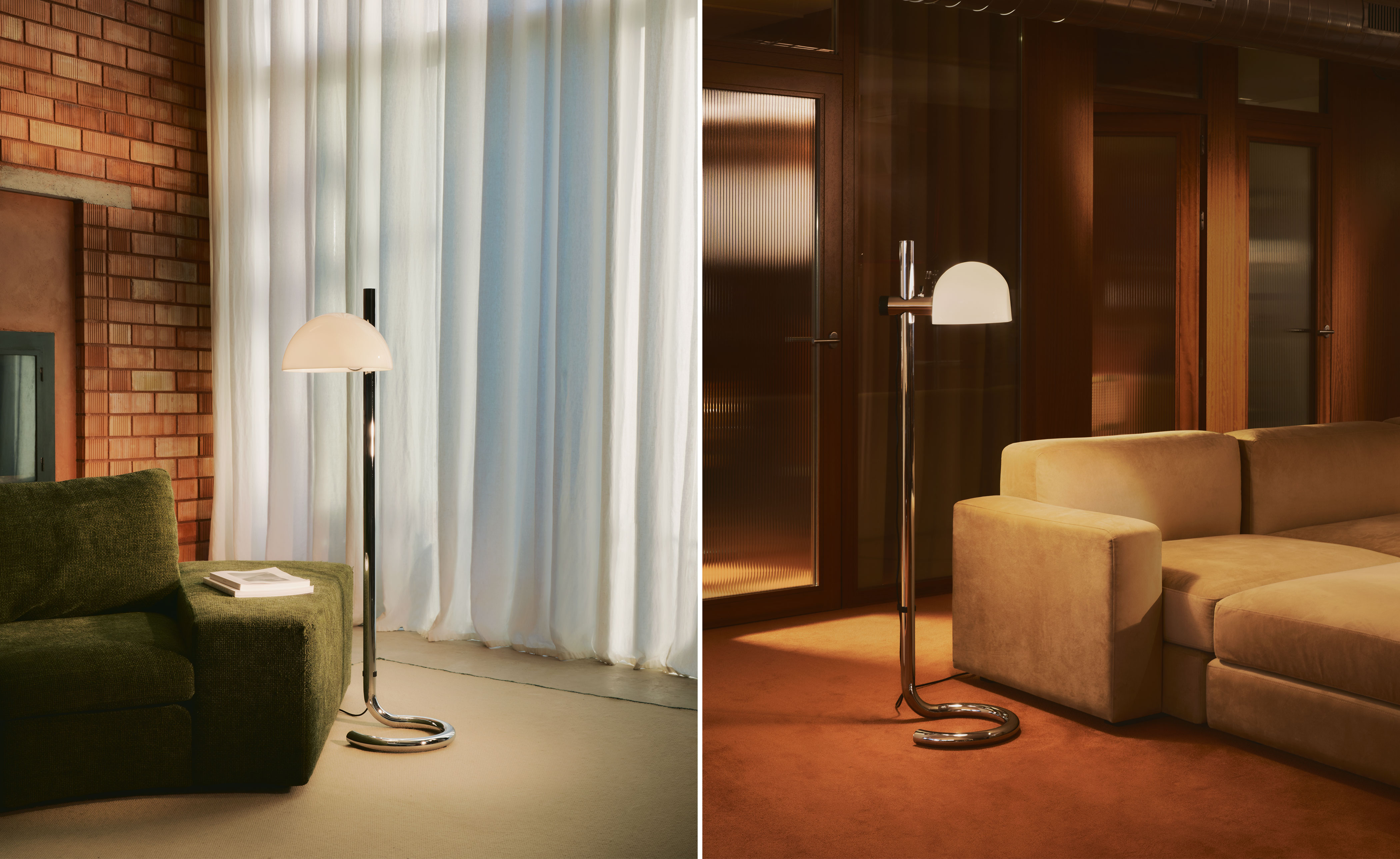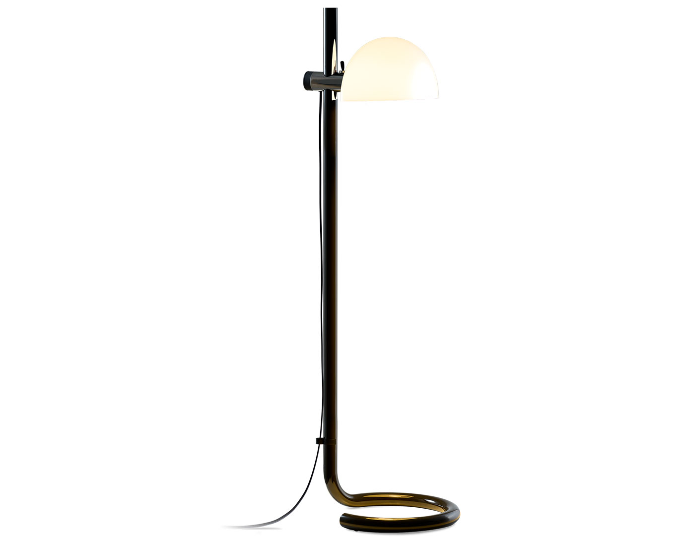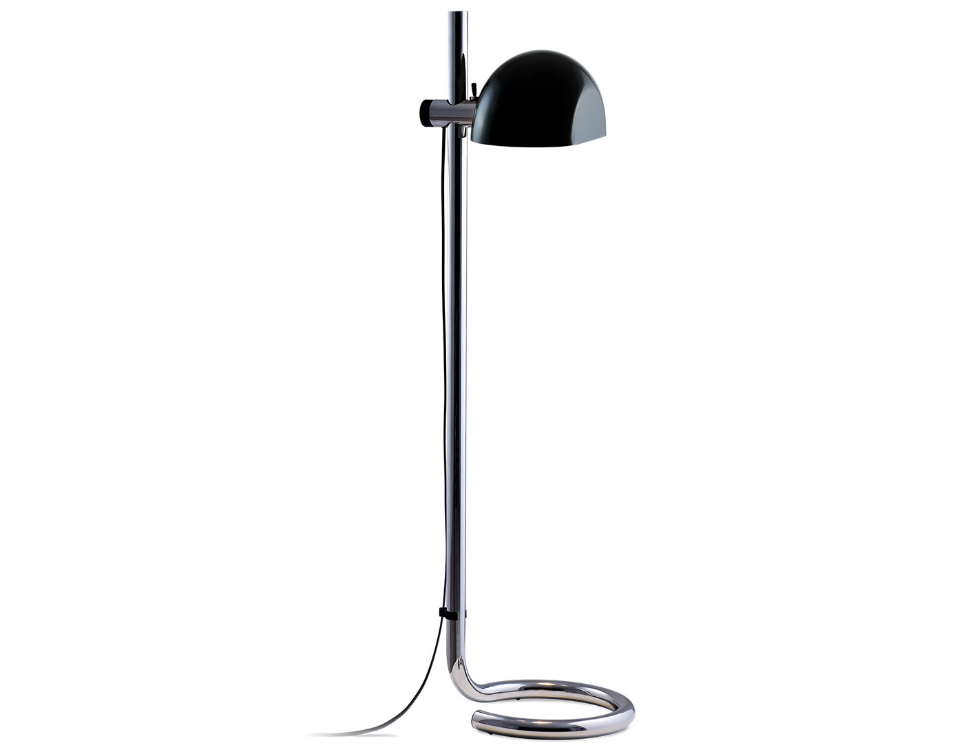 This design brings together the past and the present. Its reissue is faithful to the original: the base and the stem, available in chrome or charcoal, are made from steel, a material difficult to shape, typical of the industry at that time. In the 1970s, being able to bend steel was innovative, a huge challenge, and it still is today. That's why Lauro is also a contemporary design because it highlights the achievements of half a century ago. Its methacrylate shade is available in translucent opal projecting a diffuse light, or in two-layer black to provide direct illumination.
