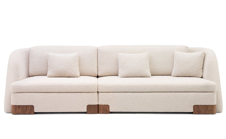 Albireo Sofa by Anthony Guerrée is a flexible seating system with gentle curves and a tall backrest, offering refined style and deep comfort. With just six key modules, Albireo Sofa can achieve numerous configurations with a sense of dynamism. The upholstered form is punctuated by solid wood feet and optional solid wood side tables.