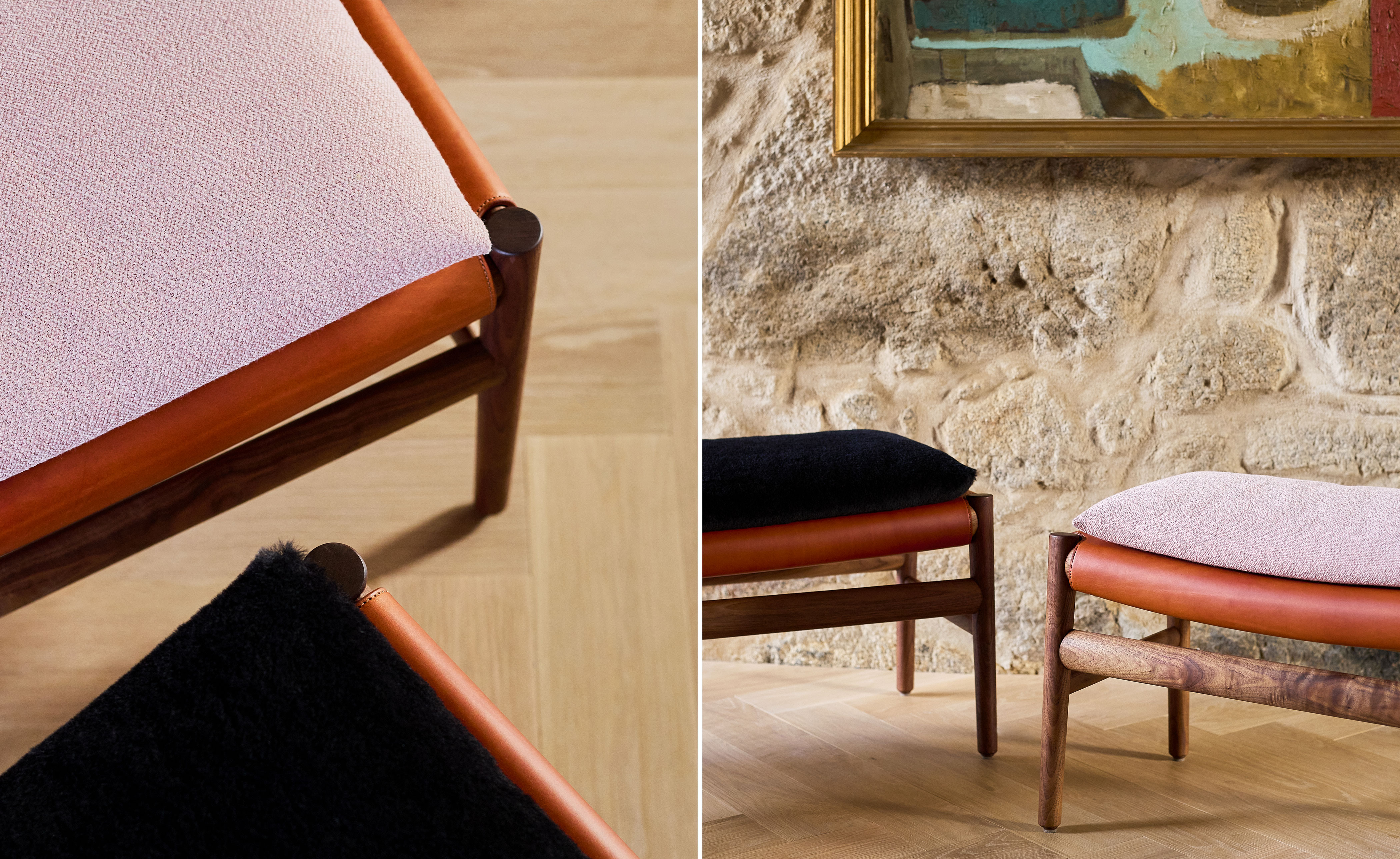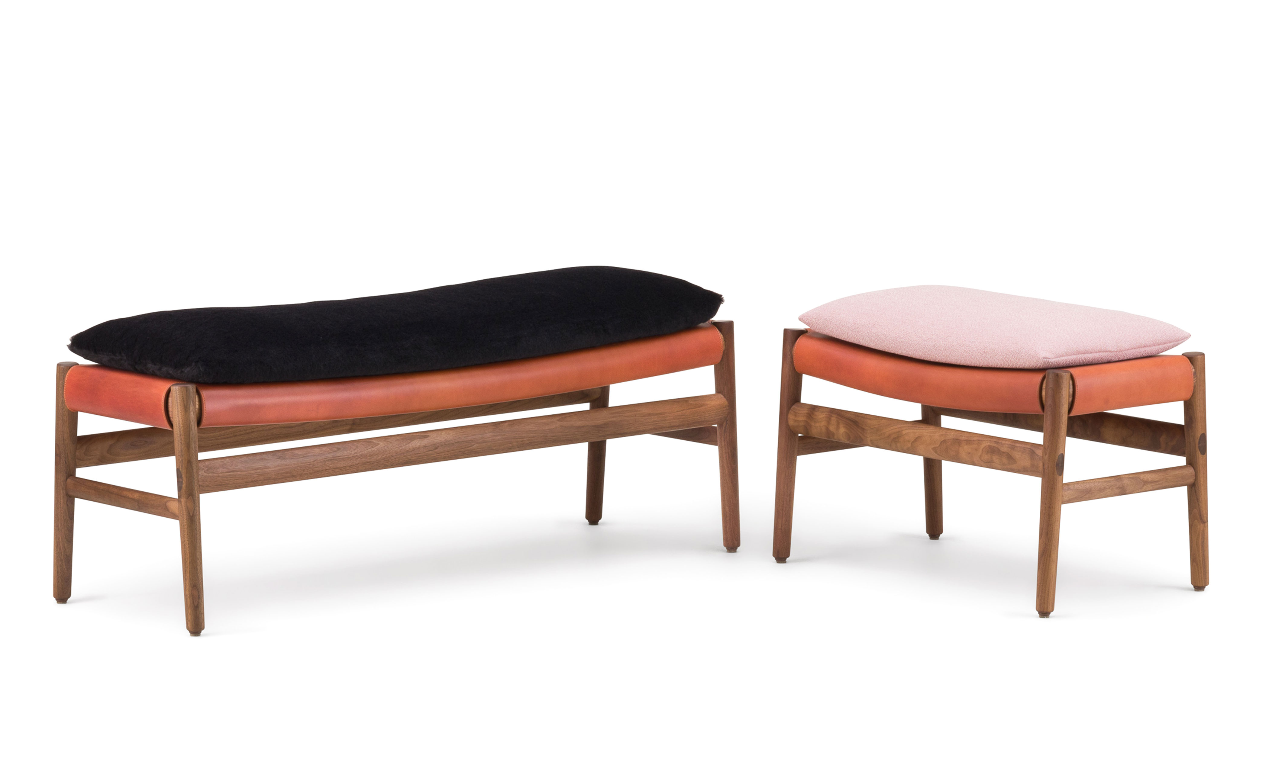Sela Bench embraces generations of craft wisdom across a range of disciplines: a tactile timber form with beautiful joinery reflects the virtuosity of De La Espada woodworkers; an exquisite leather seat is made using heritage Portuguese saddlery craft; and cushions are expertly tailored by skilled upholsterers. Sela boasts an ageless appearance with a contemporary edge; the perfect blend of natural elements, craftsmanship, and timeless appeal.