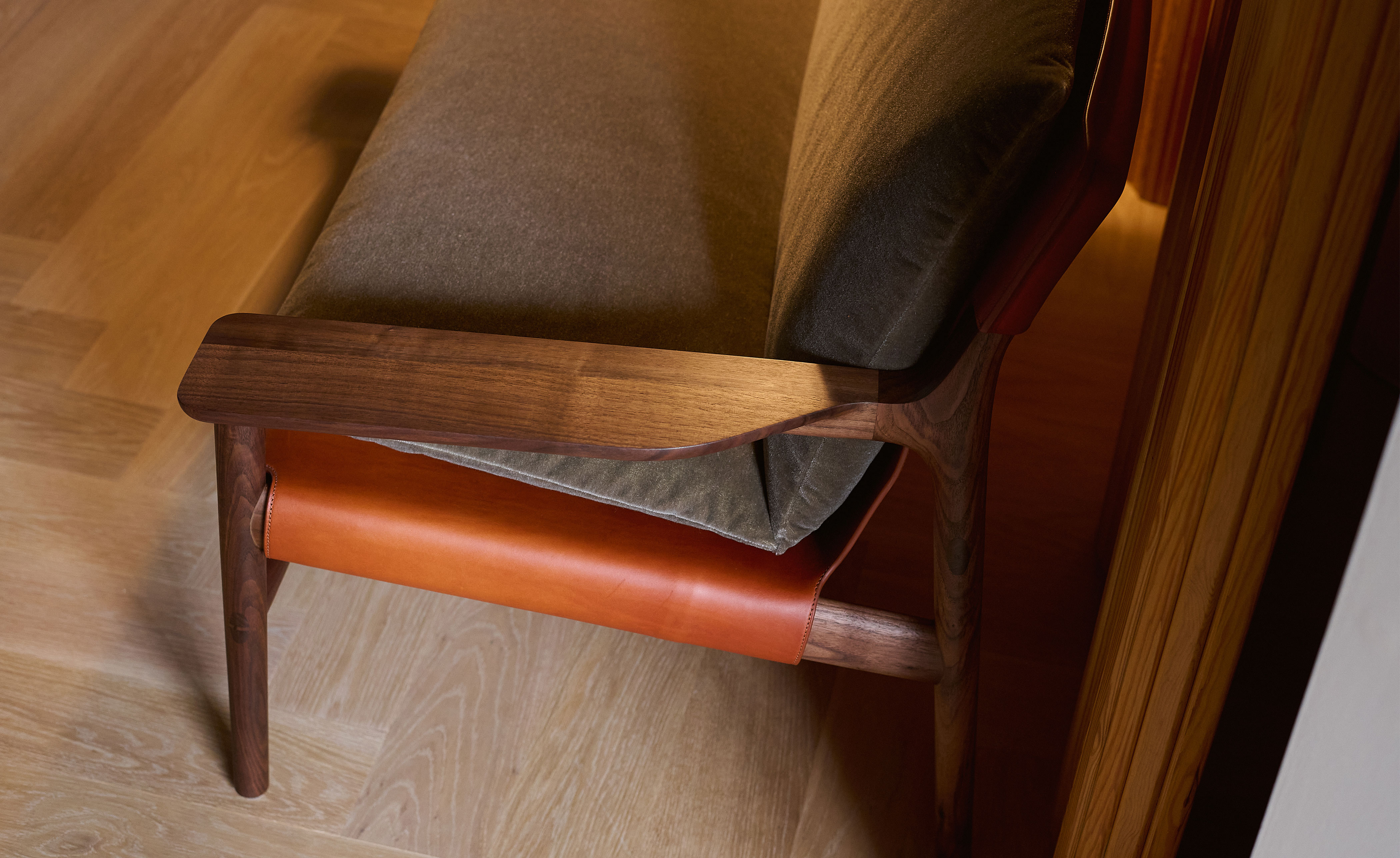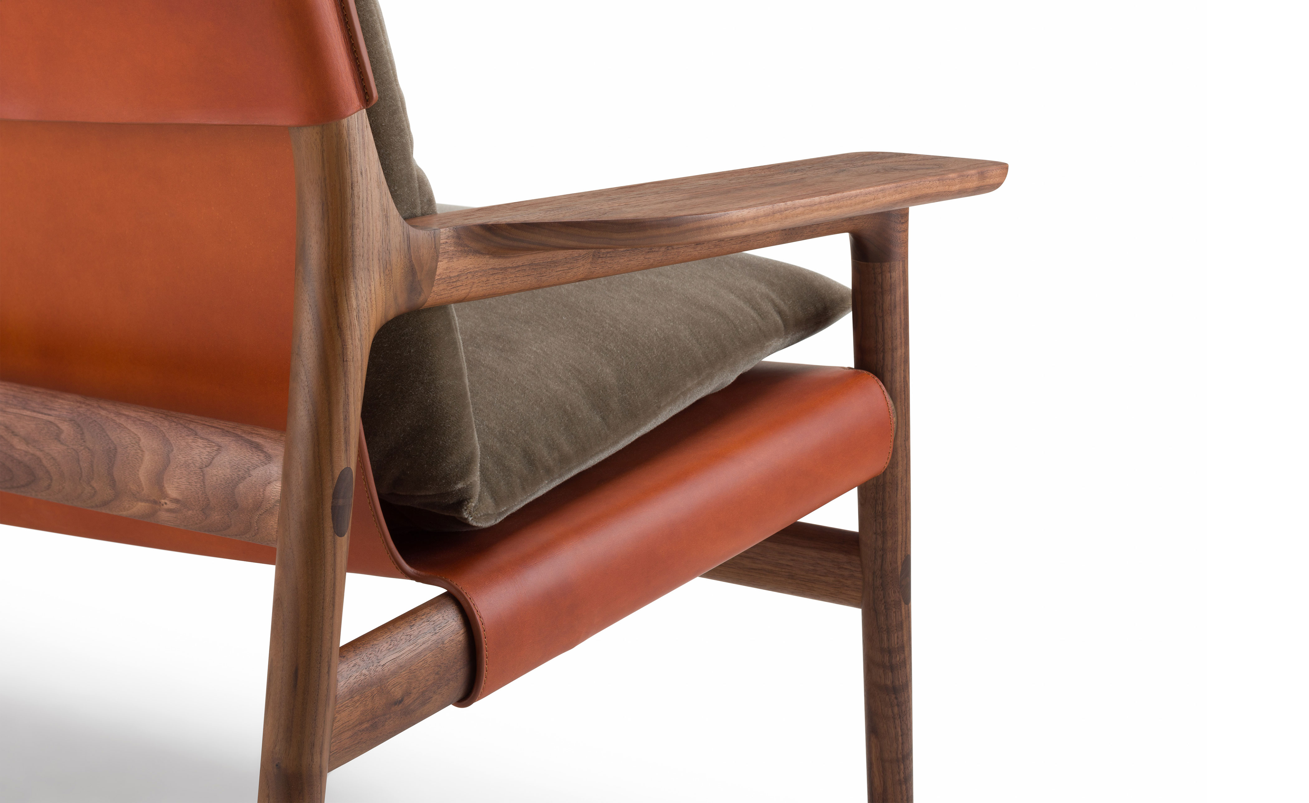 Available in black walnut, white oak, or ash in a range of finishes, and a range of fabric and leather options, and saddle leather in a choice of colors. Crafted at the solar-powered De La Espada factory in Portugal. Designed by a creative partner and rigorously engineered with the support of De La Espada's in-house product development team and expert craftspeople. Durability, comfort and aesthetics combine for a product that lasts a lifetime.