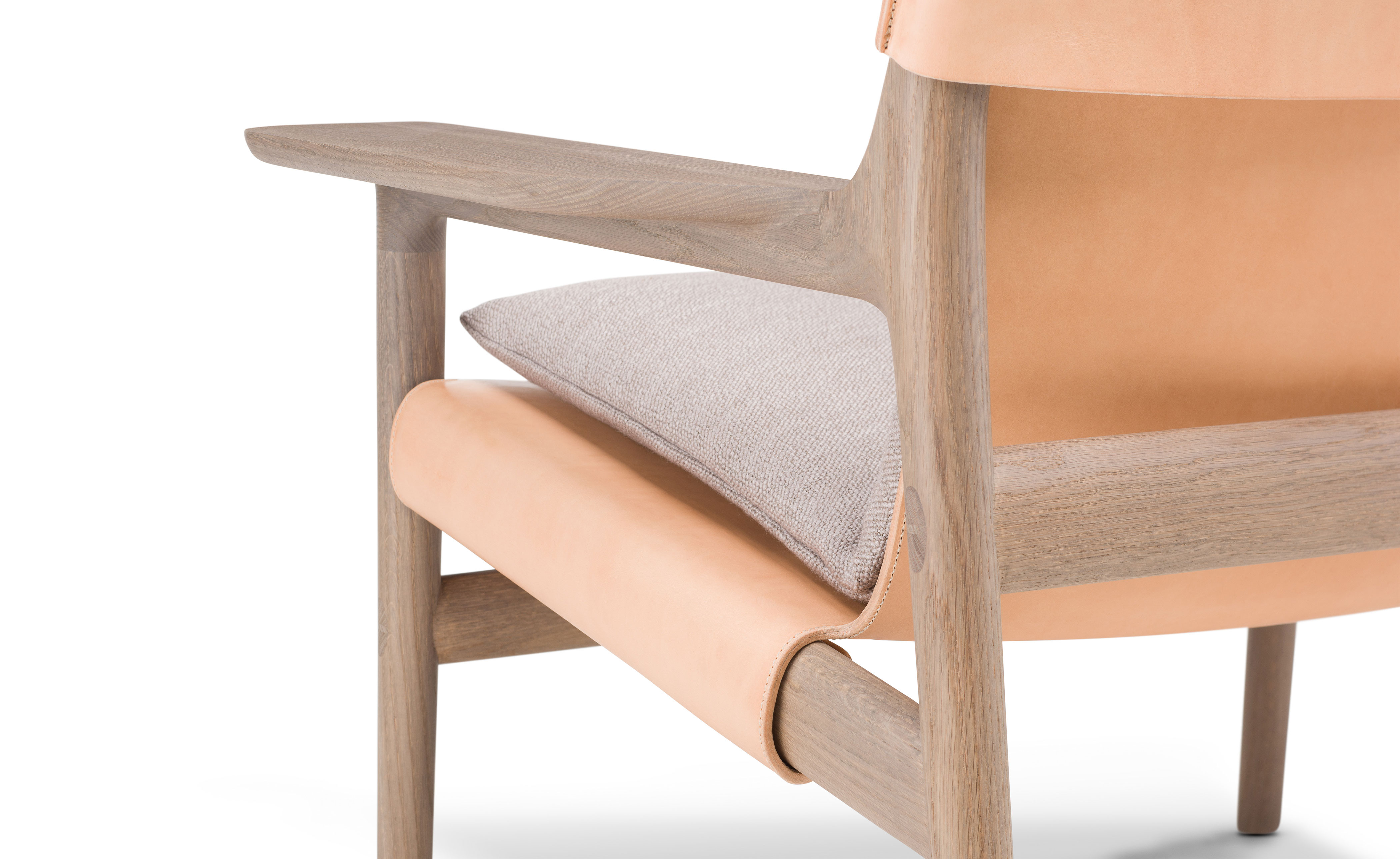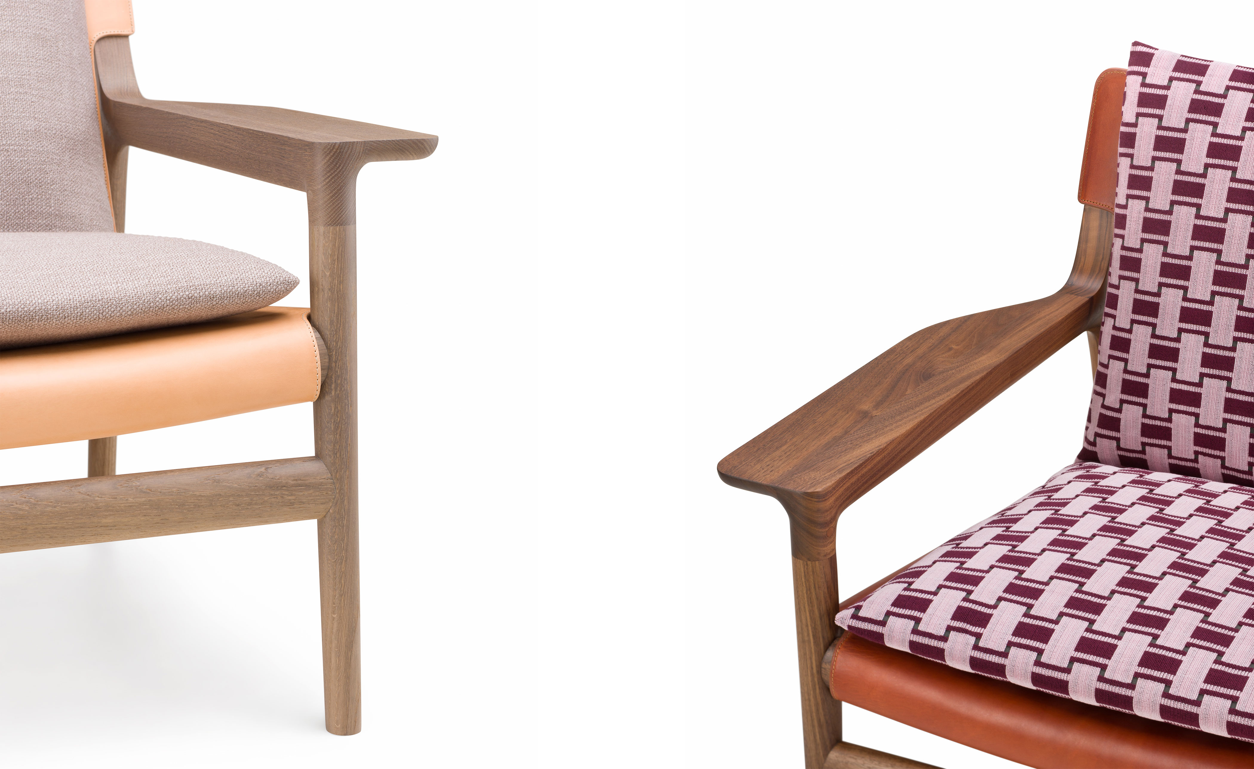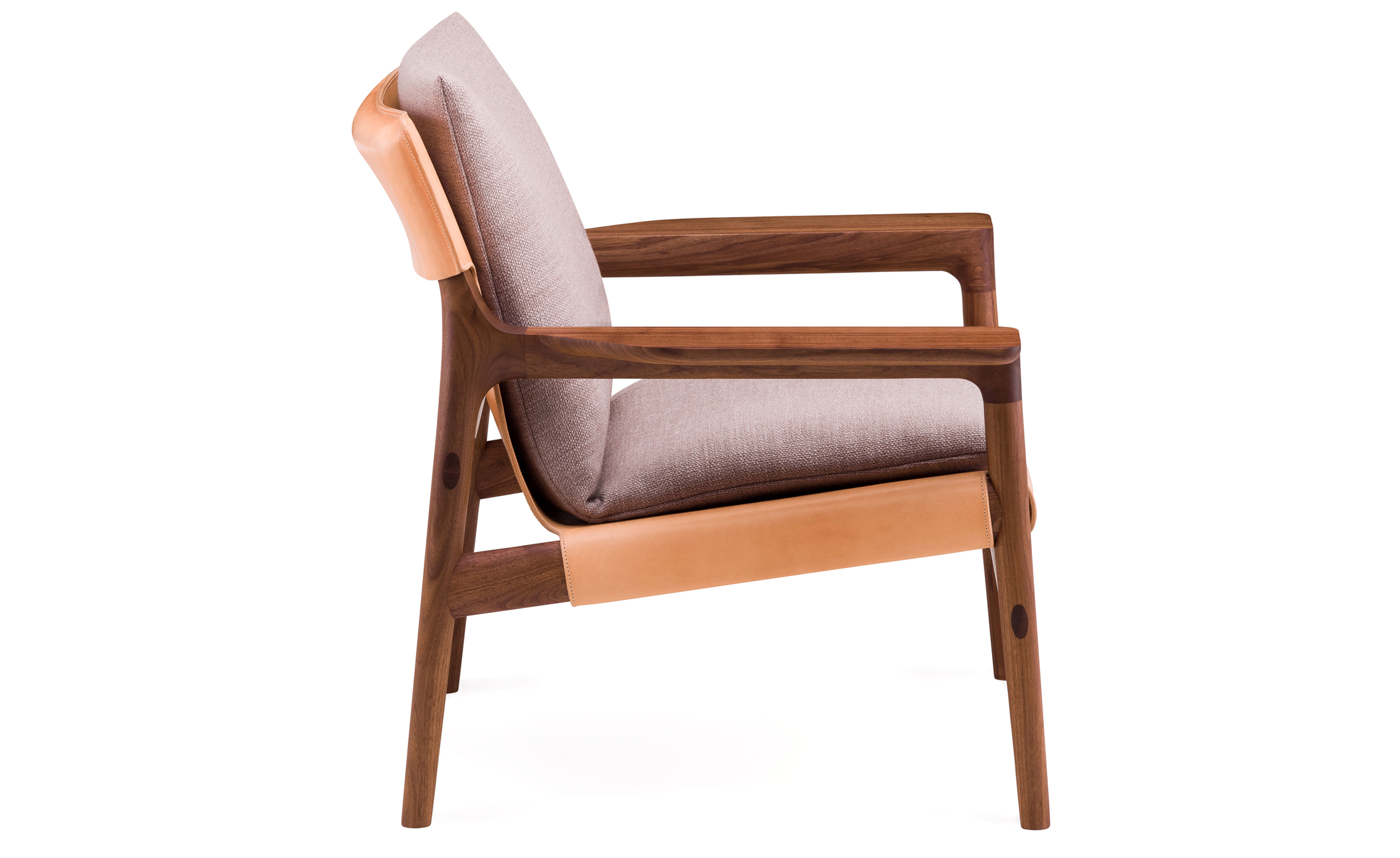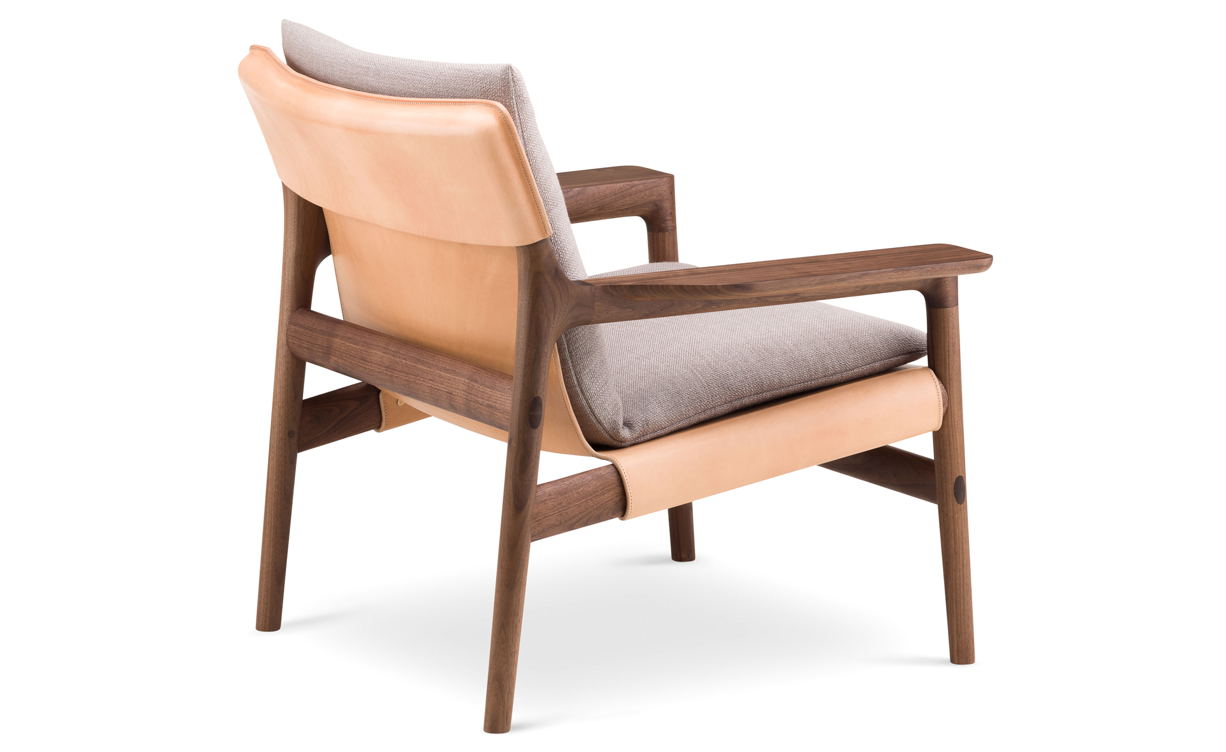 Sela lounge chair, designed by Luca Nichetto, reflects a passion for woodworking, with a tactile timber form with beautiful joinery. An exquisite leather seat, custom made by a Portuguese saddler, is suspended from the chair frame, then softened with upholstered cushions. Sela boasts an ageless appearance with a contemporary edge; the perfect blend of natural elements, craftsmanship, and timeless appeal.
