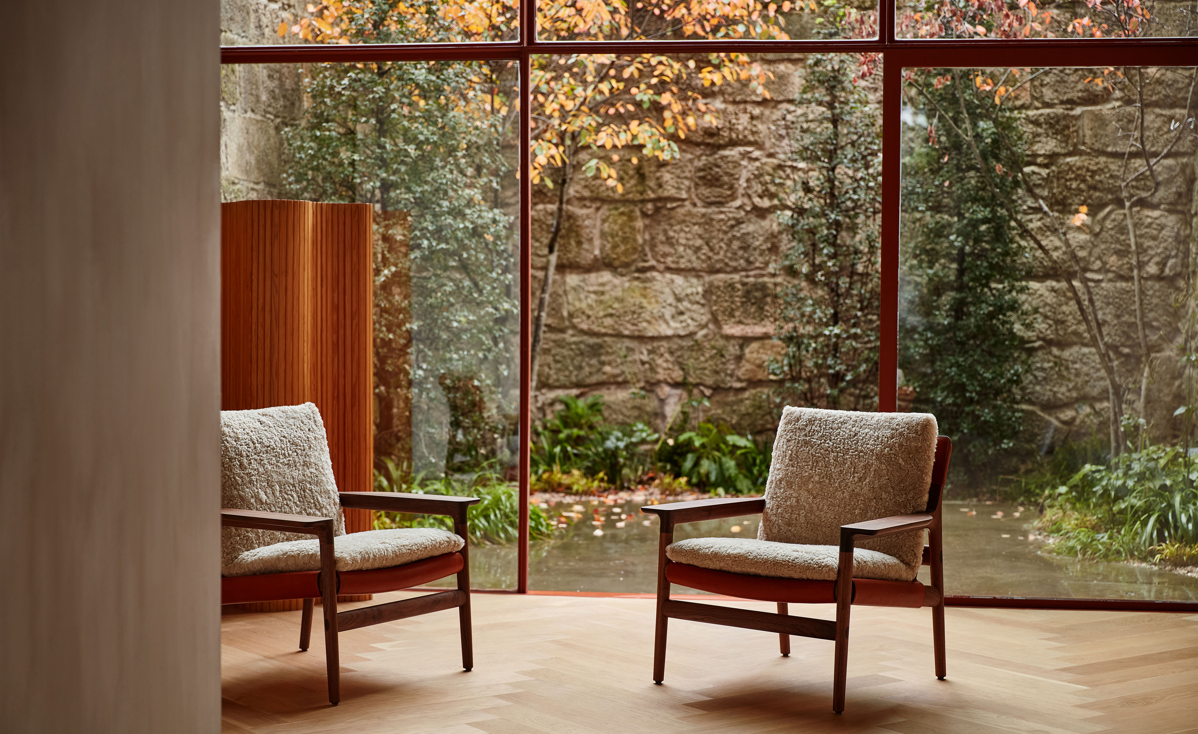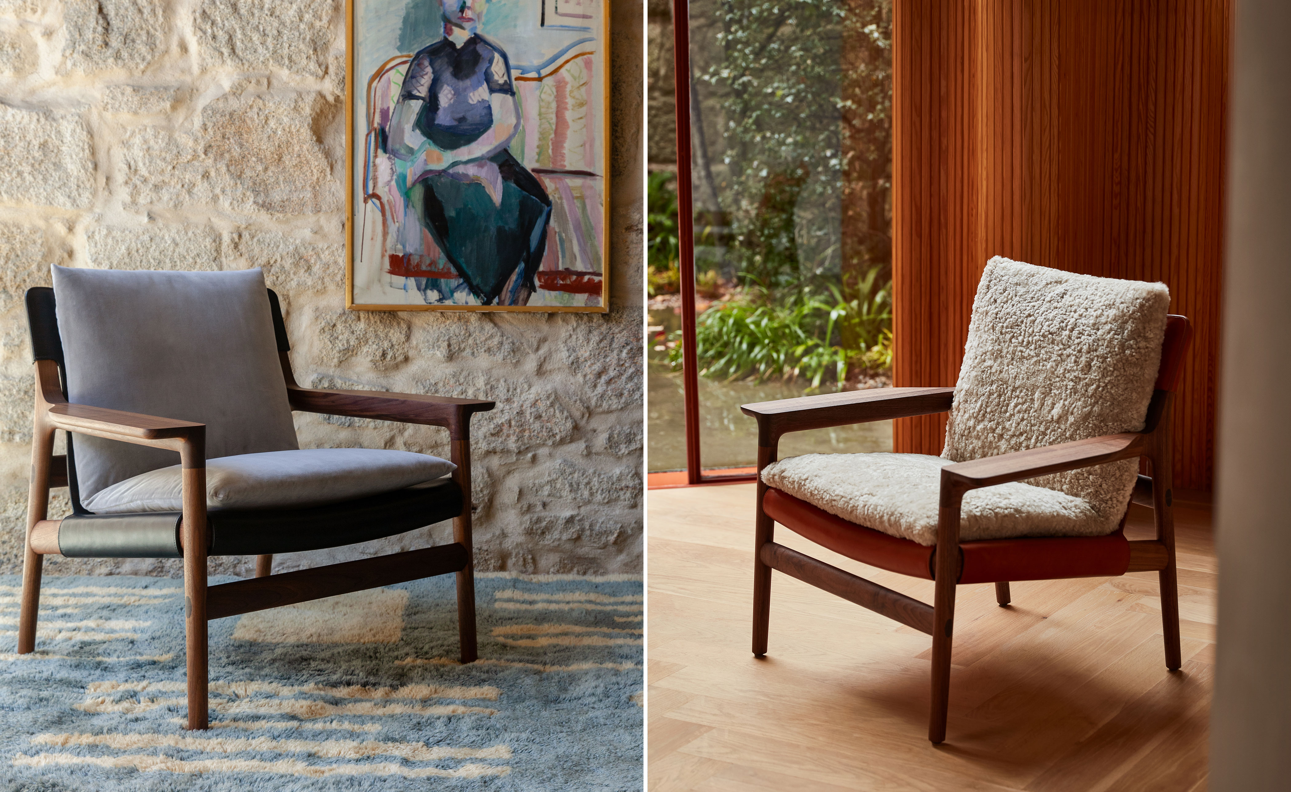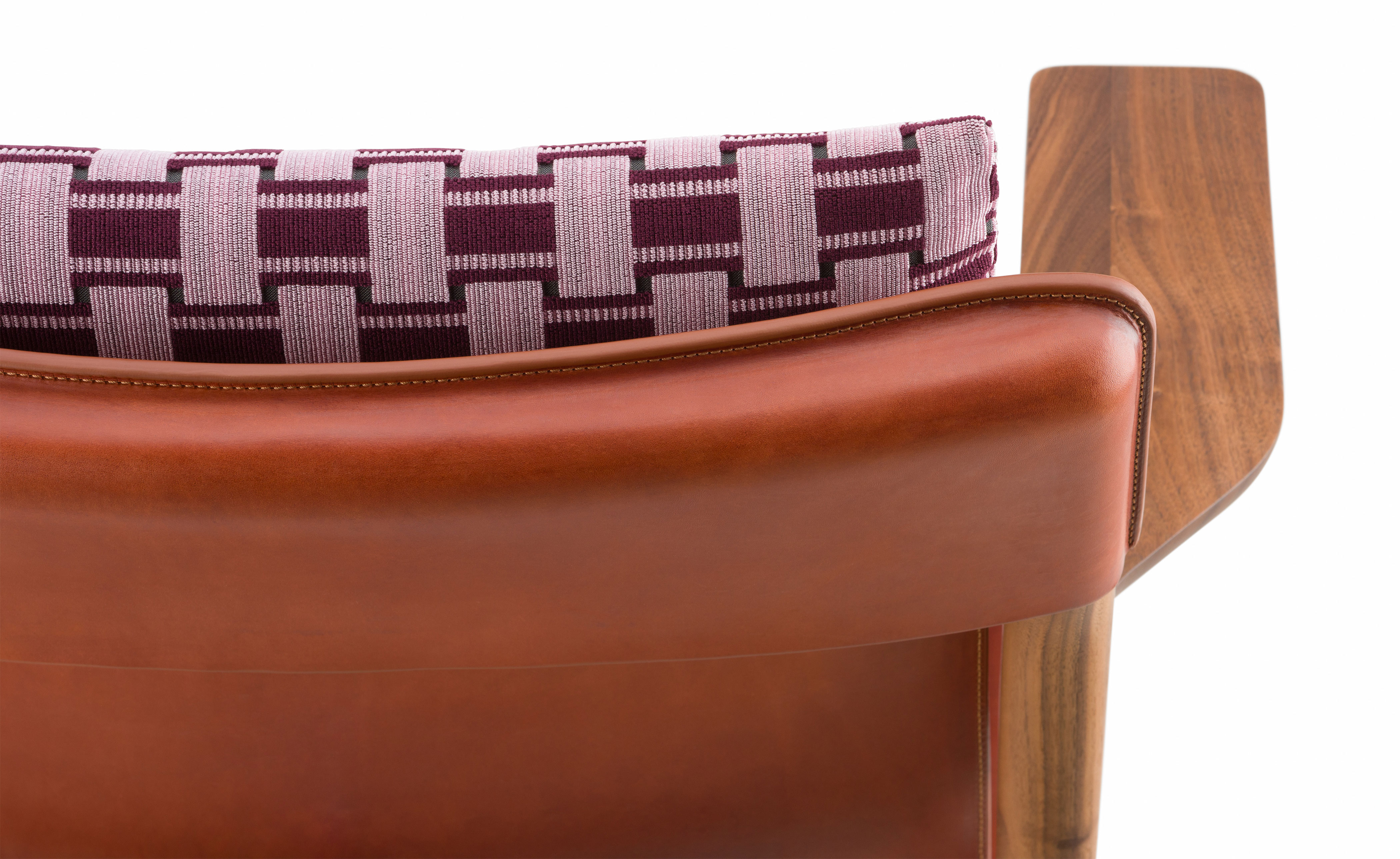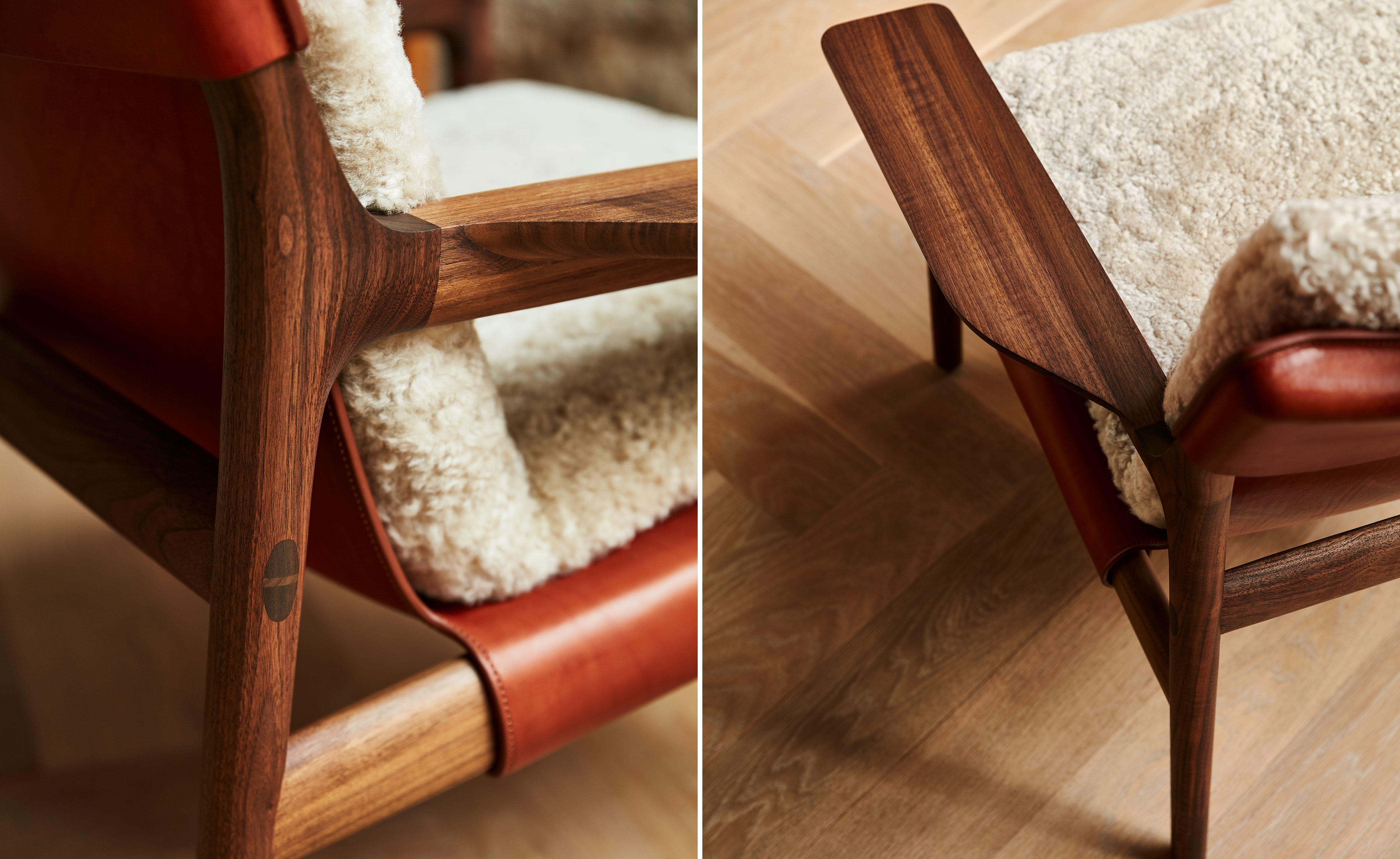 Sela lounge chair, designed by Luca Nichetto, reflects a passion for woodworking, with a tactile timber form with beautiful joinery. An exquisite leather seat, custom made by a Portuguese saddler, is suspended from the chair frame, then softened with upholstered cushions. Sela boasts an ageless appearance with a contemporary edge; the perfect blend of natural elements, craftsmanship, and timeless appeal.