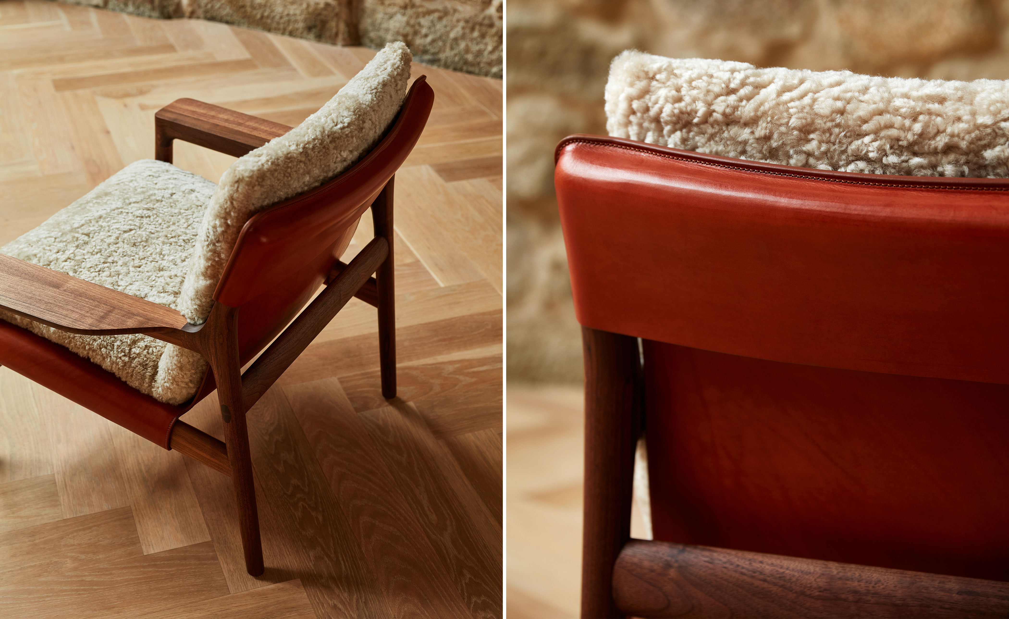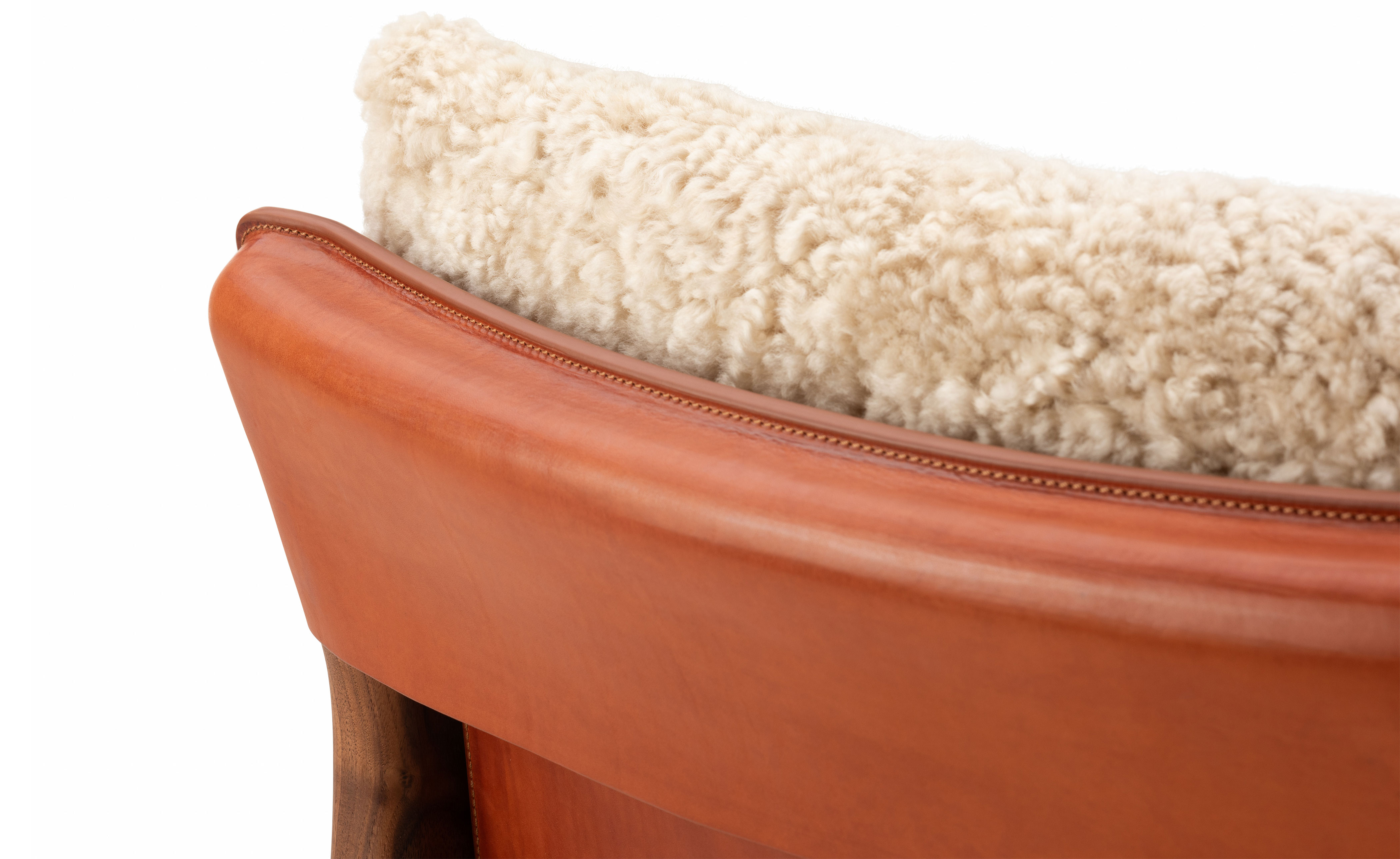 Textiles supplied by a renowned Danish partner with fabric mills in Norway, Italy and the UK. Upholstery leather sourced from tanneries in Sweden and Italy using only hides from European cattle. Saddle leather seat crafted by a renowned saddler in Leiria, Portugal.