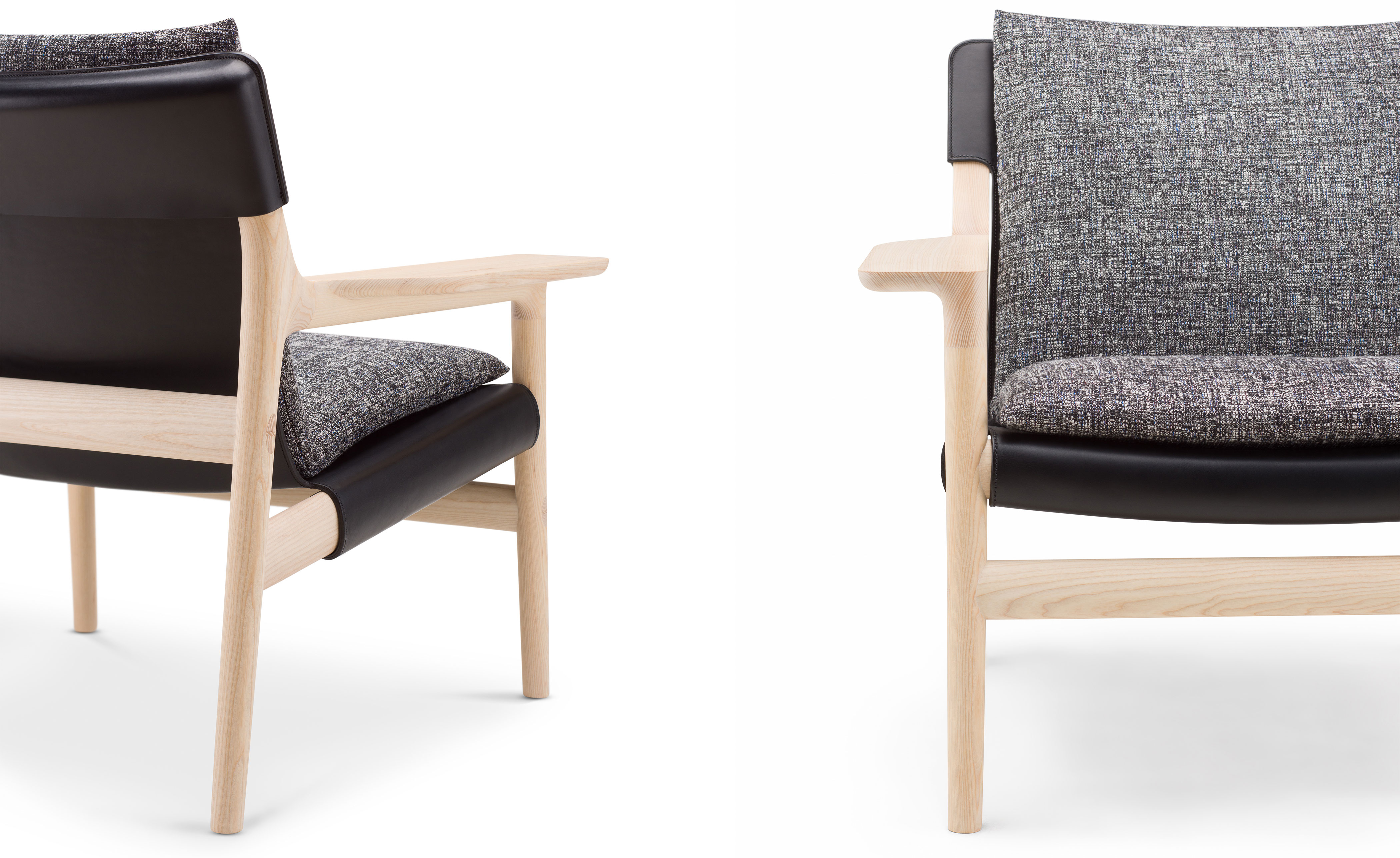 Sela Lounge is available with a choice of wide arms or narrow arms. Part of a family of seating including benches, dining chairs, lounge chairs and sofas.