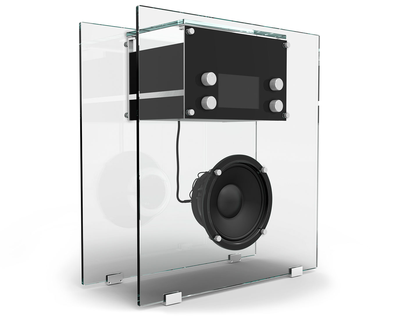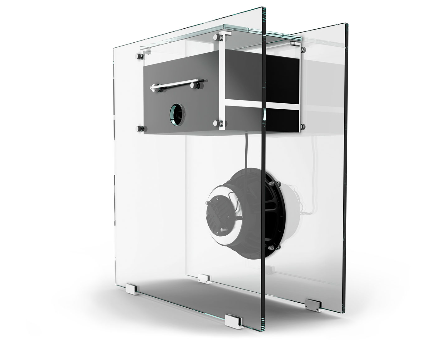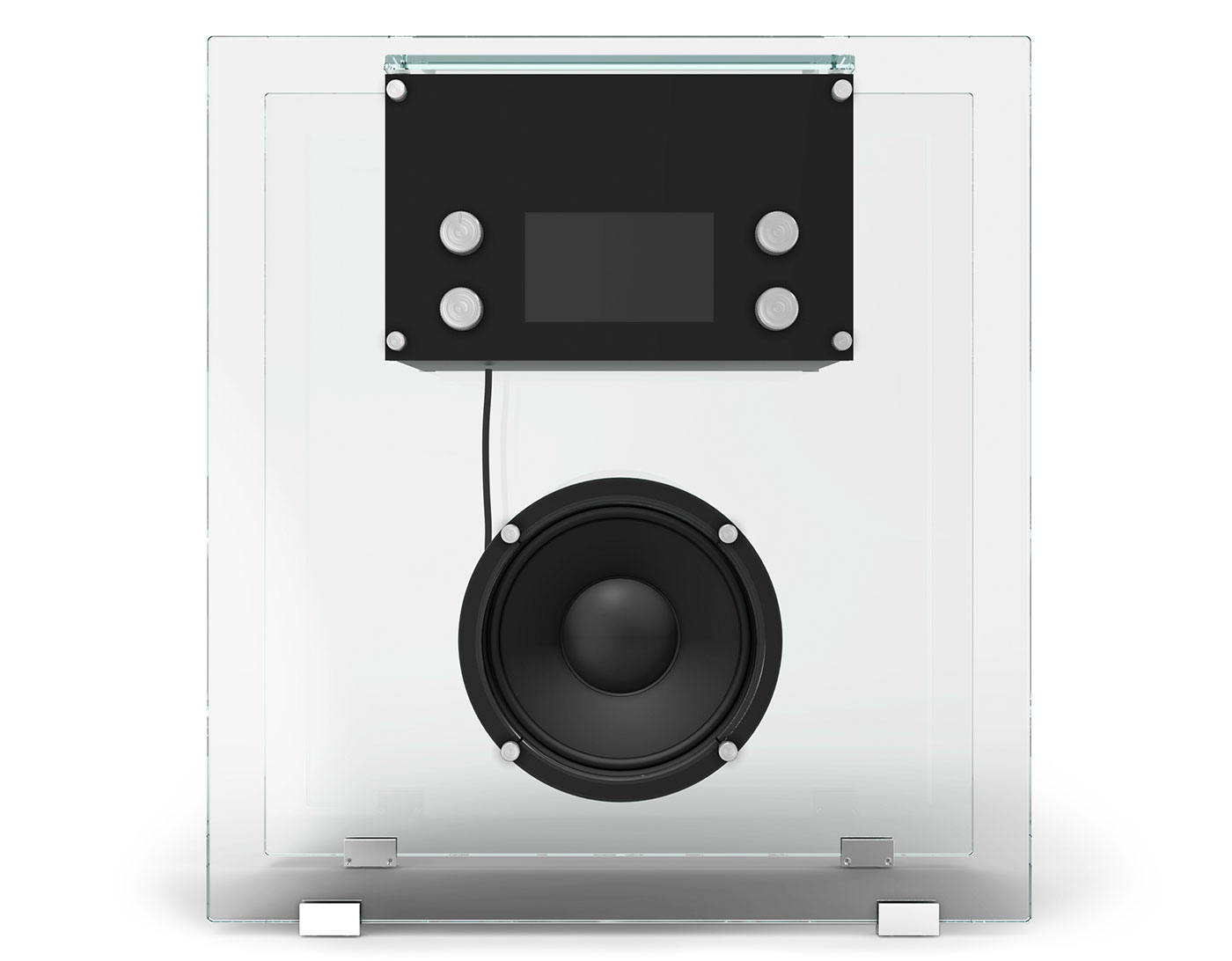 Lacquered wood, extra-clear glass, stainless steel