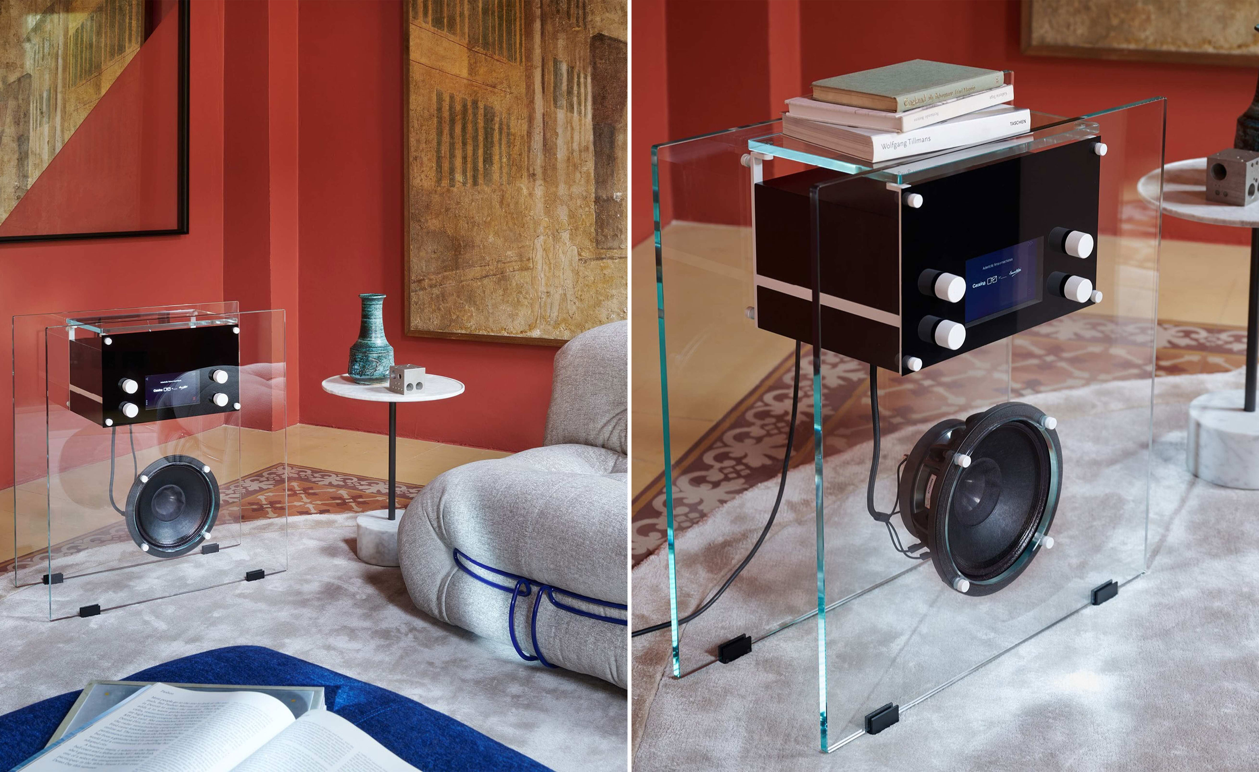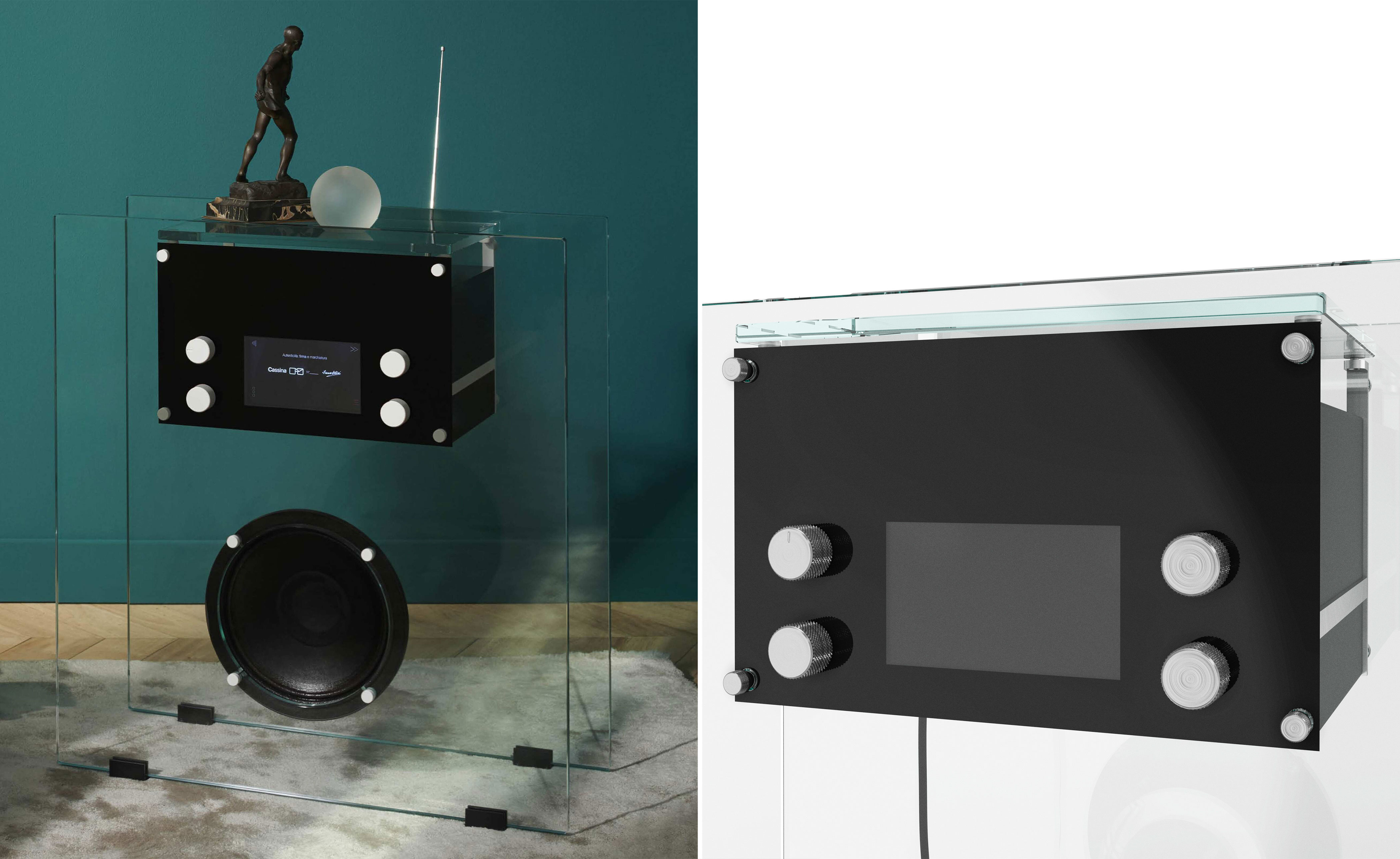 In concert with Fondazione Franco Albini, Cassina has optimized the design the architect entered into a competition by the Swiss company Wohnbedarf in 1940, keeping the same size while adding new Bluetooth technology and an optional subwoofer that, connected to Wi-Fi, creates a more enveloping atmosphere.