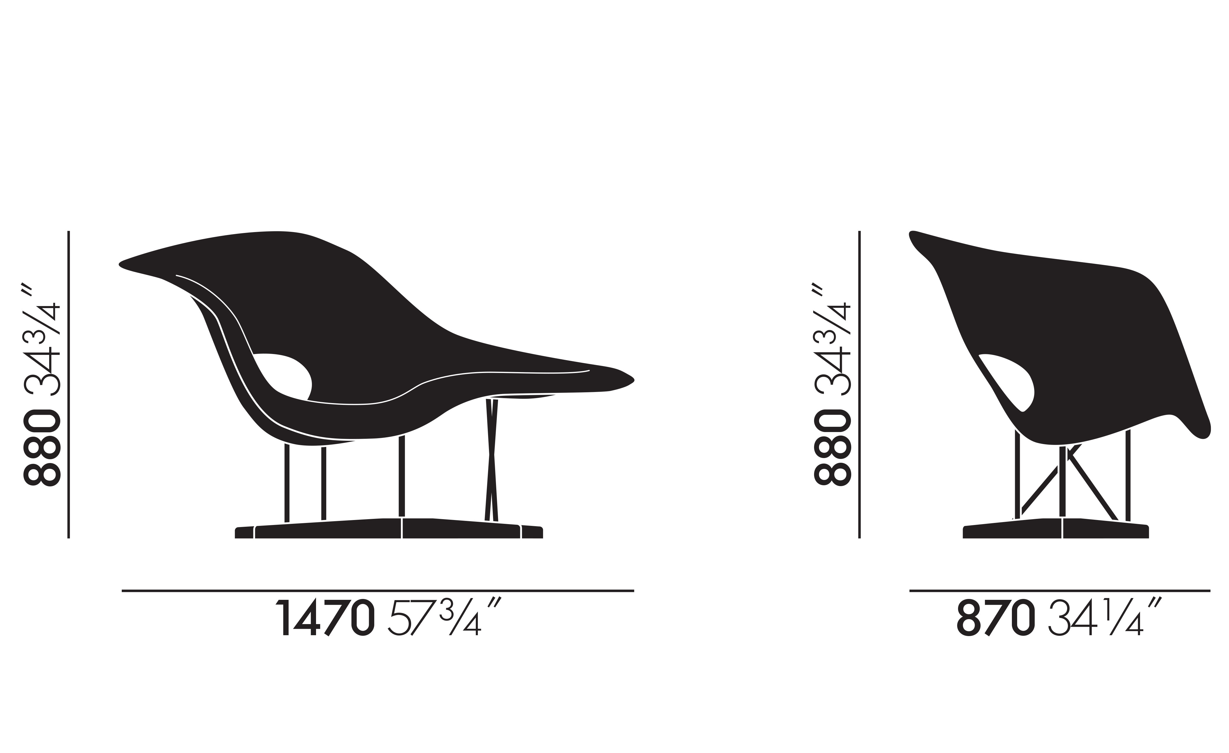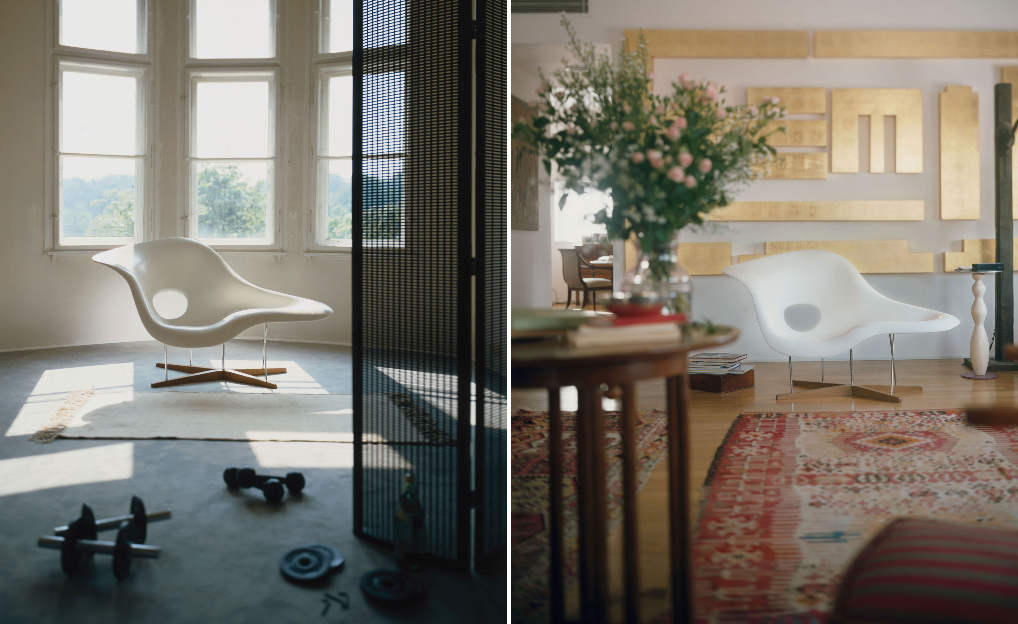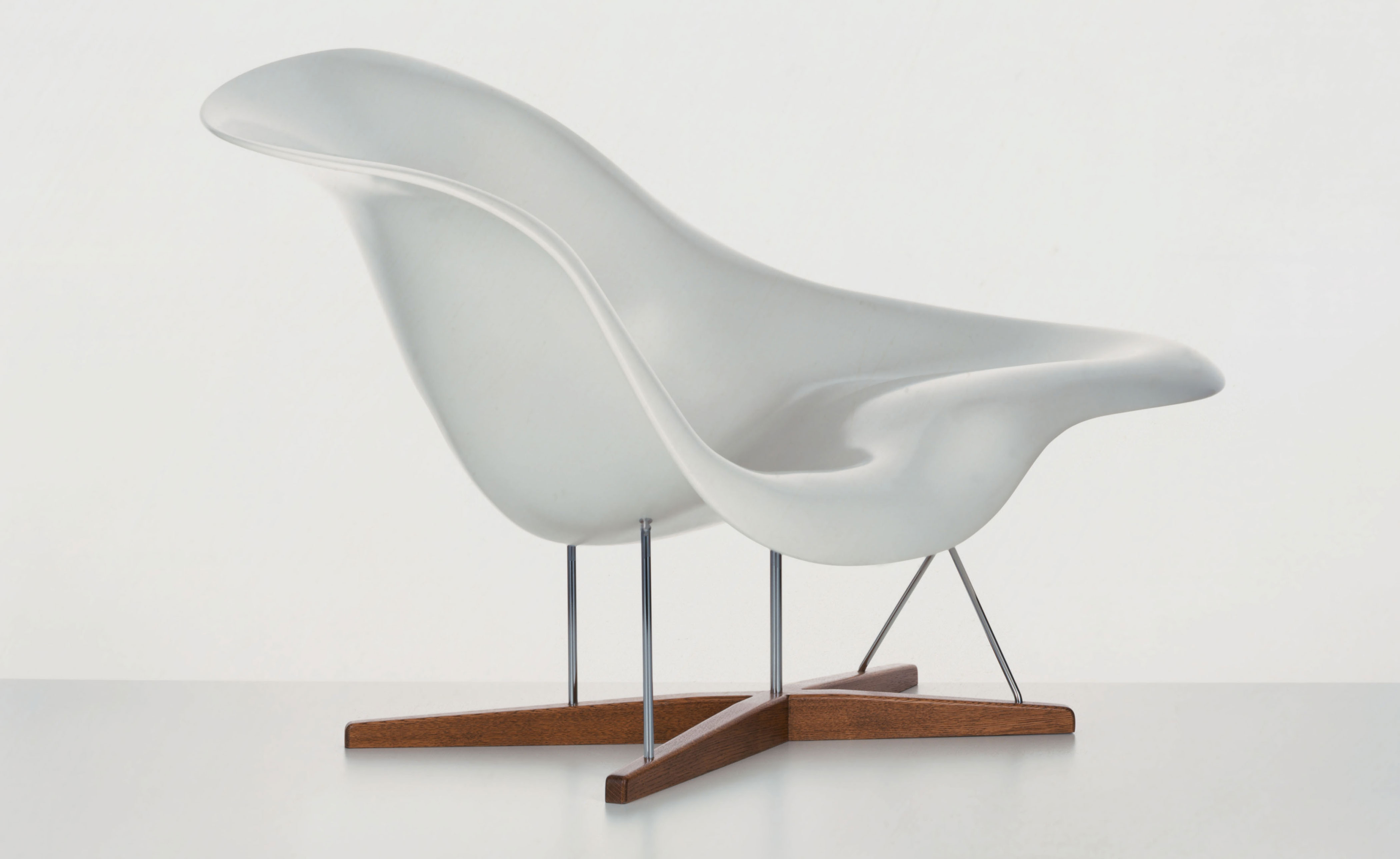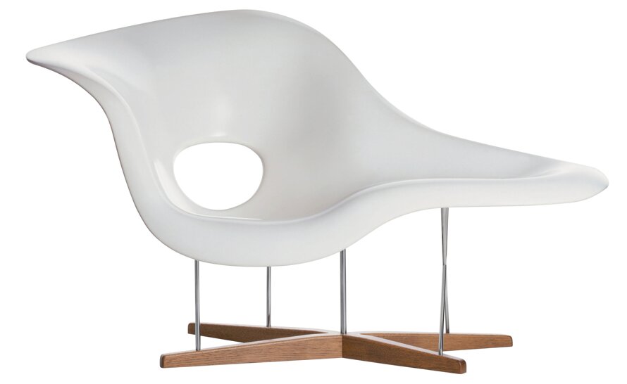 Charles and Ray Eames designed La Chaise in 1948 for a Museum of Modern Art competition. But it is only since 1991 that Vitra has been manufacturing small quantities of the design in serial production. La Chaise is suitable for both sitting and lying on. Its organic shape was inspired by "Floating Figure", a sculpture by Gaston Lachaise.