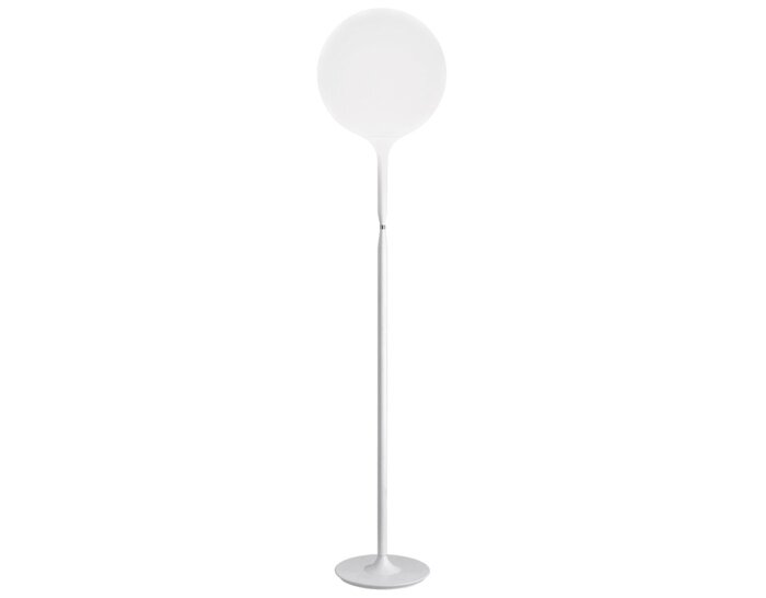 Castore is a series of table, floor or pendant lights which offer diffused incandescent or halogen lighting. The spherical diffuser design is enhanced by a removable-fitting and tapering luminous stem, making a gentle transition from the strong diffuser light to the blind lamp structure area. Castore terra 35 and 42 have a touch band on the stem for the storage of the latest light intensity set-up The spherical diffuser features white hand-blown glass, with external etched finish, the stem in steel tubing, covered by a tapered sleeve in white translucent molded polycarbonate, allowing for partial soft diffusion of light from the diffuser. The base is in die-cast metal alloy with white powder coated finish. Available in two sizes.