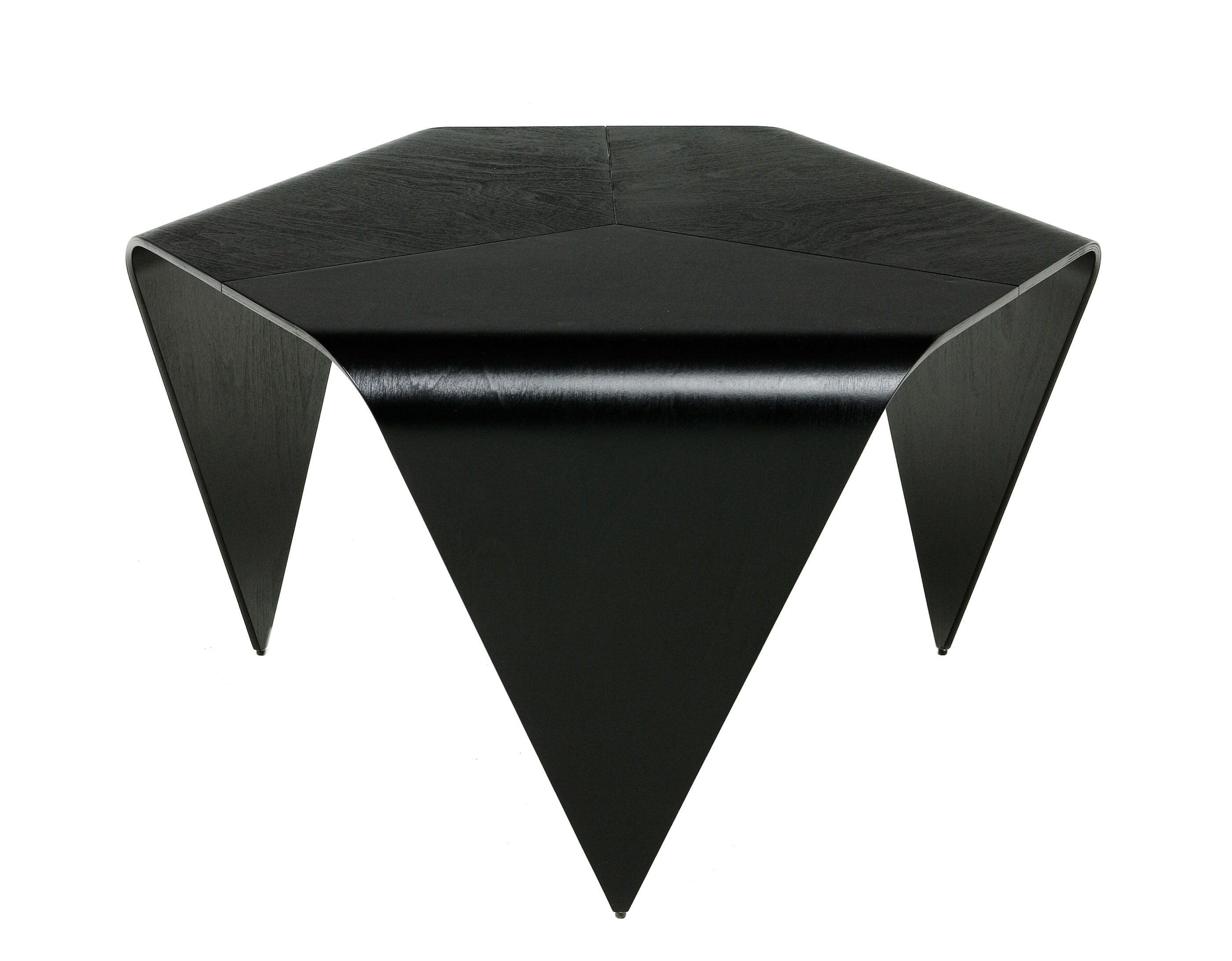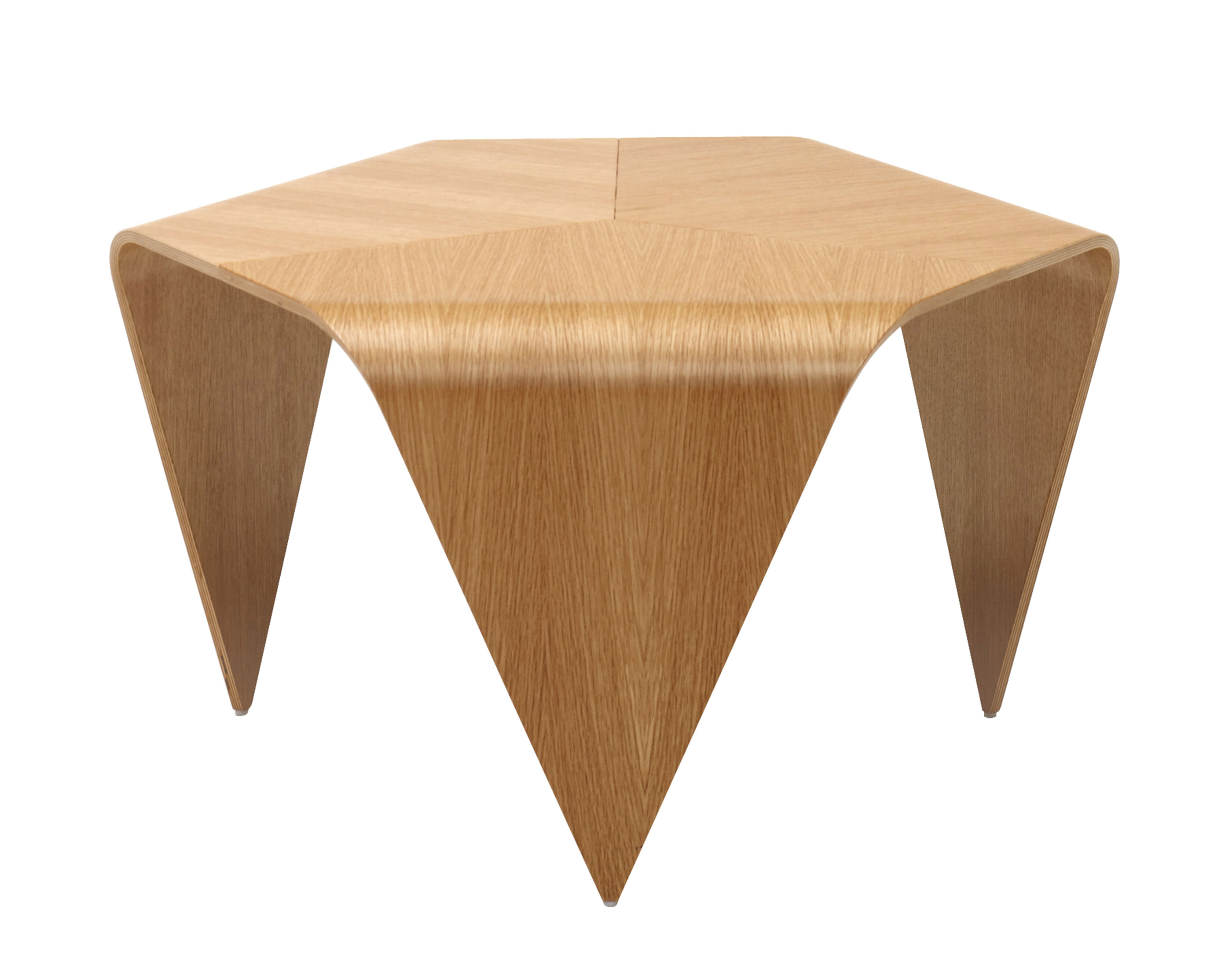 Trienna is a sculptural and lightweight coffee table produced using form-pressed birch plywood finished in lacquered or stained oak veneer. In 1954, only a few examples of Trienna were produced while serial production started only in 2007.