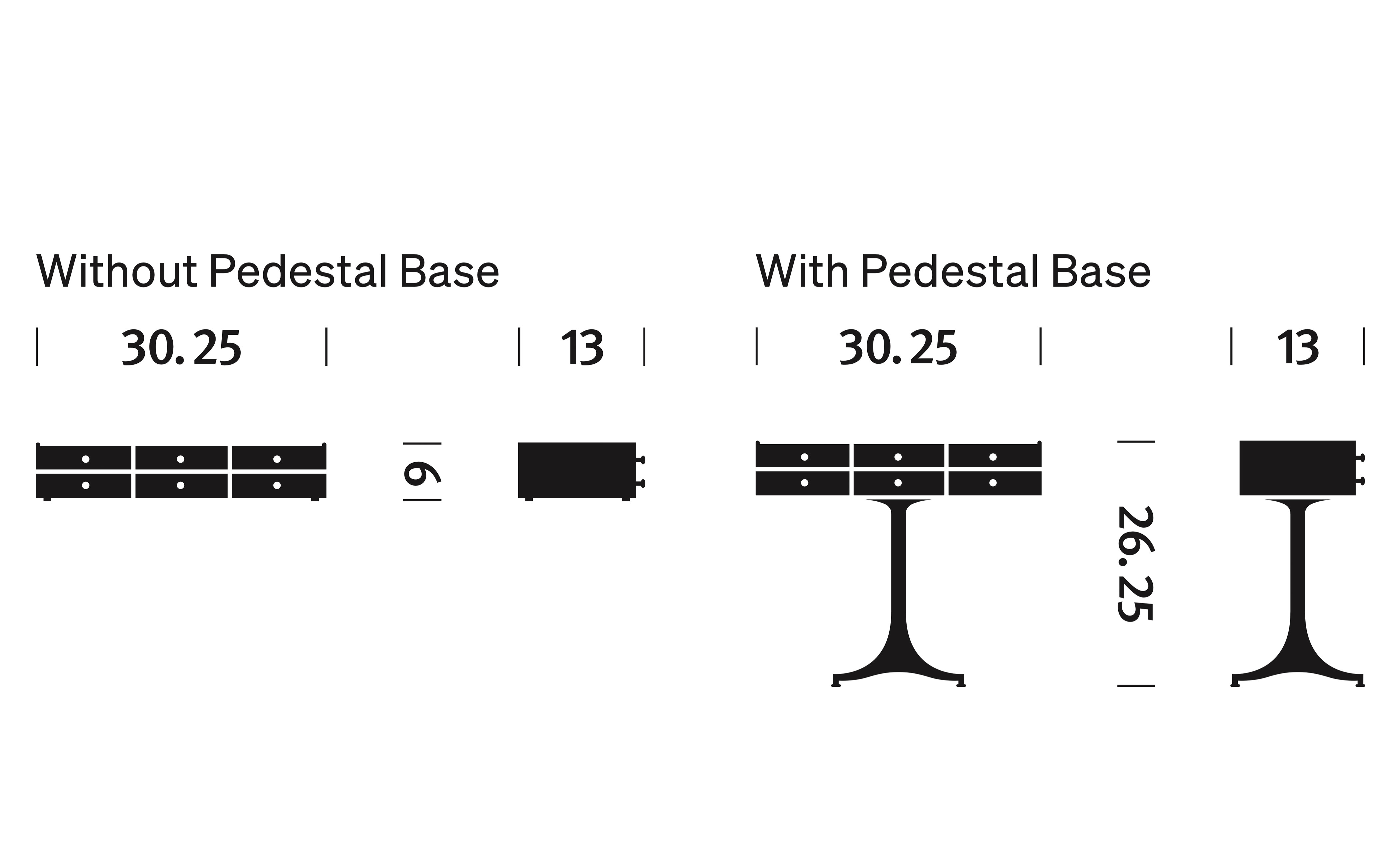 six-drawer chest without pedestal base: 30.25" w | 13" d | 6" h