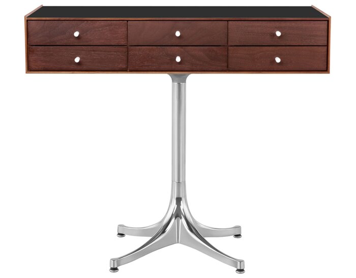 Japan had a profound effect on George Nelson. During his first trip to Tokyo in 1951 and several more that decade, Nelson became fascinated with all things Japanese. That influence is evident in the 1952 design of his miniature chests. Reminiscent of tansu, cabinets with many small drawers used for storing a variety of items, the Nelson miniature chests provide wonderful little places to keep things. An interesting addition to nearly any room-whether at home or the office-these chests embody what Nelson appreciated most in Japanese design: "a sense of fitness in the relationship between hand, material, use, and shape." -George Nelson