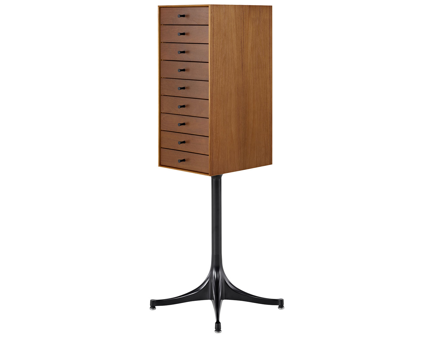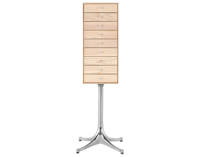 Japan had a profound effect on George Nelson. During his first trip to Tokyo in 1951 and several more that decade, Nelson became fascinated with all things Japanese. That influence is evident in the 1952 design of his miniature chests. Reminiscent of tansu, cabinets with many small drawers used for storing a variety of items, the Nelson miniature chests provide wonderful little places to keep things. An interesting addition to nearly any room-whether at home or the office-these chests embody what Nelson appreciated most in Japanese design: "a sense of fitness in the relationship between hand, material, use, and shape." -George Nelson