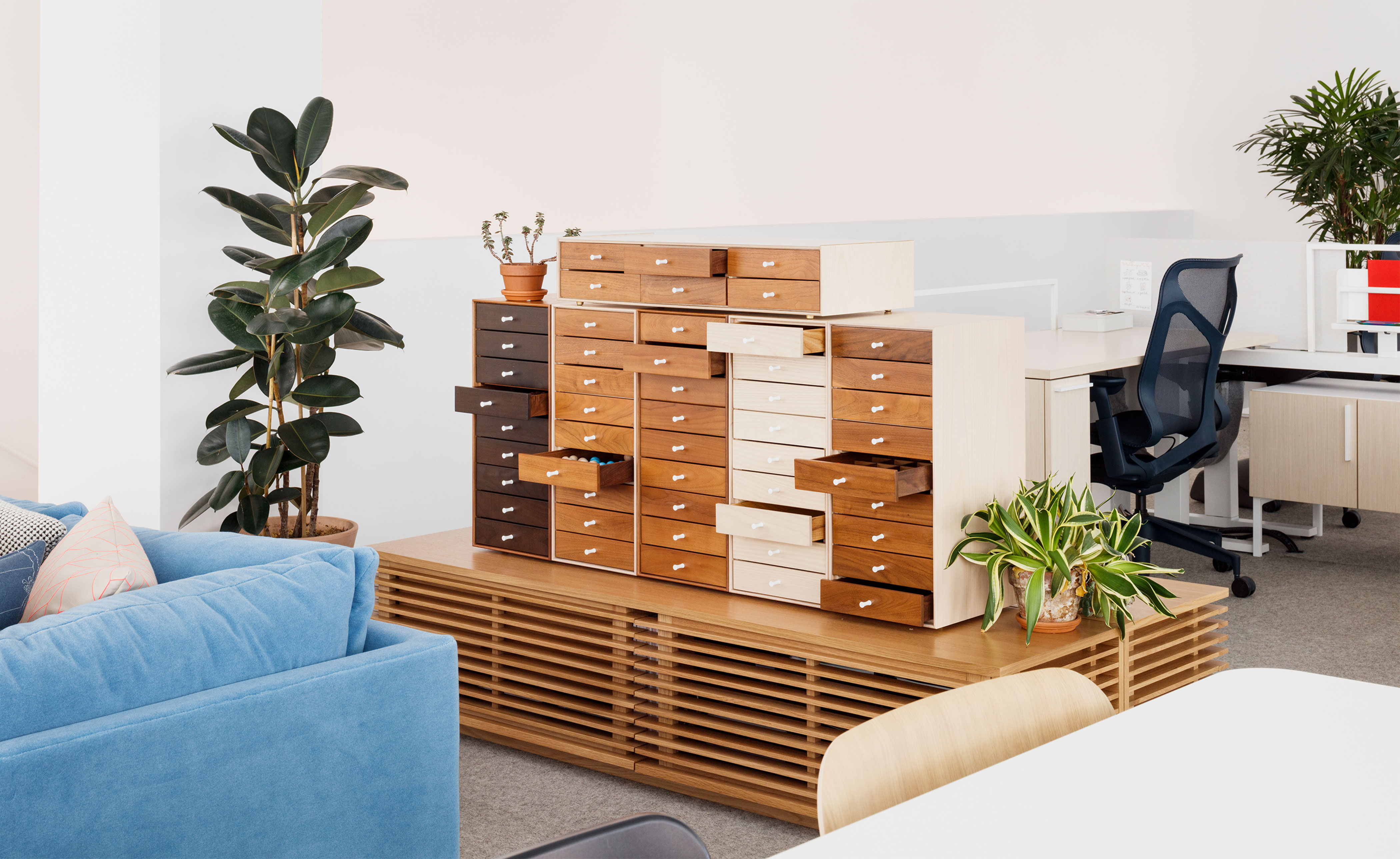 Herman Miller is synonymous with modern designer furniture. Creative director George Nelson recruited contemporaries Charles & Ray Eames, Alexander Girard and Noguchi to create a legendary furniture collection.