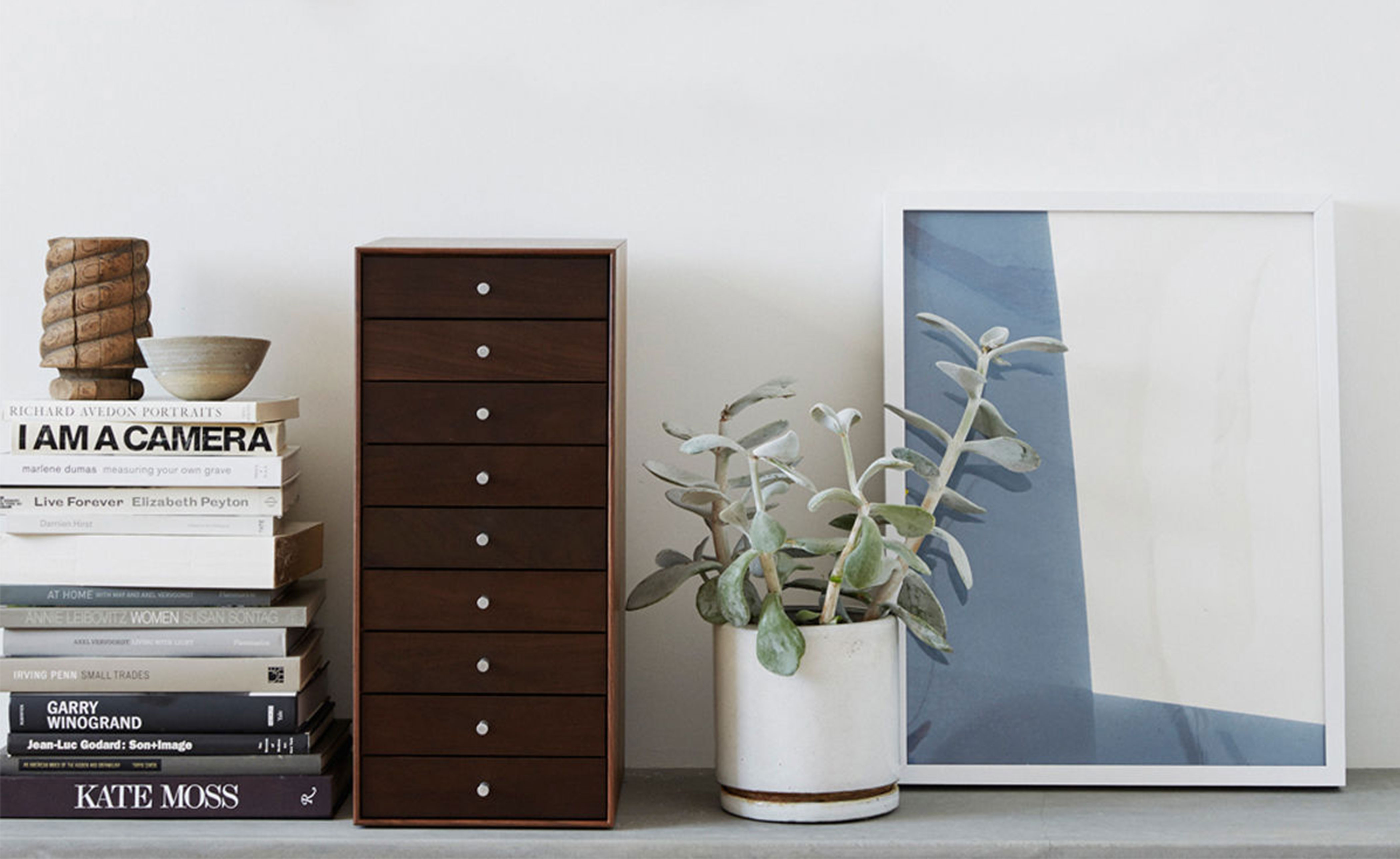 nine-drawer chest without pedestal base: 10.5" w | 13" d | 23.5" h