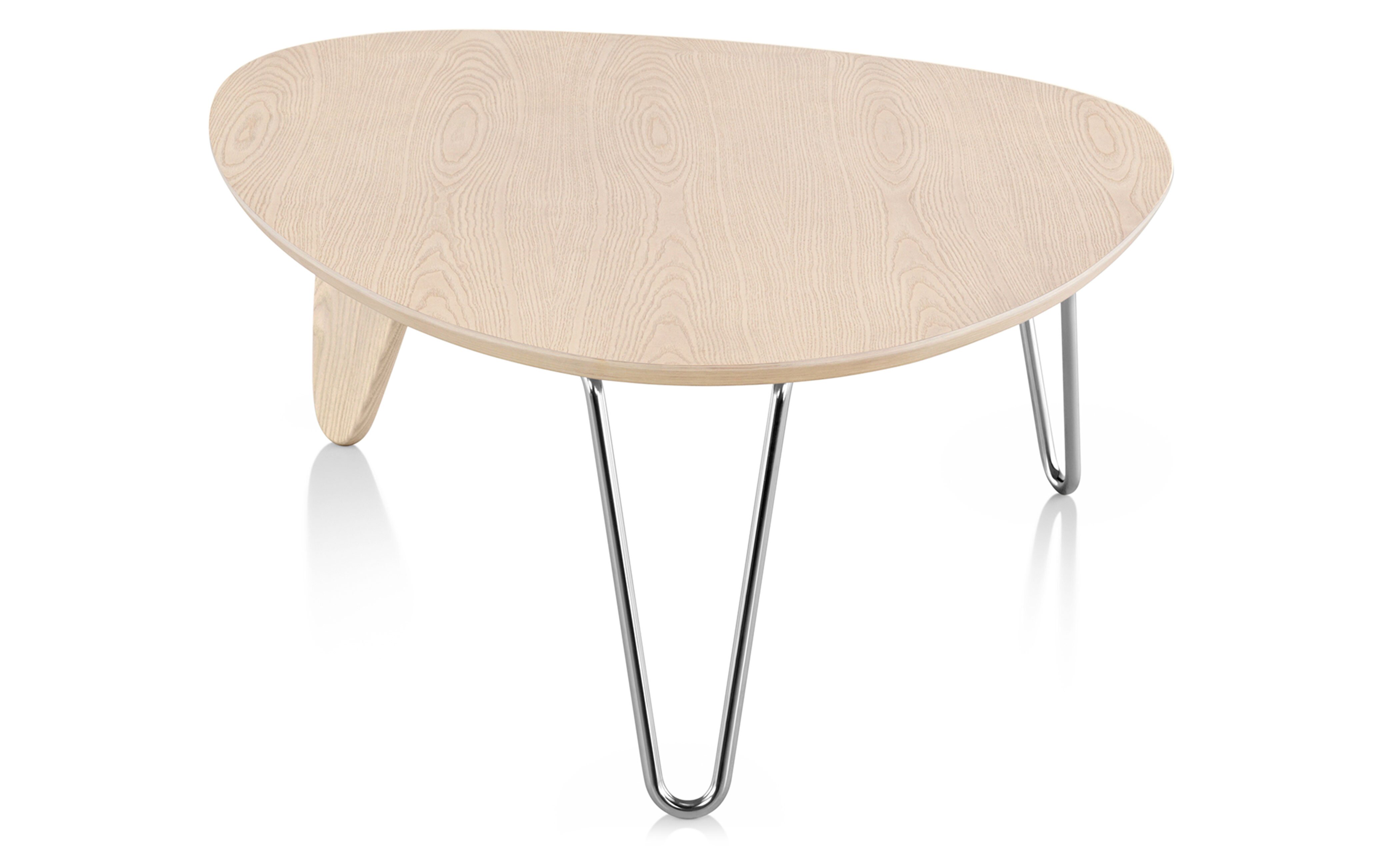 The Herman Miller Collection has proudly reintroduced Isamu Noguchi's 1949 Rudder Table, an outstanding example of the noted artist-designer's skillful use of deceptively simple organic forms to create highly functional and beautiful furniture. The table's name stems from the character of its single wood leg support, which is reminiscent of a ship's rudder. Paired with two metal hairpin legs, the table seems to visually rest on the rudder leg, lending a visual lightness and grace to the whole.