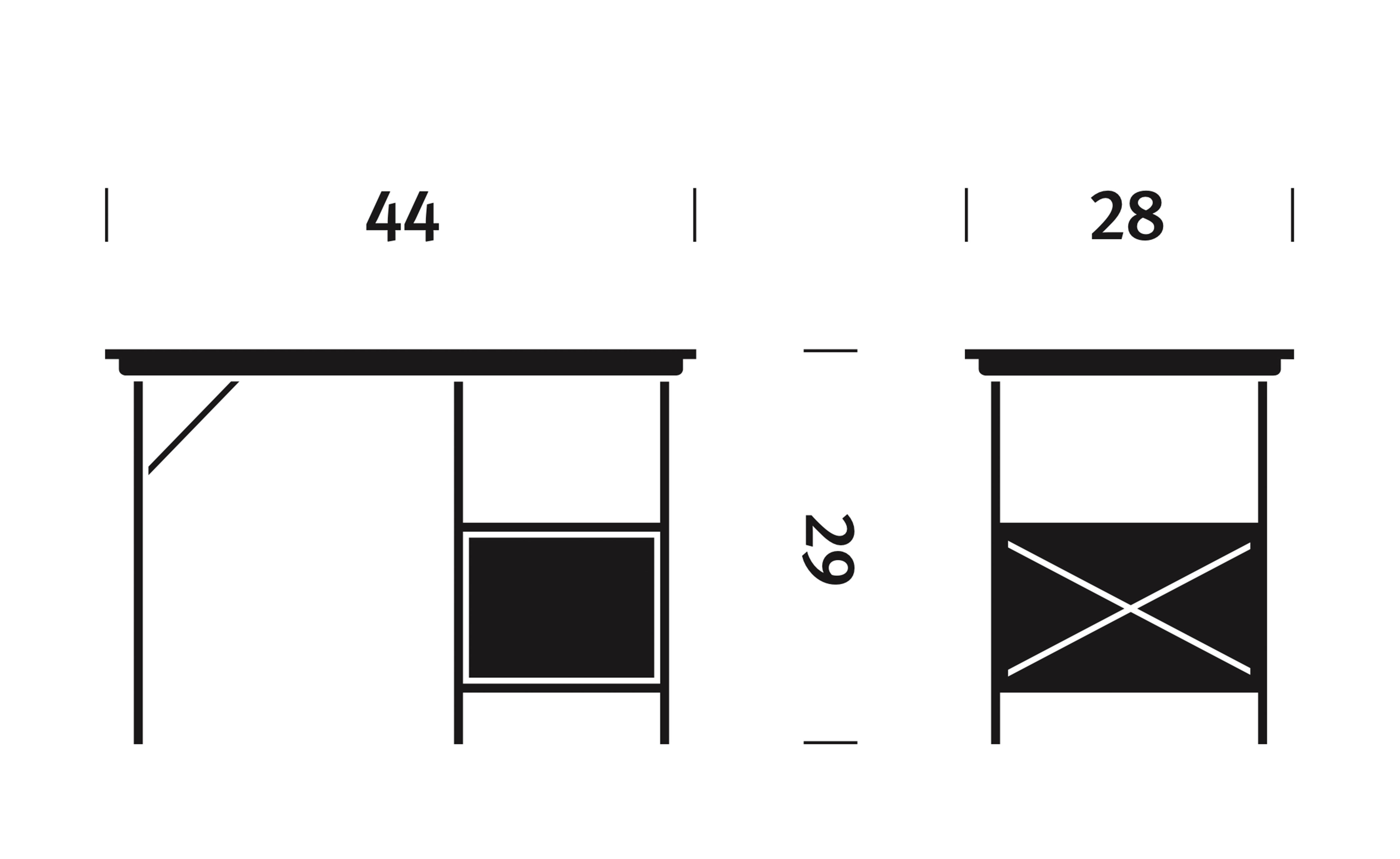 open storage desk: 44" w | 28" d | 29" h