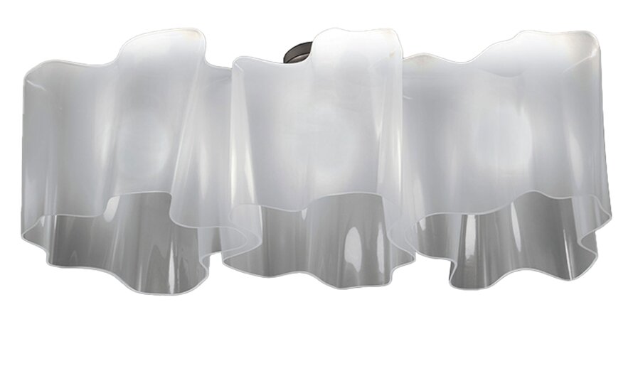 The Logico series originated from the idea of organizing a system of light diffusion: the sophisticated blown glass diffuser is used in different version and its modular shape lends itself to the creation of numerous light compositions. The diffuser is hand blown glass with a unique satin finish. The lower edge of the diffuser is cut with a diamond-edged blade. Diffuser supporting frame and canopy in die-cast aluminum with a pale grey matte lacquered finish.
